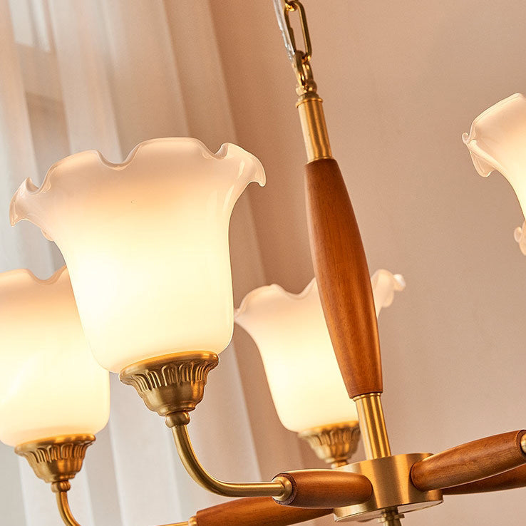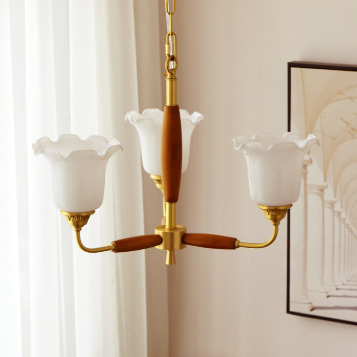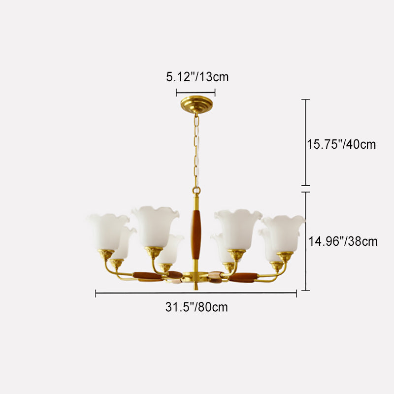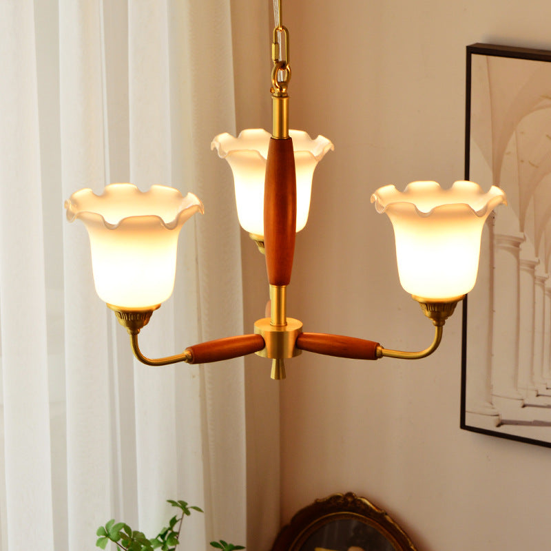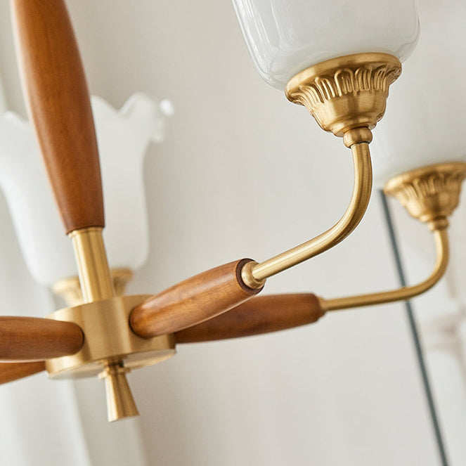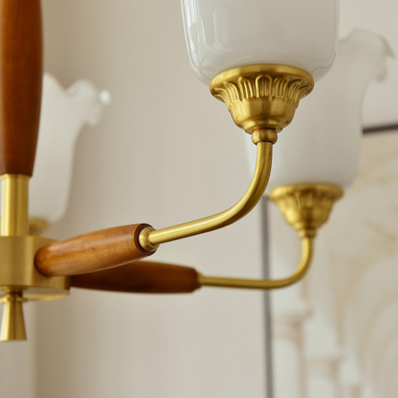 ثريا دائرية من النحاس والخشب والزجاج بتصميم فن الآرت ديكو الحديث، مكونة من 3/5/8 مصابيح لغرفة المعيشة