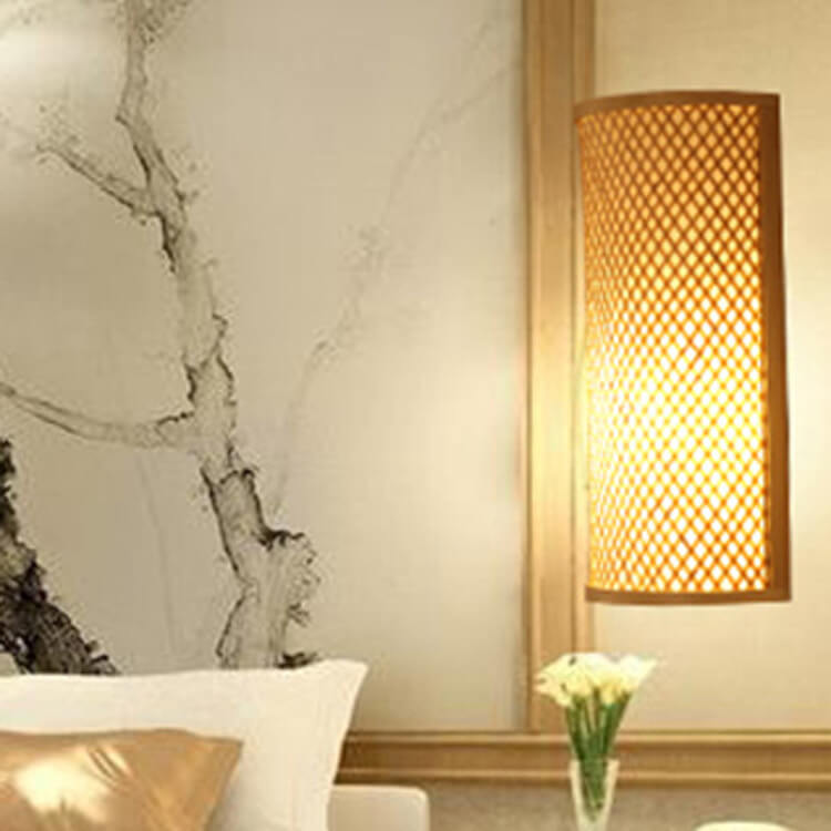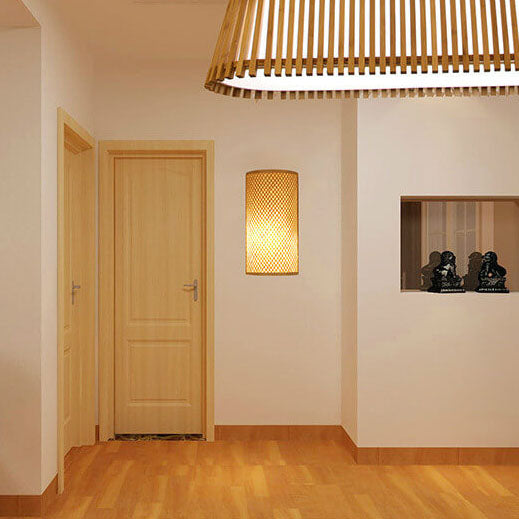 مصباح حائط دائري نصف دائري بإضاءة واحدة، مصنوع من نسج الخيزران الحديث