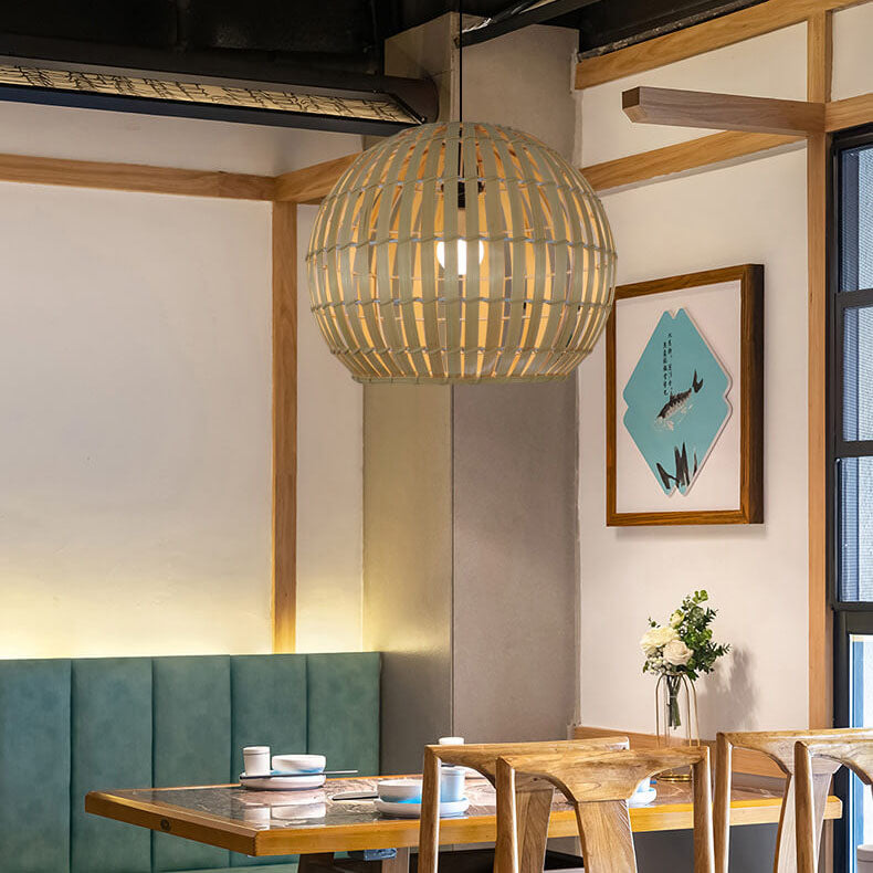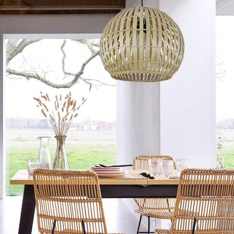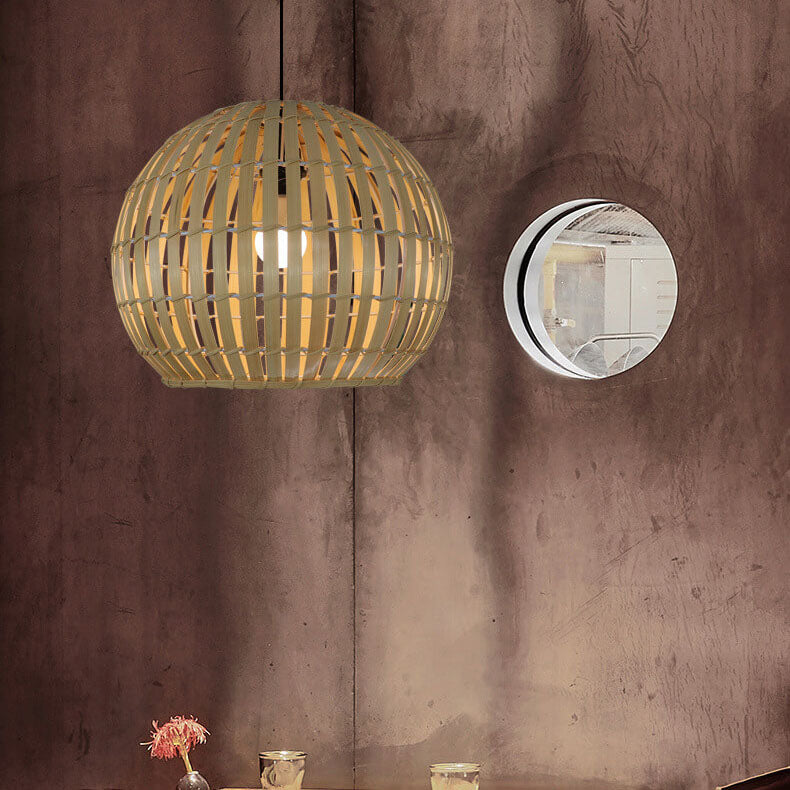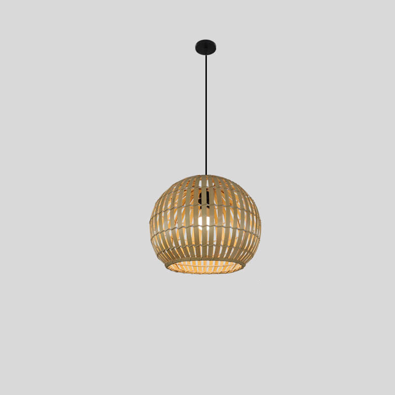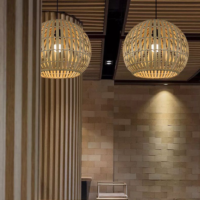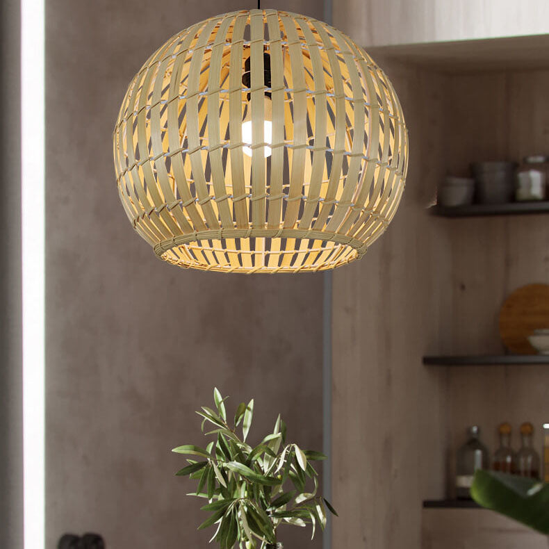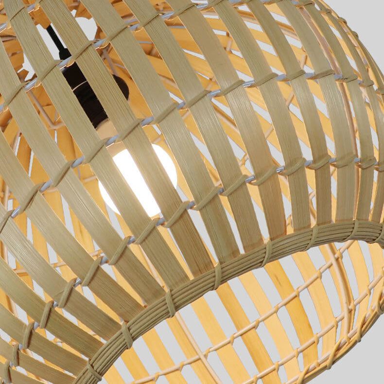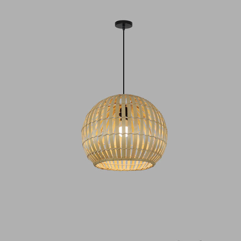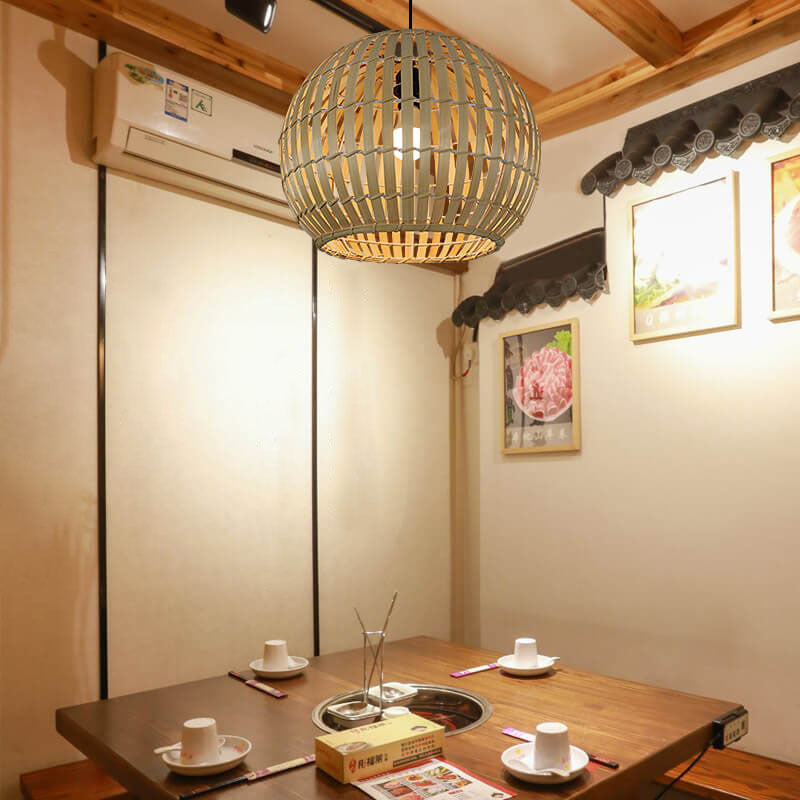 مصباح معلق حديث من الحديد المنسوج من الخيزران مزود بمصباح واحد