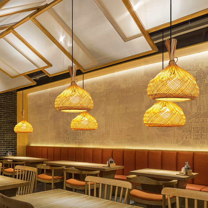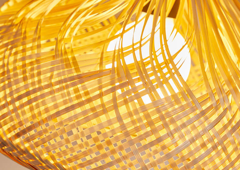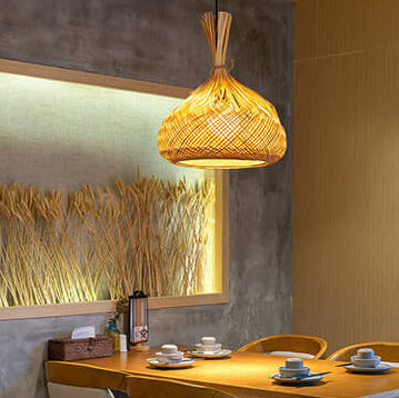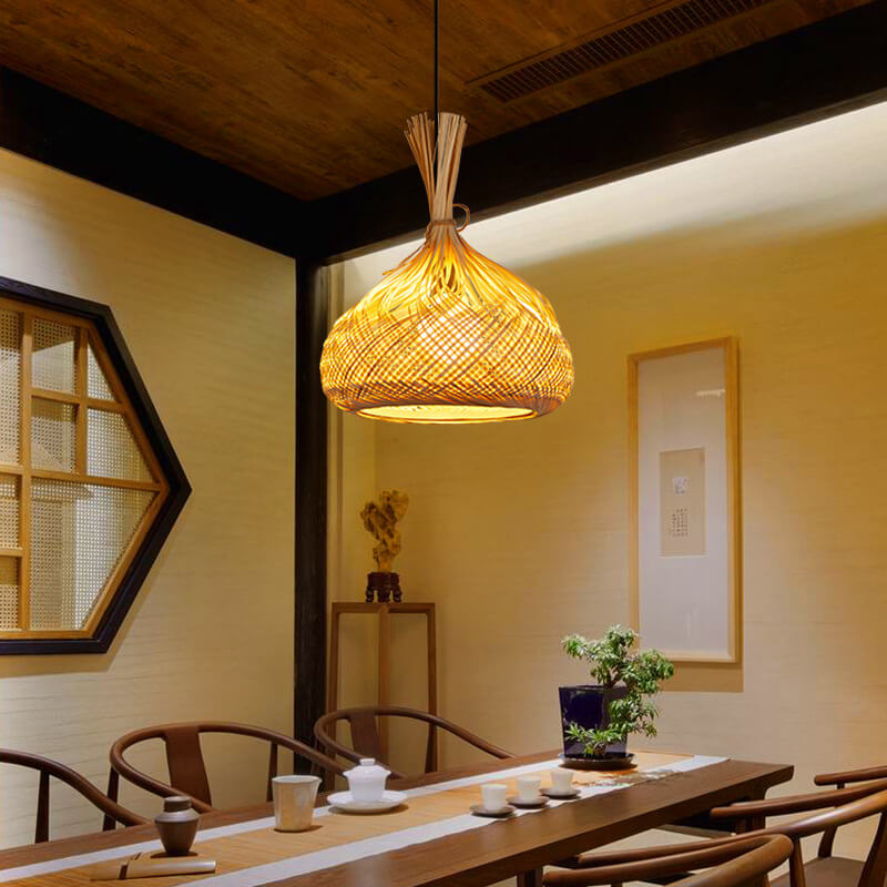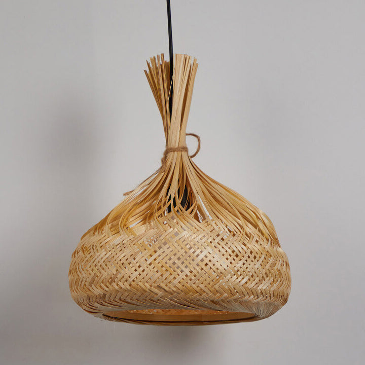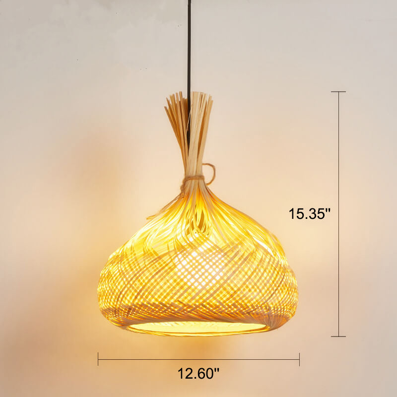 مصباح معلق حديث من الخيزران المنسوج على شكل قطرة كمثرى، مزود بمصباح واحد