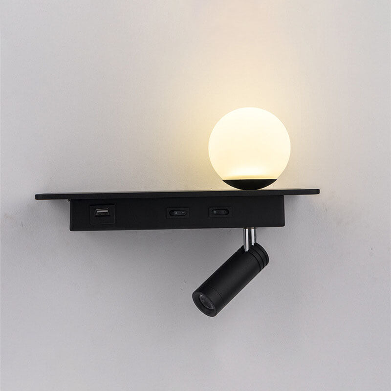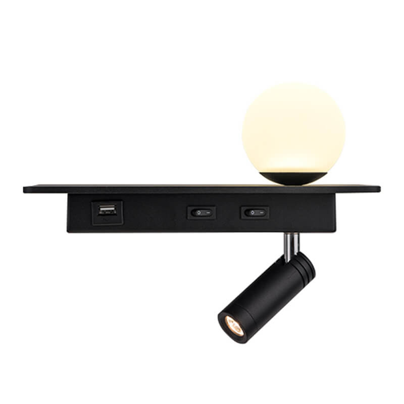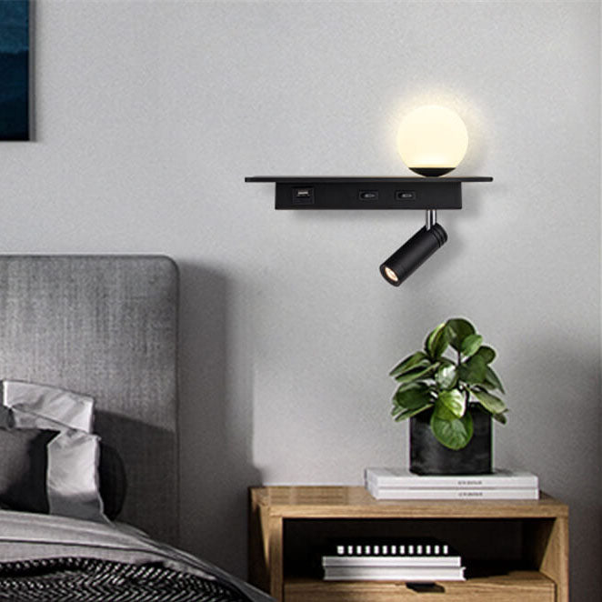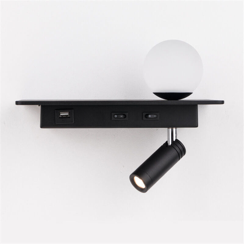 مصباح حائط حديث باللونين الأسود والأبيض مع مقبس USB وإضاءة LED من الحديد