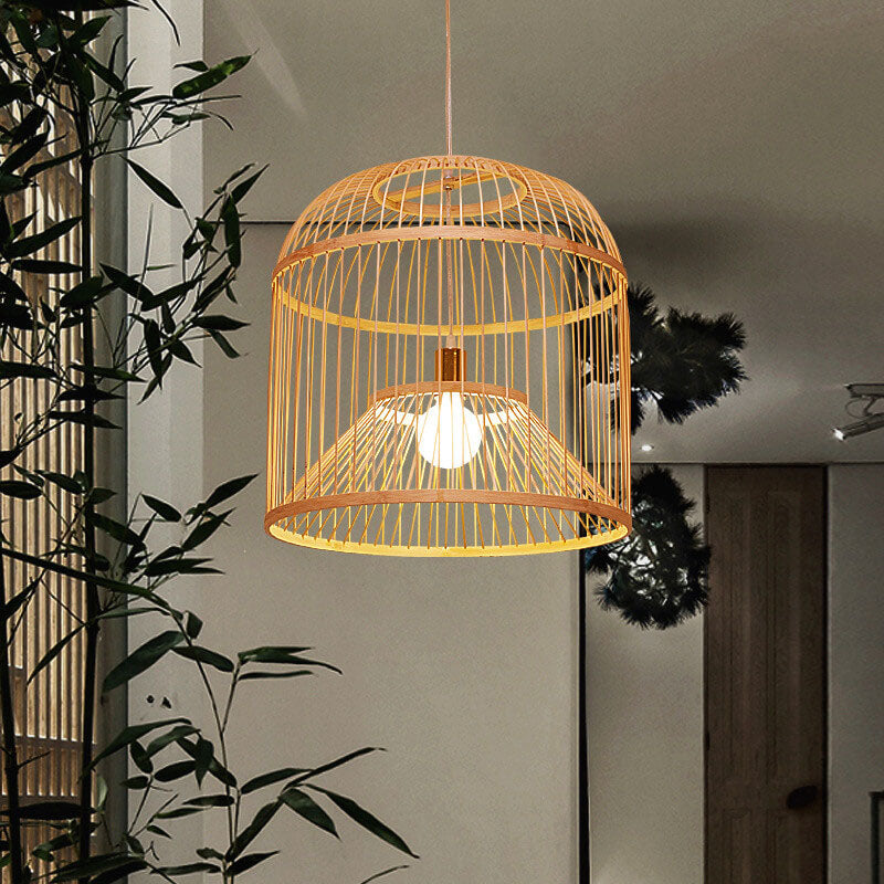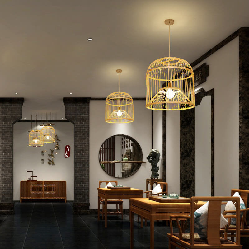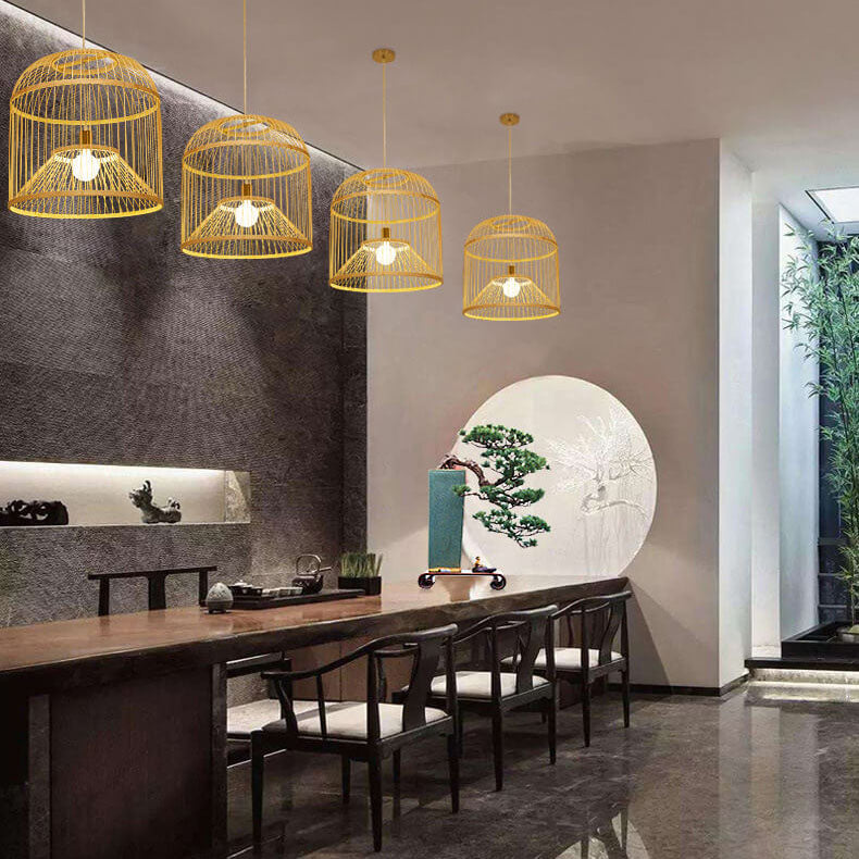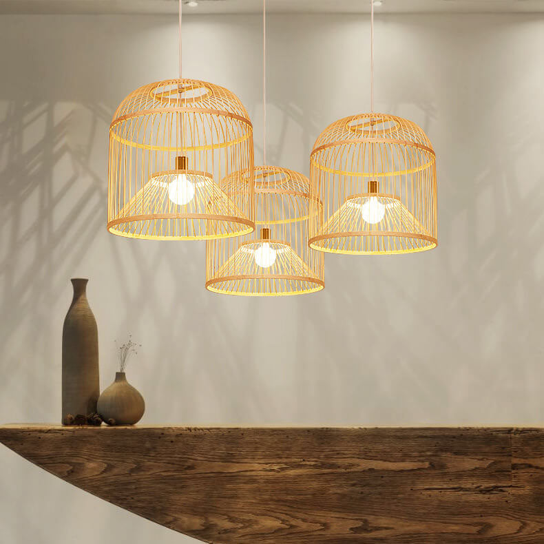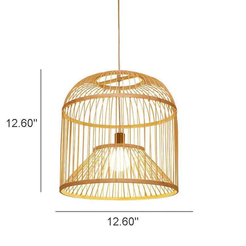 مصباح معلق حديث على شكل قفص طيور من الخيزران الصيني المنسوج، مزود بمصباح واحد