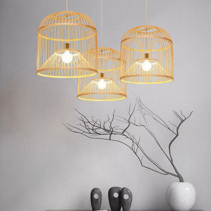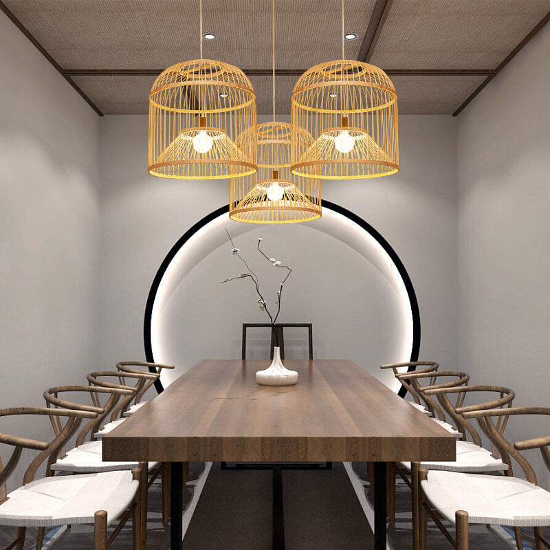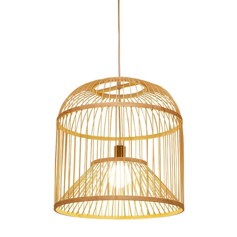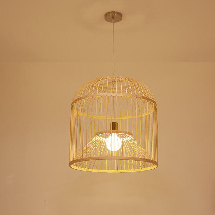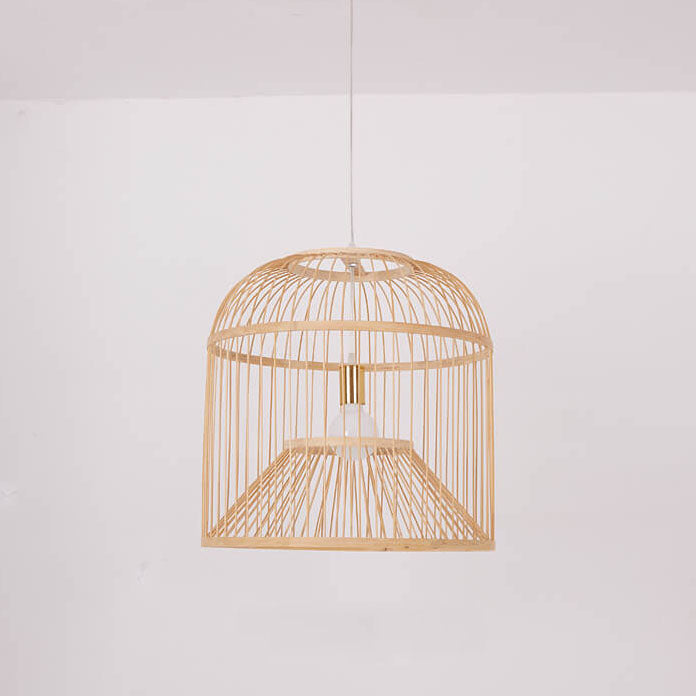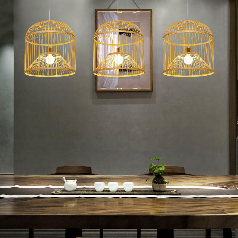 مصباح معلق حديث على شكل قفص طيور من الخيزران الصيني المنسوج، مزود بمصباح واحد