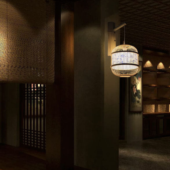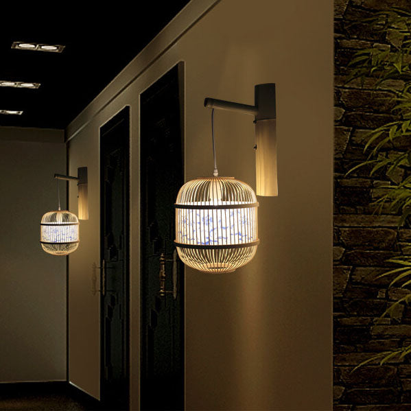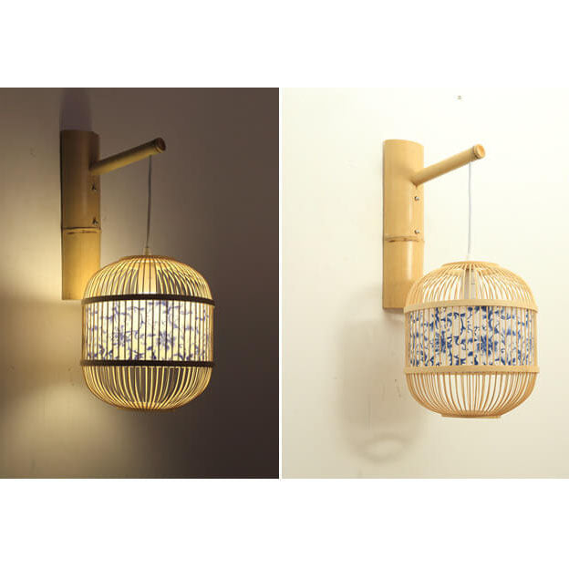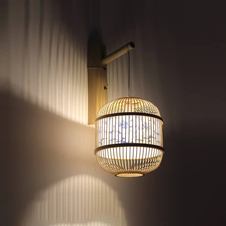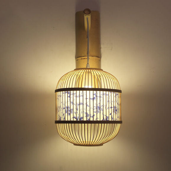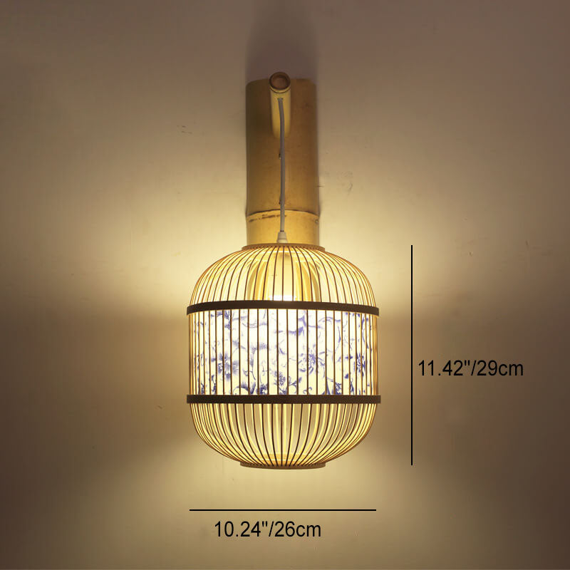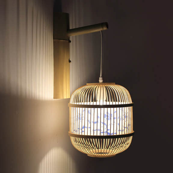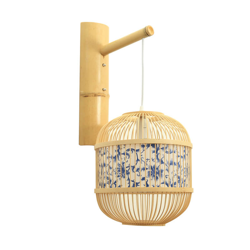 مصباح حائط بيضاوي الشكل من رق الخيزران الصيني الحديث مزود بإضاءة واحدة