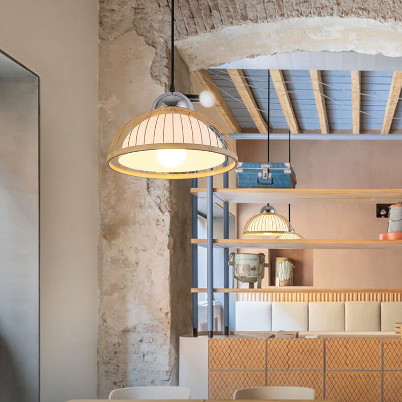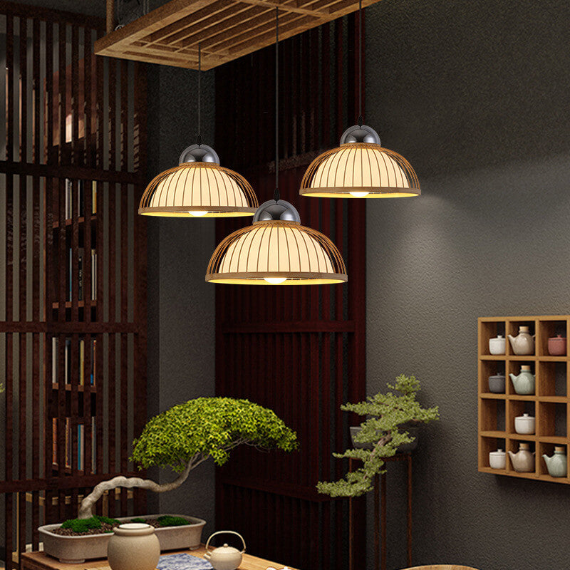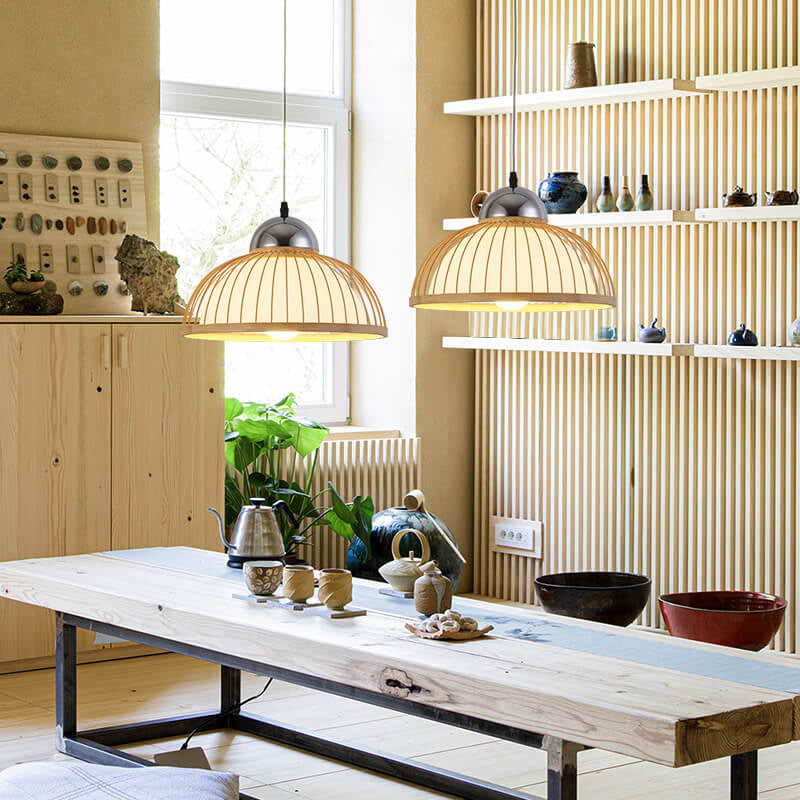 مصباح معلق حديث من الخيزران الصيني بغطاء وعاء