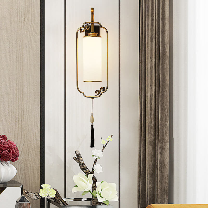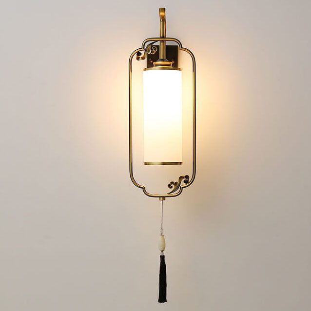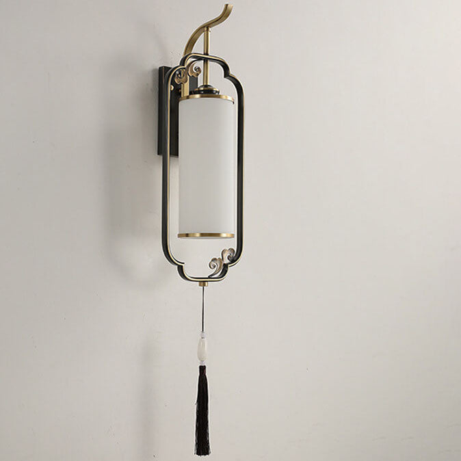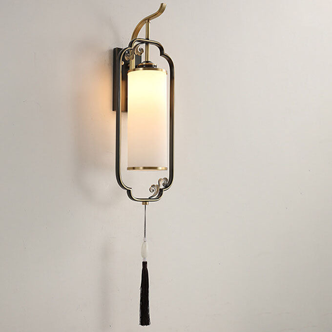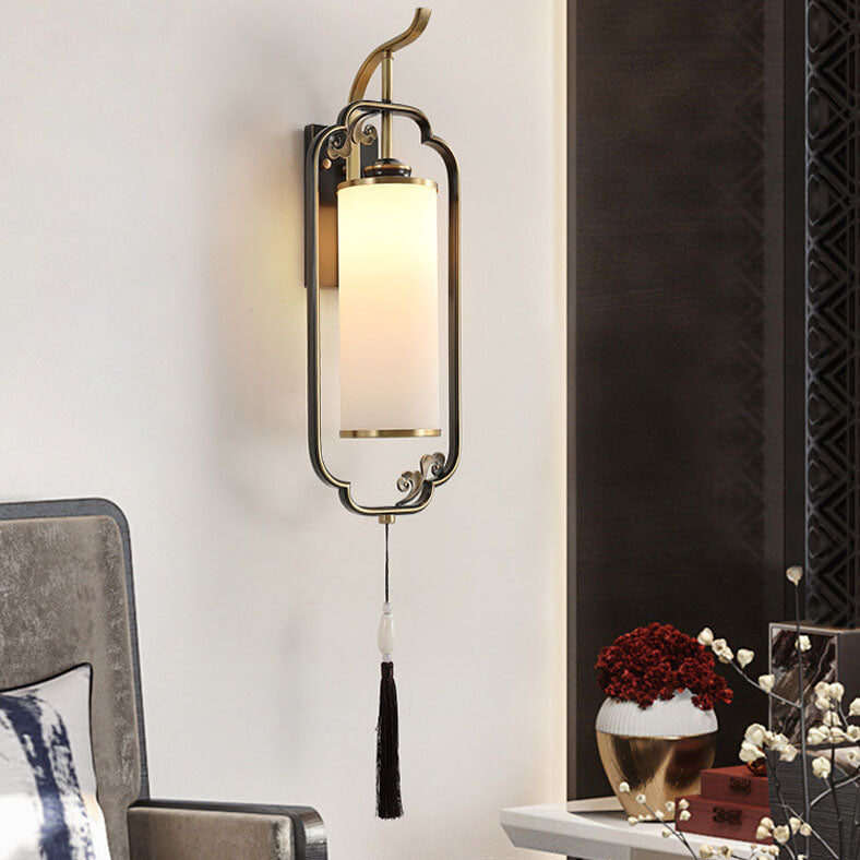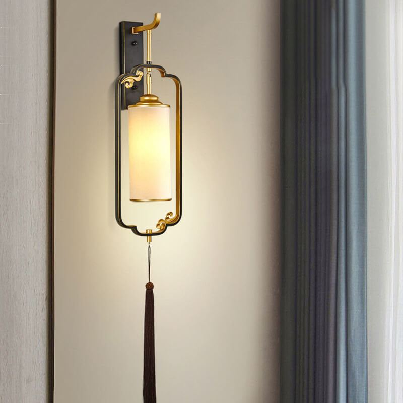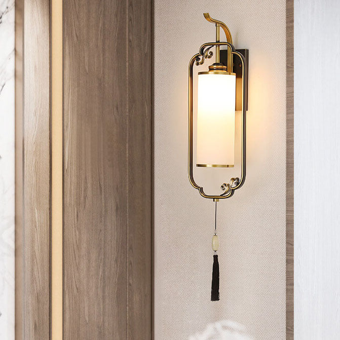 مصباح حائطي صيني حديث من النحاس والزجاج بعمود واحد
