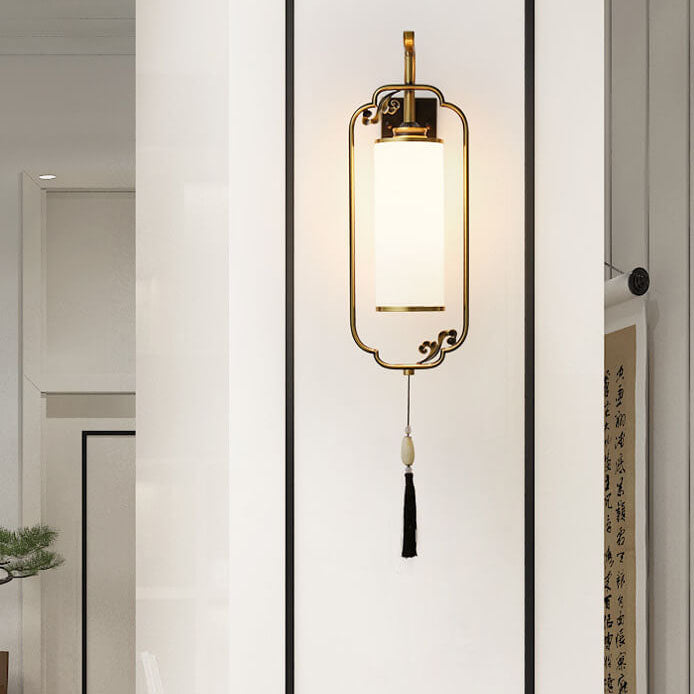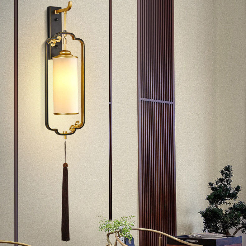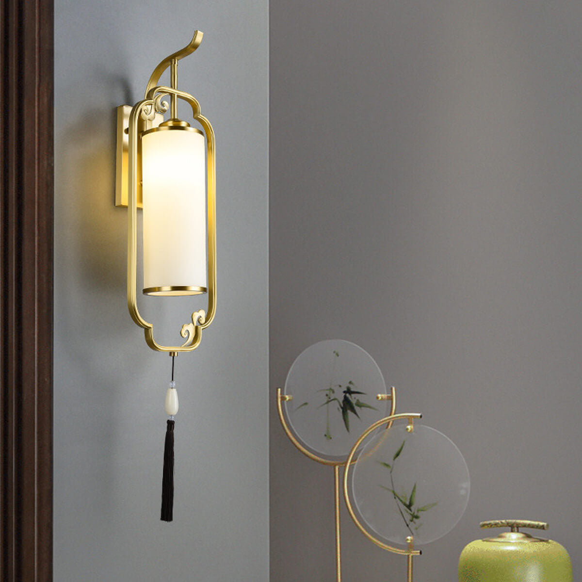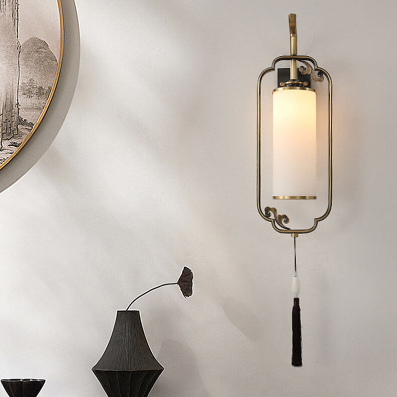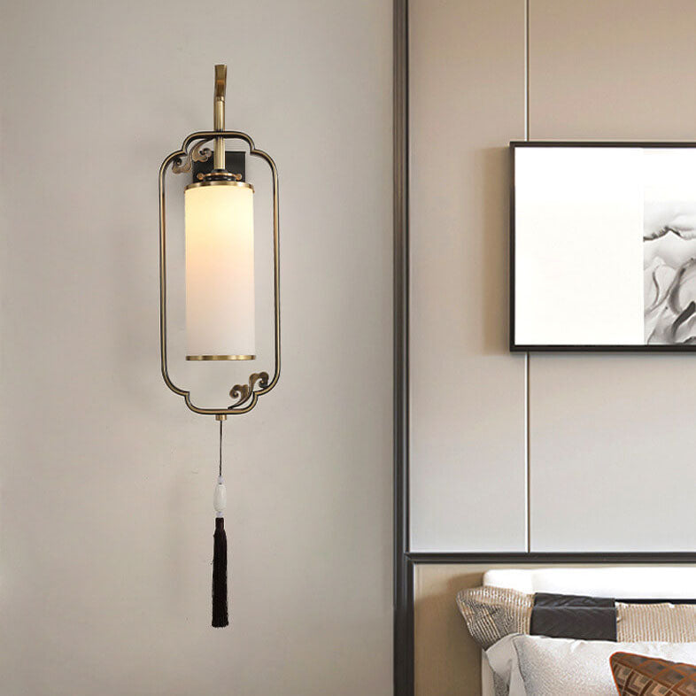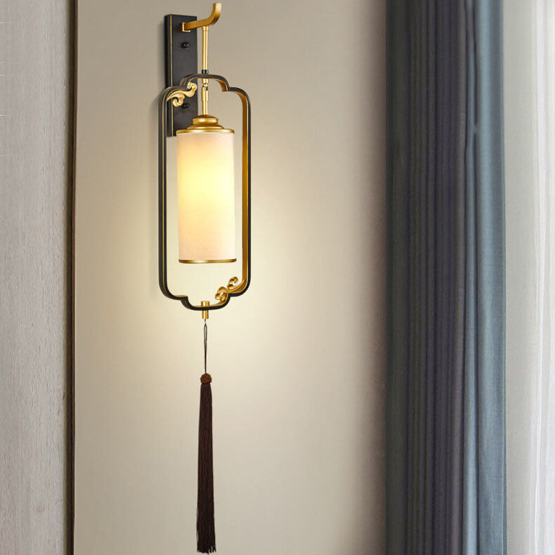 مصباح حائطي صيني حديث من النحاس والزجاج بعمود واحد