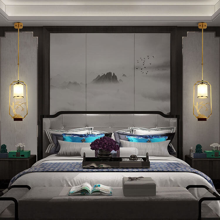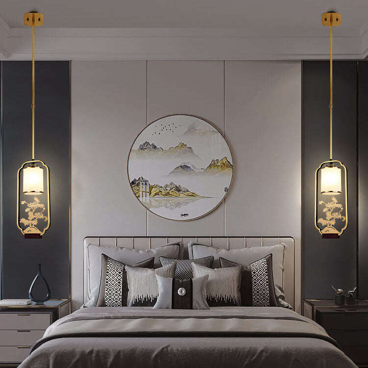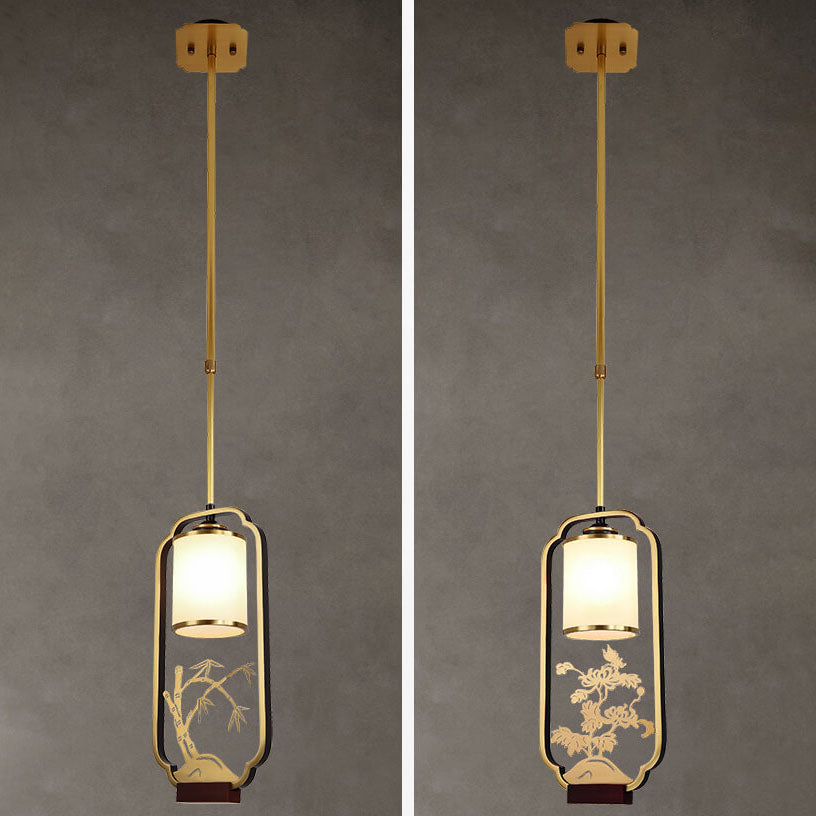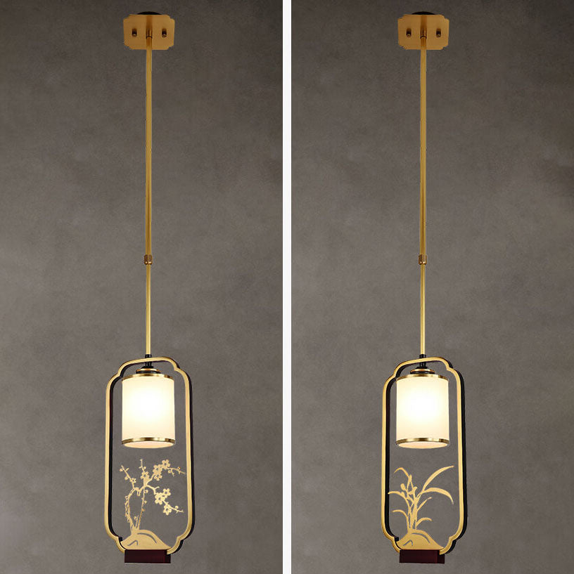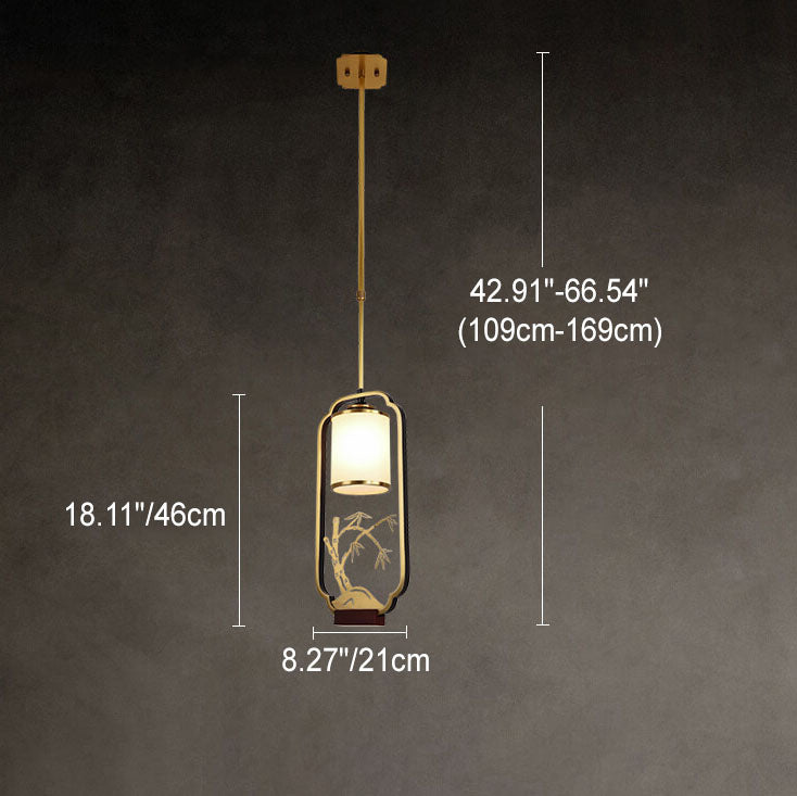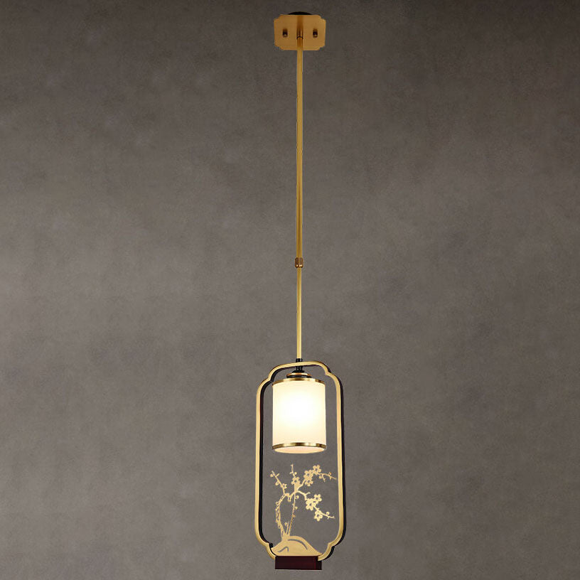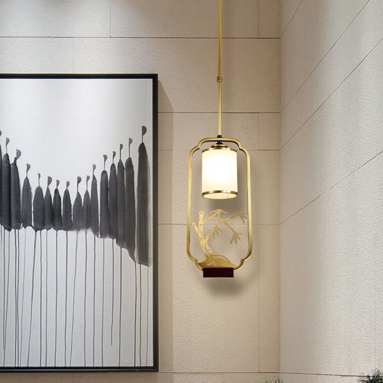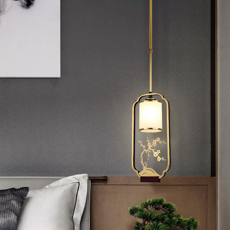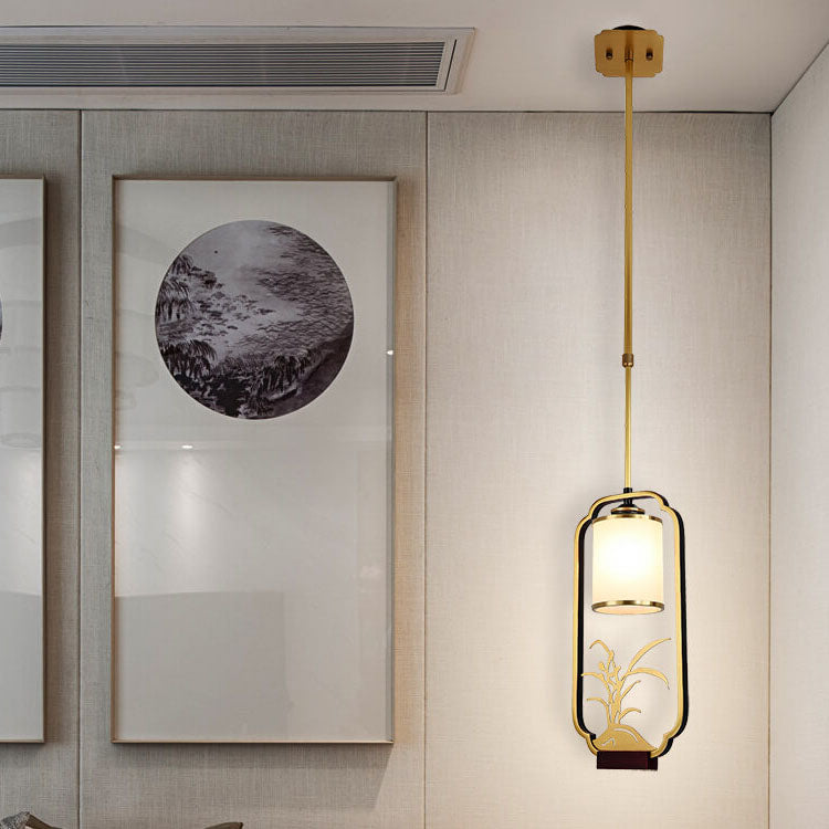 مصباح معلق صيني حديث من الزجاج على شكل حلقة زن نحاسية، مزود بمصباح واحد