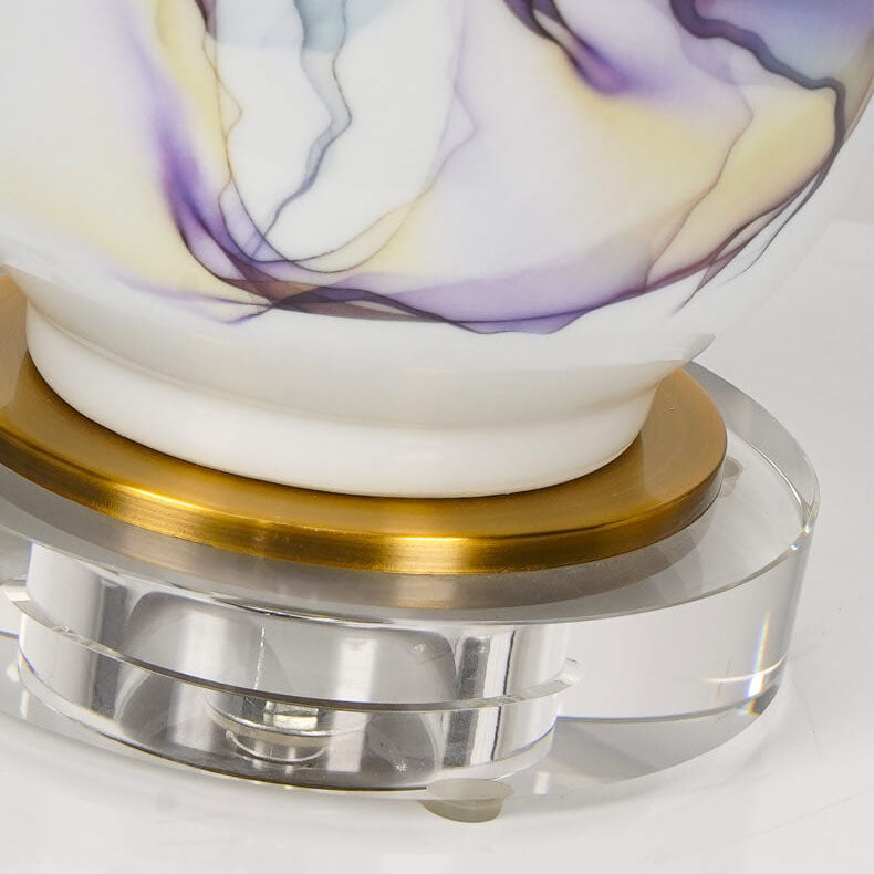 Modern Chinese Ink Ceramic Column Pleated Fabric 1-Light Table Lamp