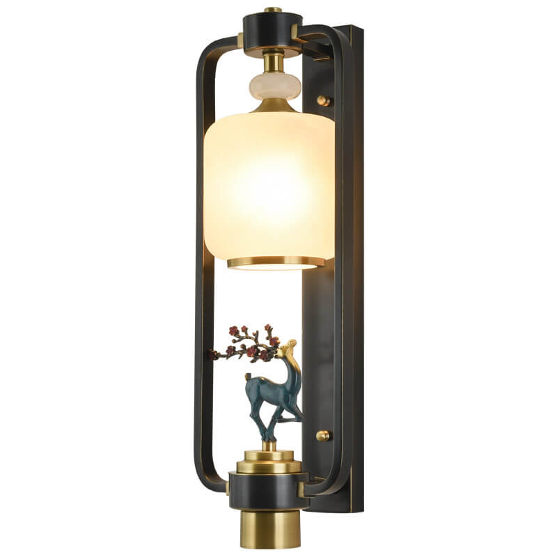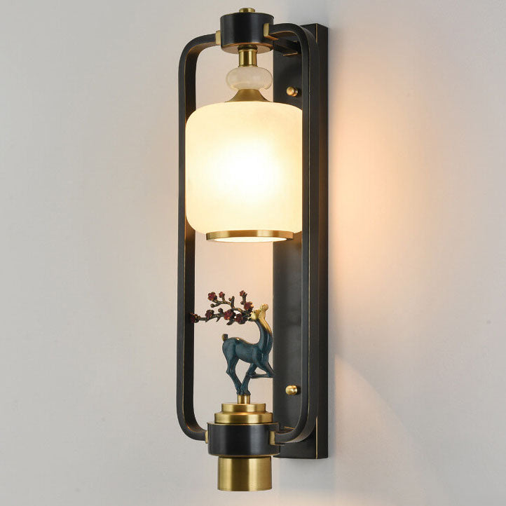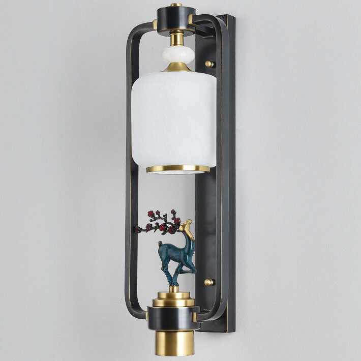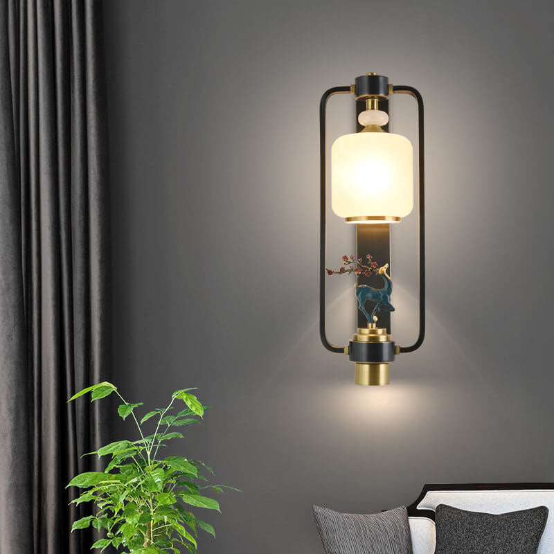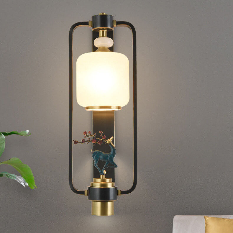 مصباح حائط صيني حديث على شكل غزال البرقوق، مزود بحلقة زجاجية نحاسية، ومصباحين