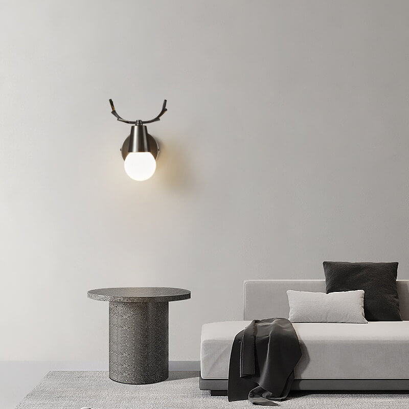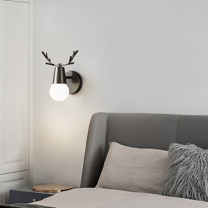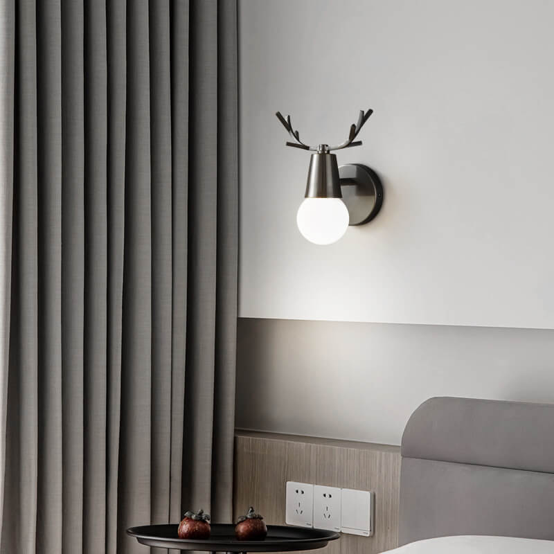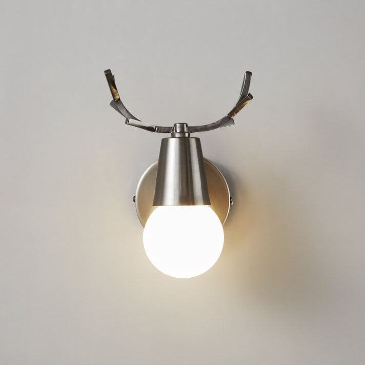 مصباح حائط زجاجي حديث من قرن الغزال النحاسي مزود بمصباح واحد