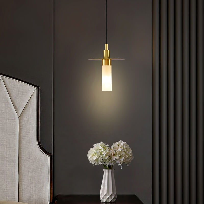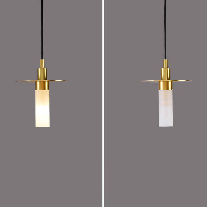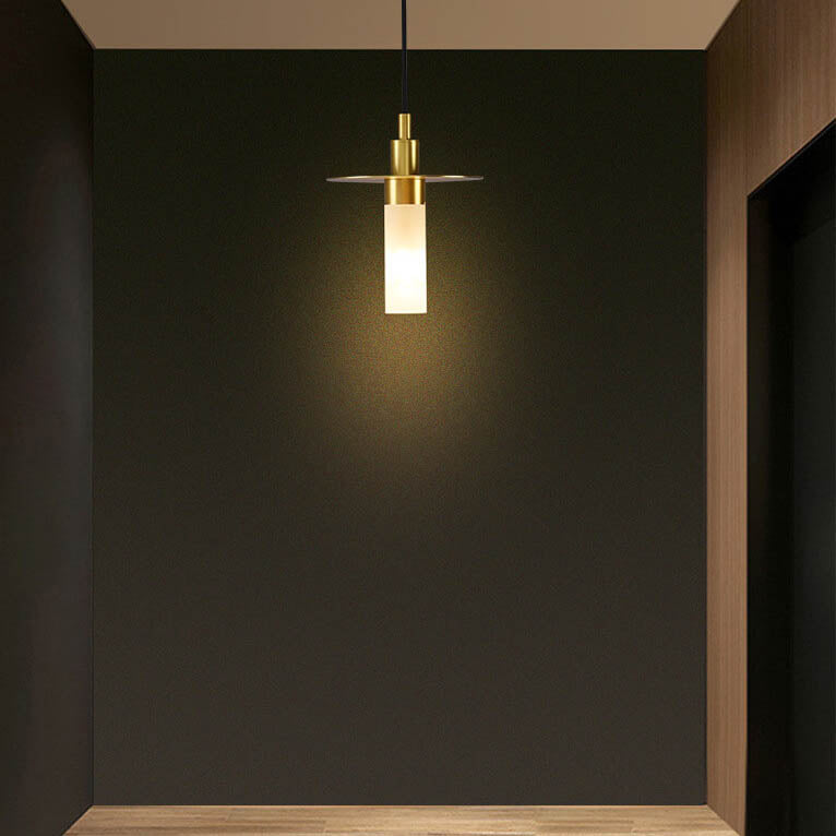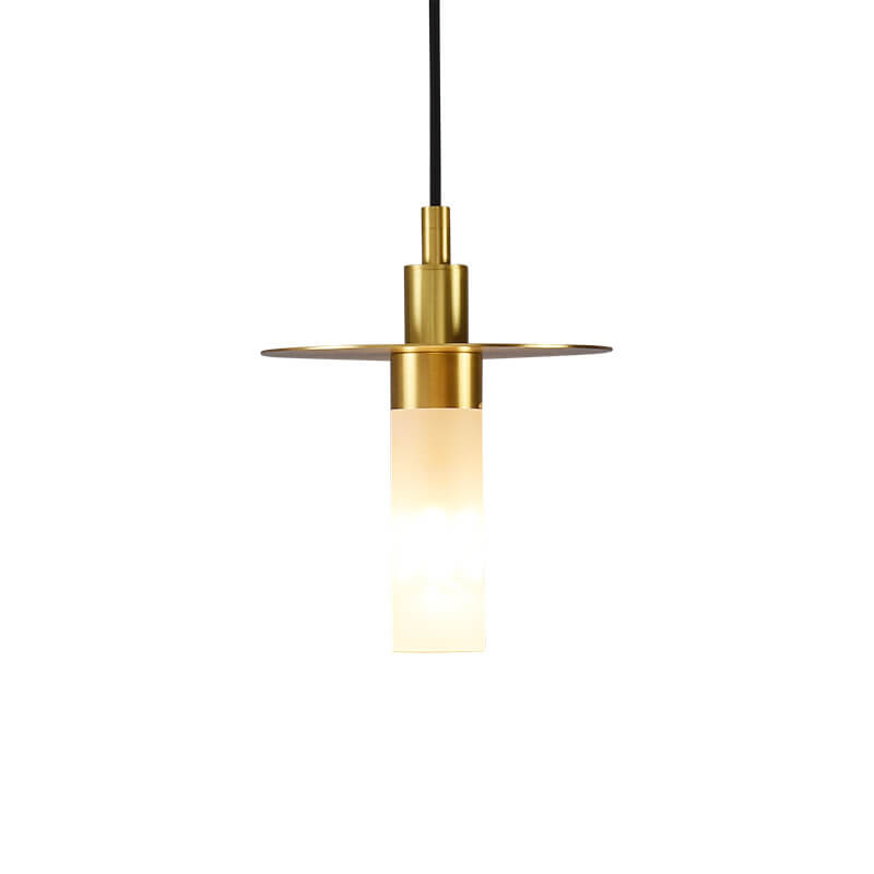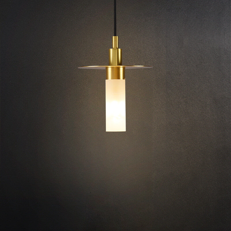 مصباح معلق حديث من النحاس والزجاج، أسطواني الشكل، مزود بمصباح واحد