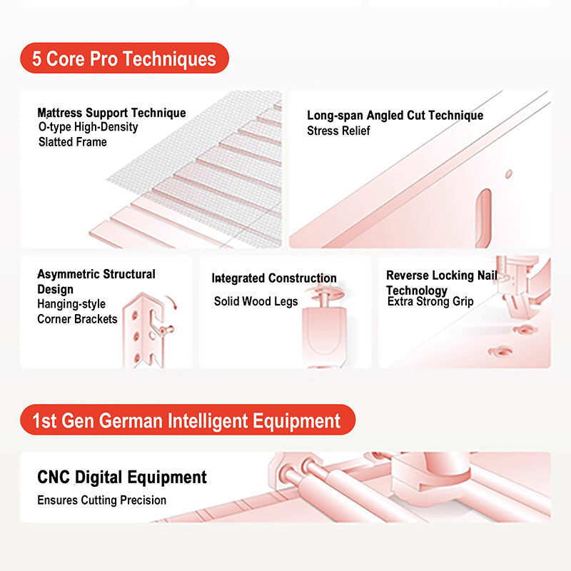 Crafted from ENF-certified multi-layer solid wood, offering top-tier environmental safety. Free of paint, highly durable, moisture-resistant, and perfectly suited for upholstered beds. -