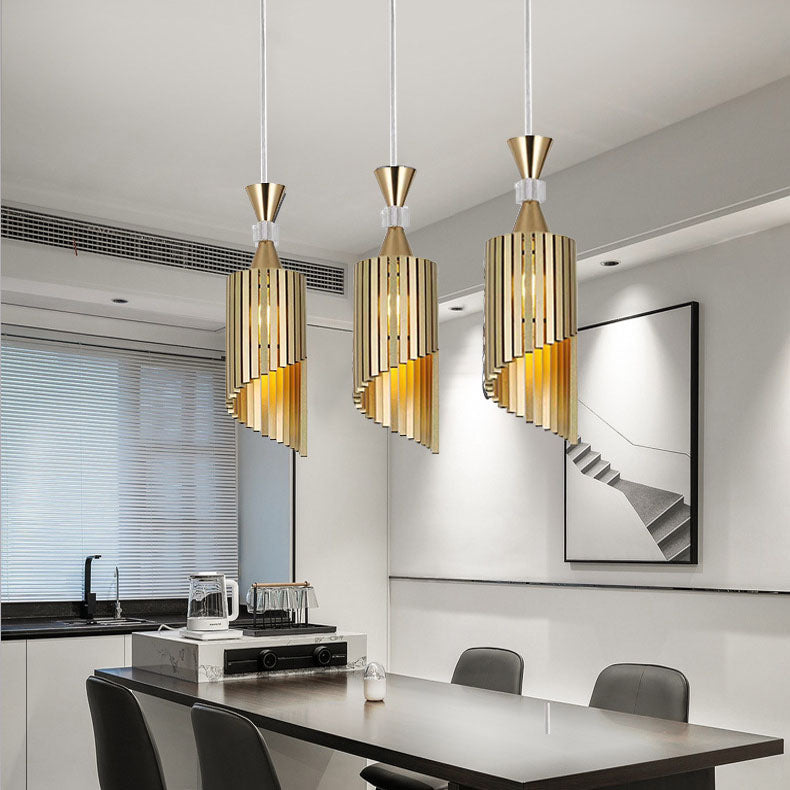 مصباح معلق حديث إبداعي من الألومنيوم بتصميم هندسي عمودي مزود بمصباح واحد