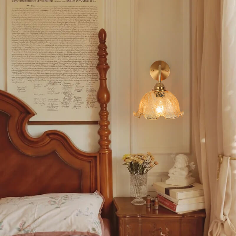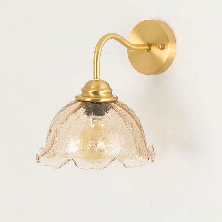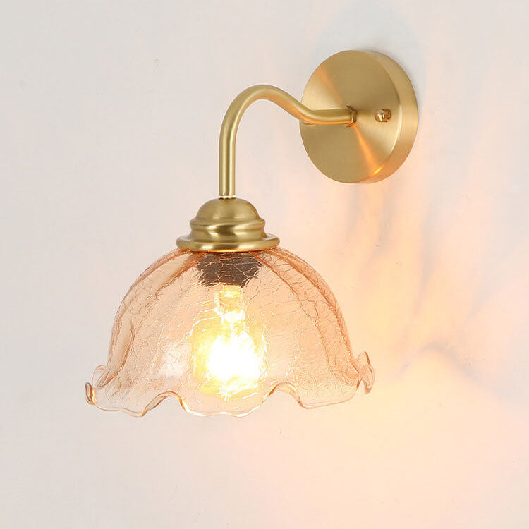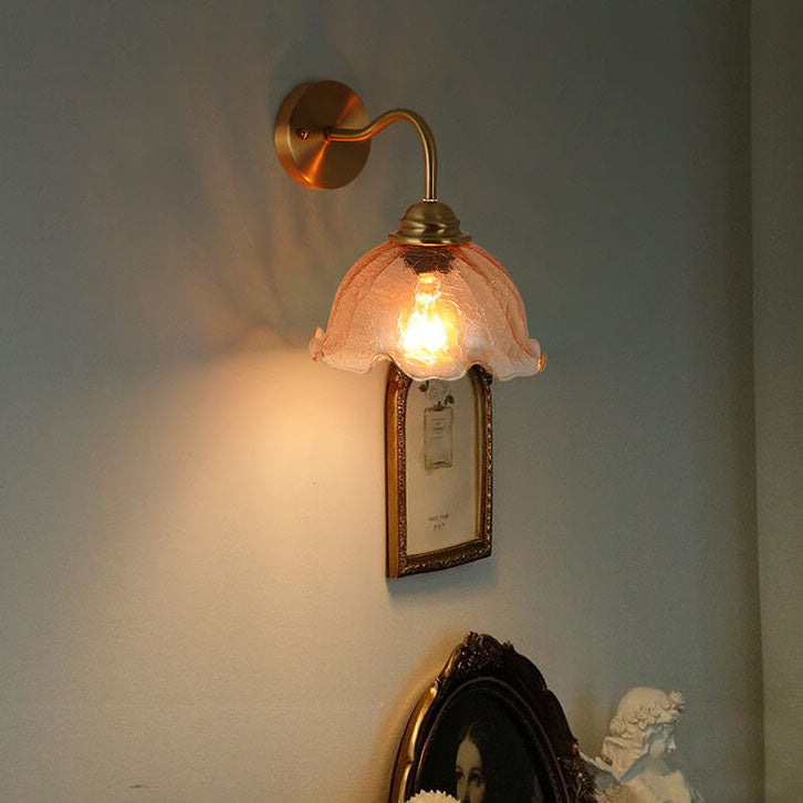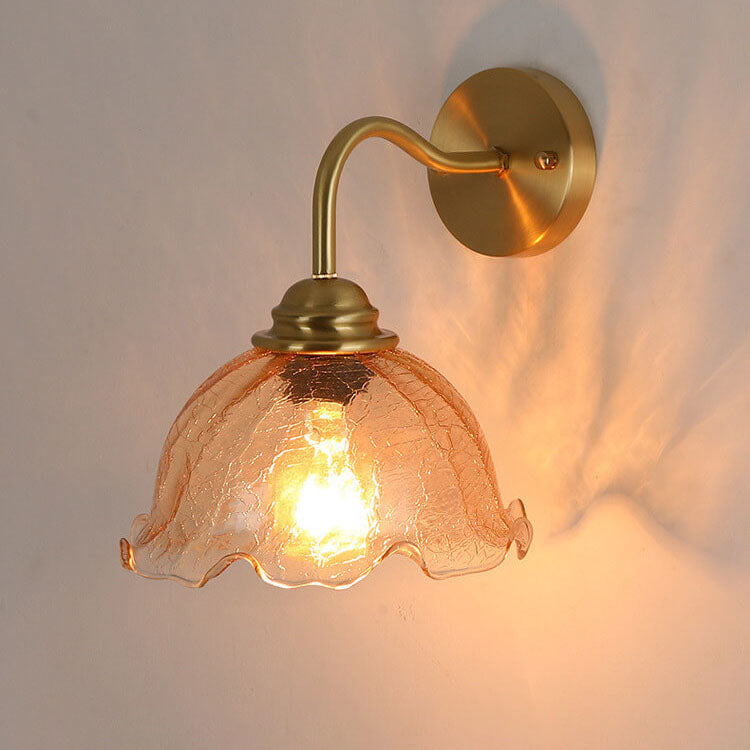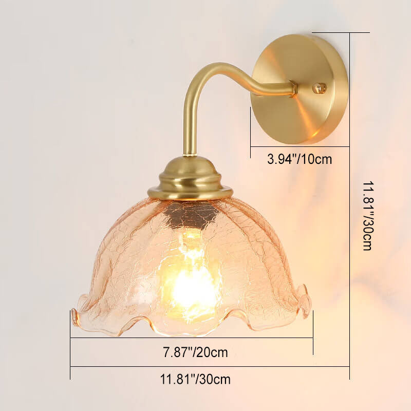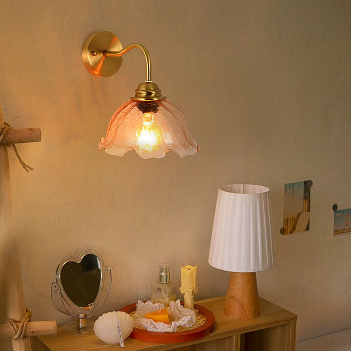 مصباح حائط حديث إبداعي على شكل زهرة من الزجاج والنحاس مزود بإضاءة واحدة
