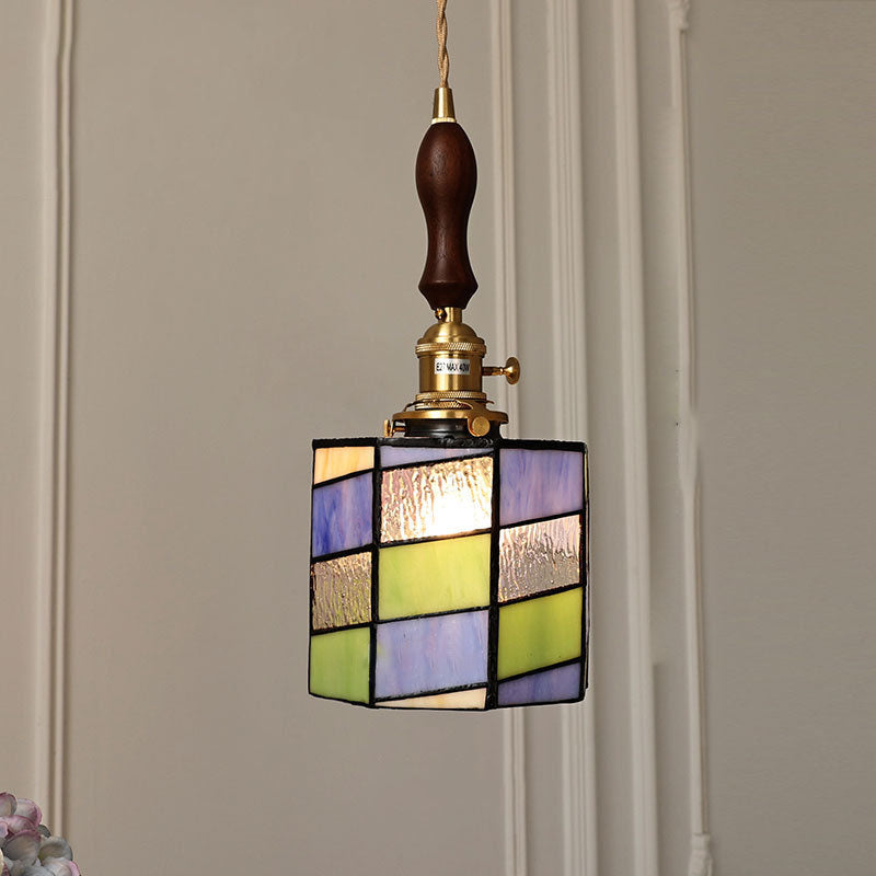 مصباح معلق أسطواني من الزجاج الملون بتصميم عصري إبداعي وبسيط، مزود بمصباح واحد