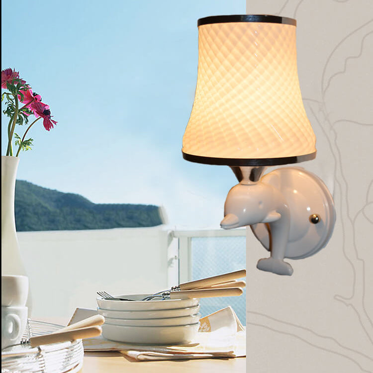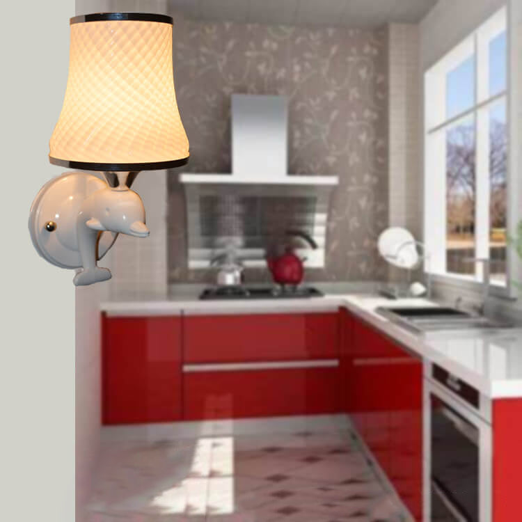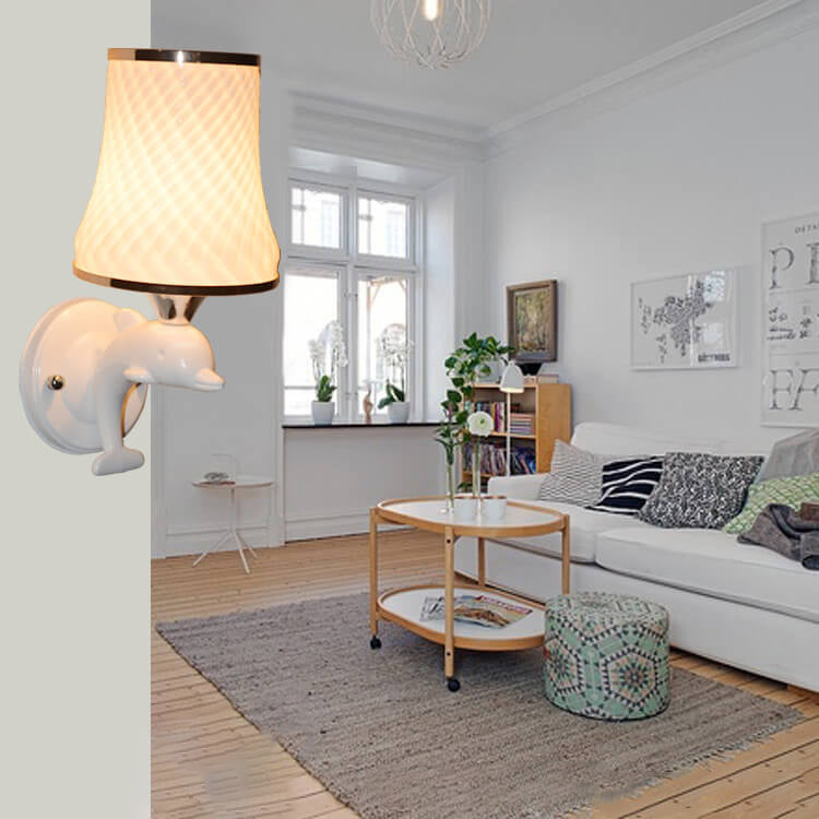 مصباح حائطي حديث من الزجاج بتصميم إبداعي على شكل دولفين، مزود بإضاءة واحدة