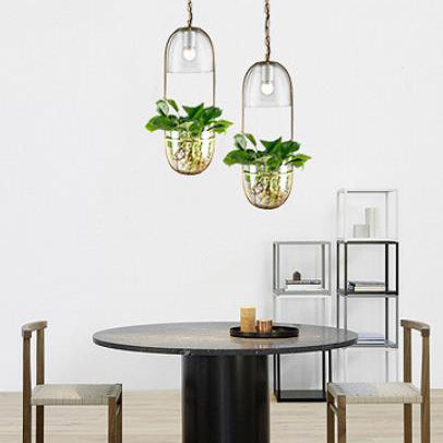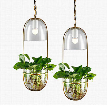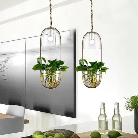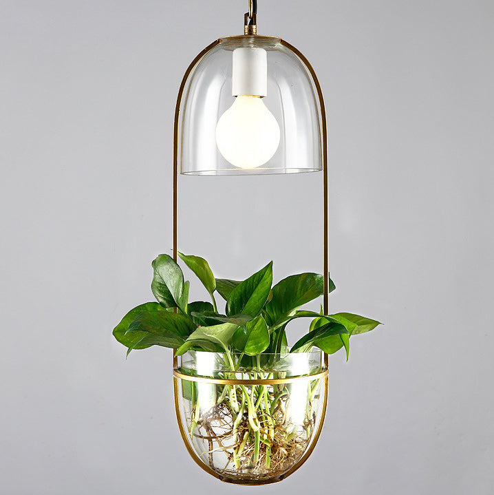 مصباح معلق زجاجي بتصميم آرت ديكو حديث، سلة نباتات مائية إبداعية، مصباح معلق بضوء واحد