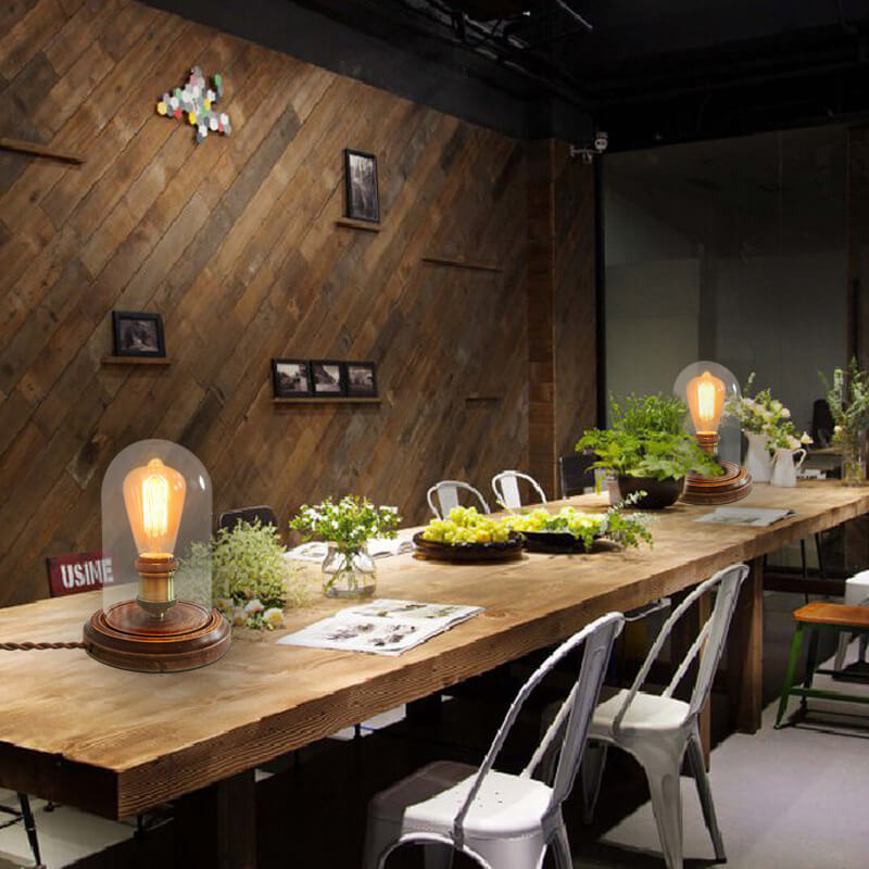 Modern Industrial Retro Wood Art Glass 1-Light Table Lamp