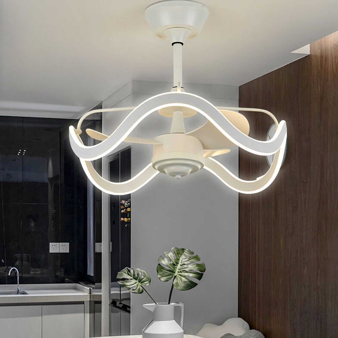 مروحة سقف دائرية فاخرة حديثة الإضاءة، عاكسة صامتة، قضبان سفلية