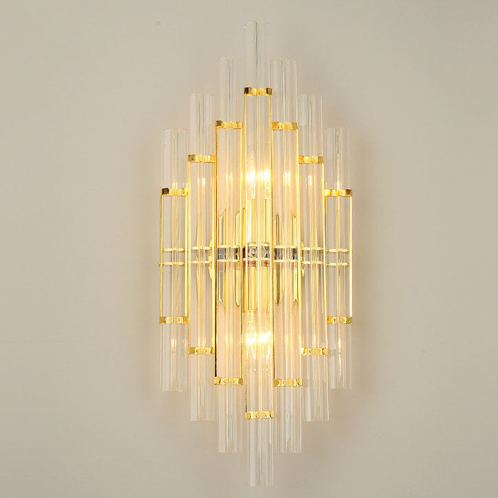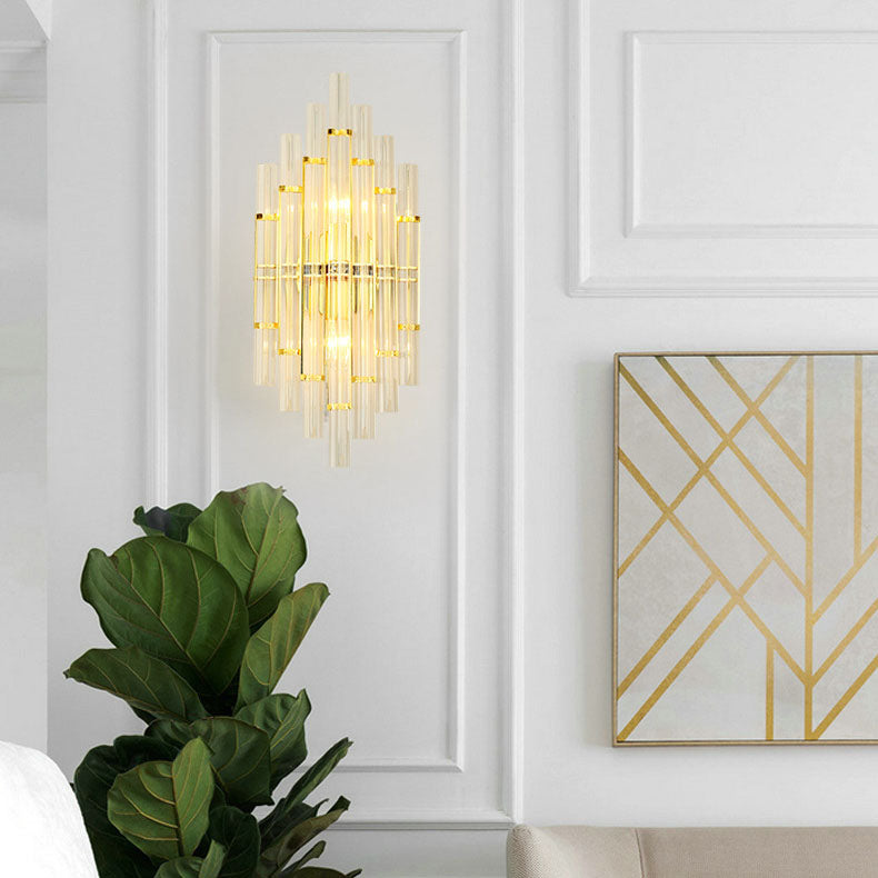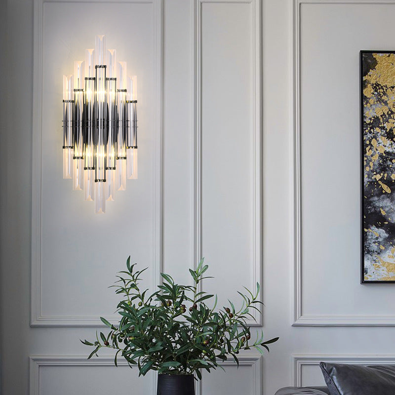 مصباح حائطي حديث فاخر بإضاءة كريستالية هندسية قابلة لإعادة الشحن مزود بمصباحين