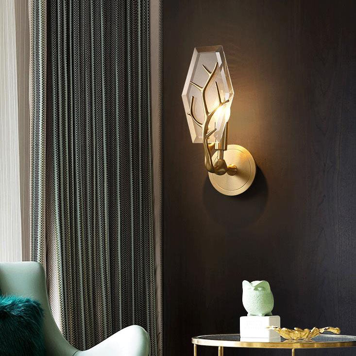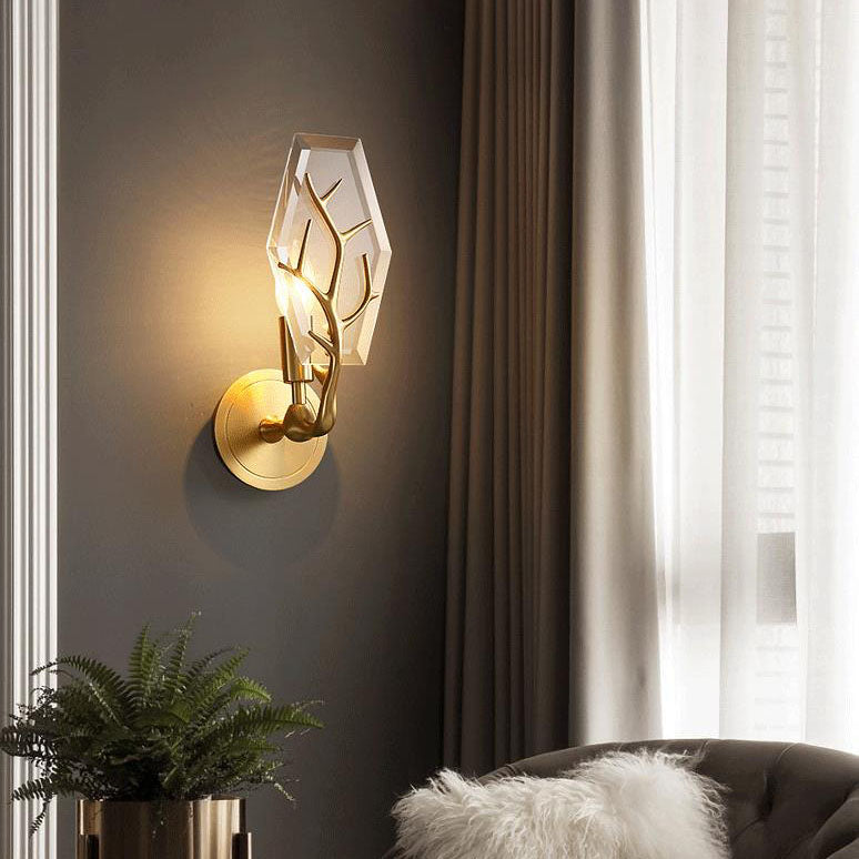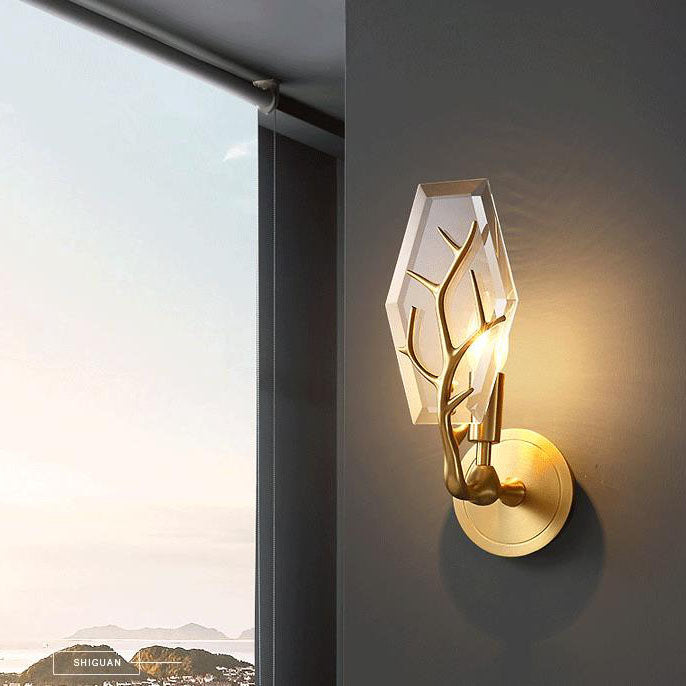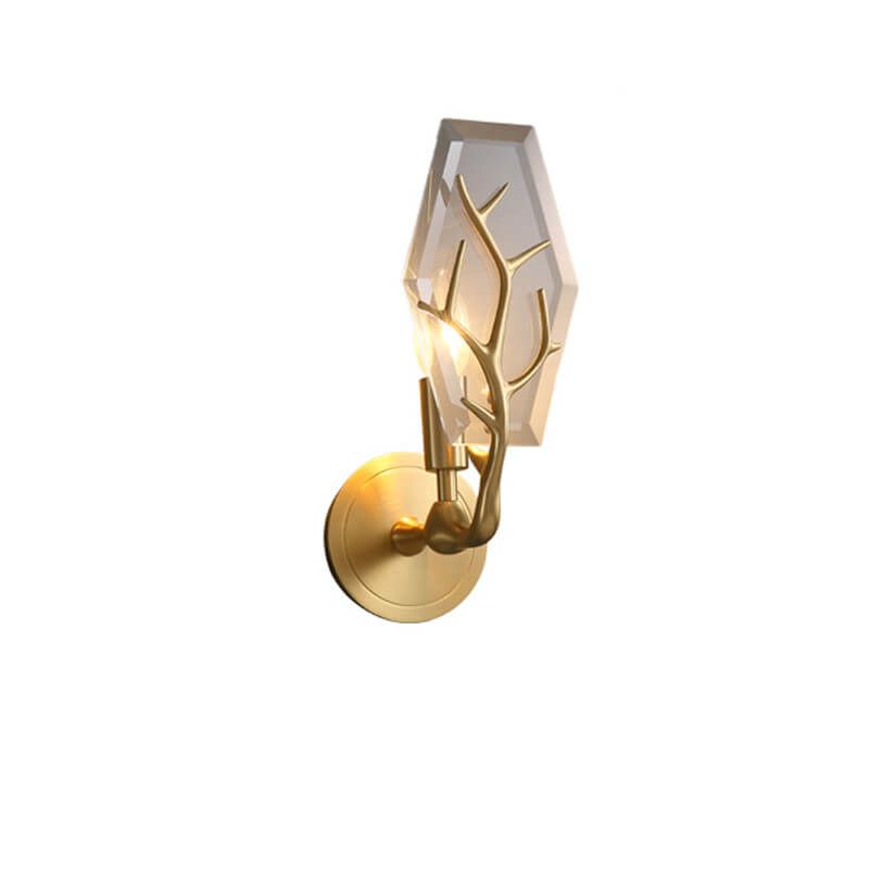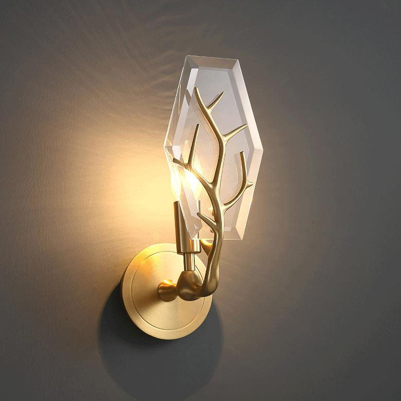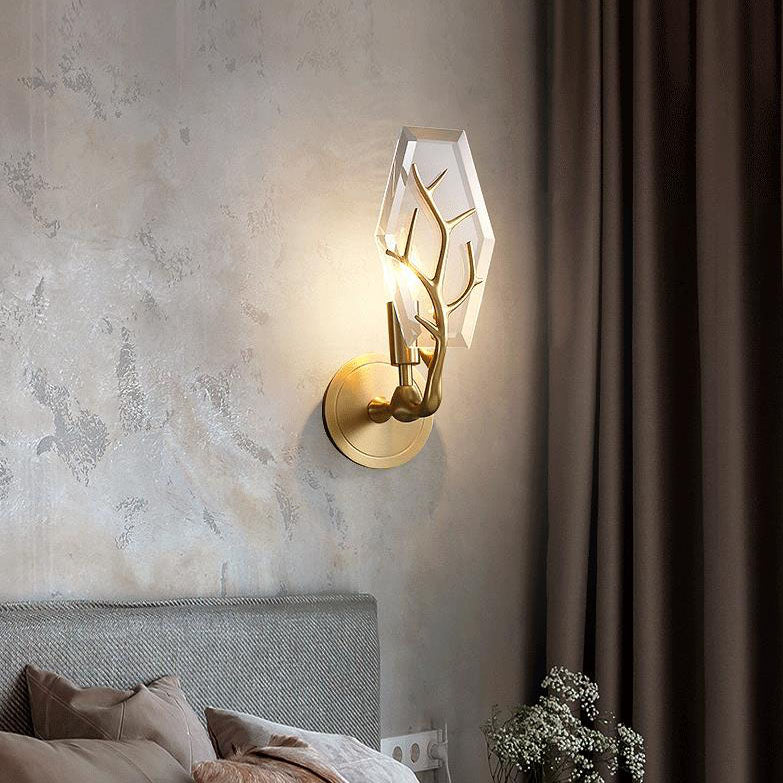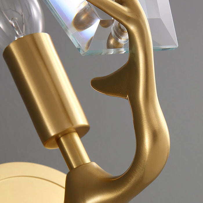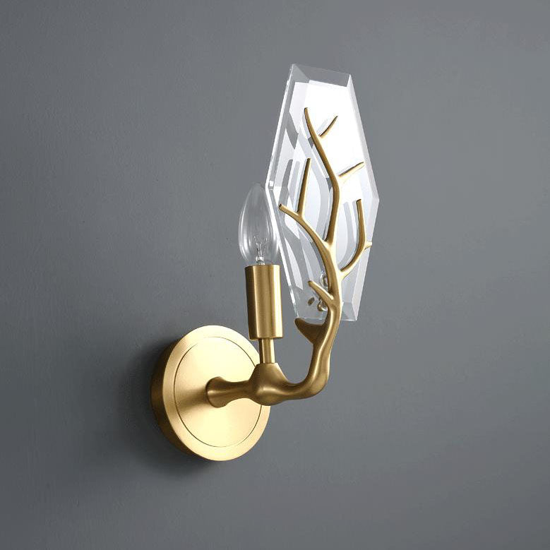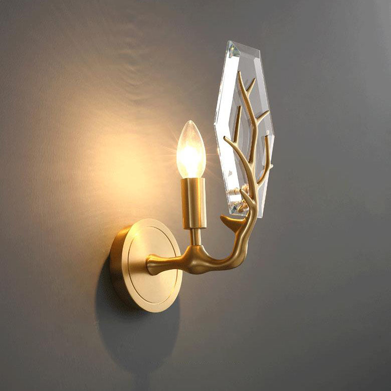 مصباح حائط عصري فاخر على شكل قرن الوعل الكريستالي، مزود بمصباح واحد