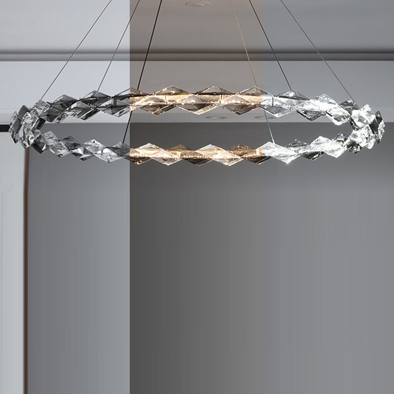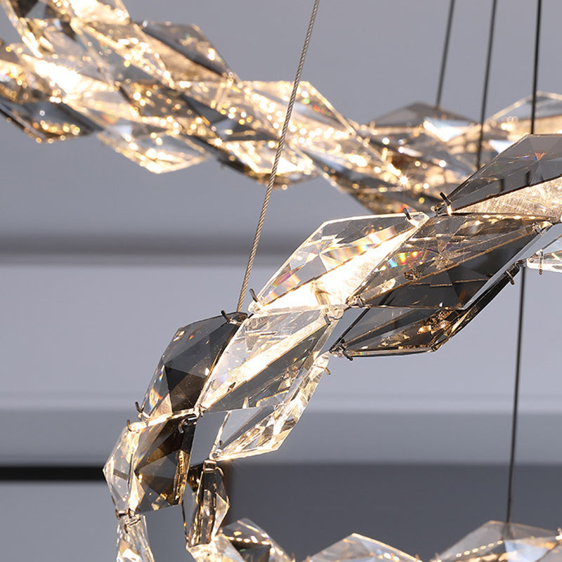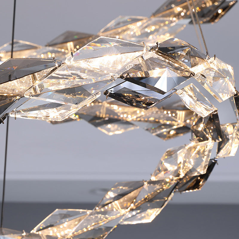ثريات LED دائرية من الكريستال بتصميم عصري فاخر لغرفة المعيشة