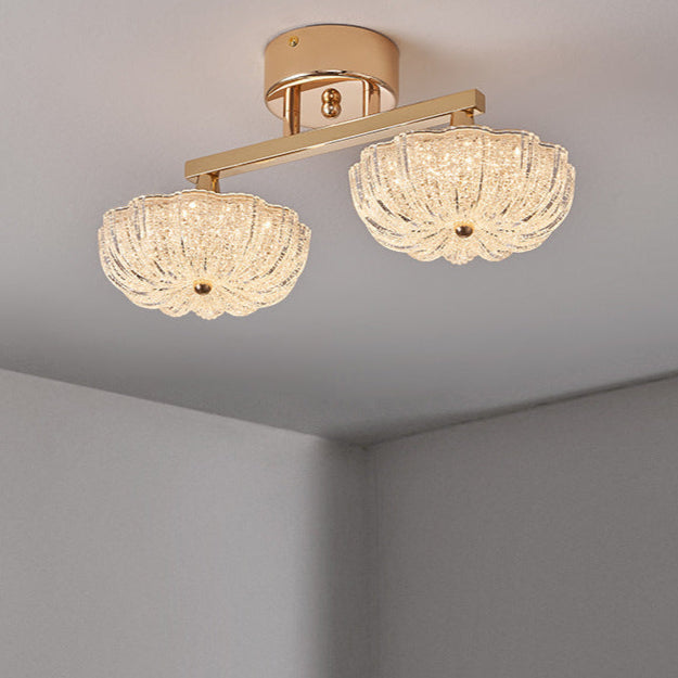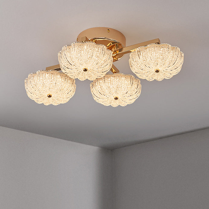 أضئ مساحتك بهذا المصباح السقفي الذهبي الأنيق بنقشة الزهور، المصنوع من أكريليك مصنفر وغطاء كريستالي رملي بتقنيات راقية. يضفي هذا المصباح LED الفاخر شبه المسطح لمسةً من الرقي على غرف المعيشة وغرف النوم على حد سواء.