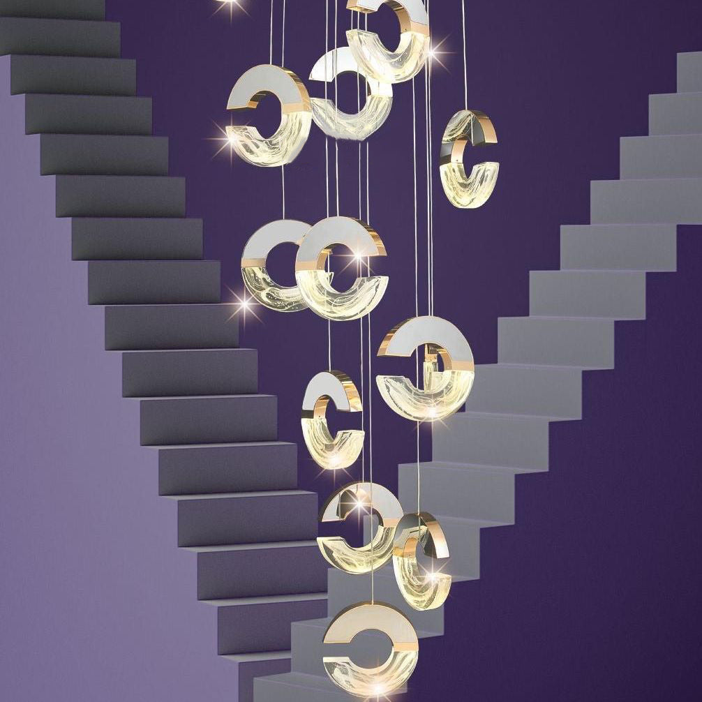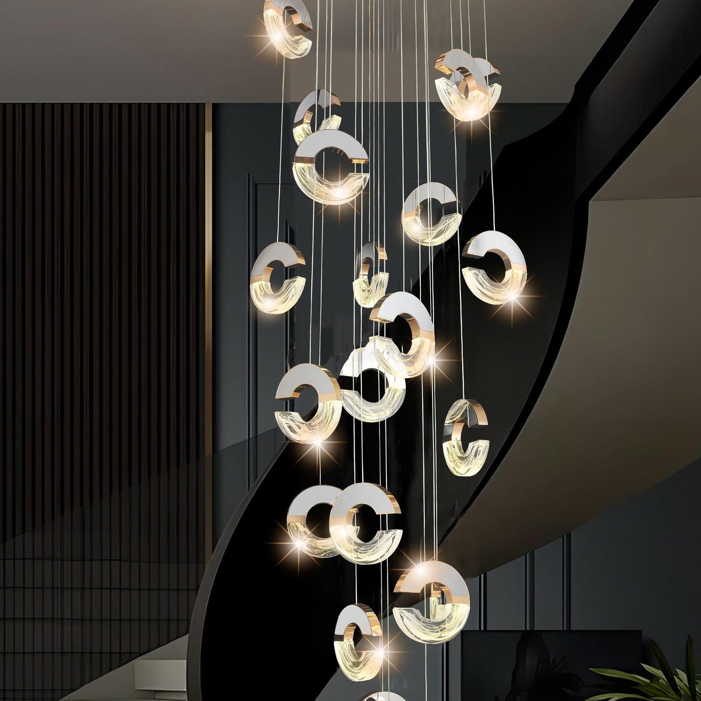 ثريات LED حديثة فاخرة من الألومنيوم والفولاذ المقاوم للصدأ على شكل حرف C لغرفة المعيشة