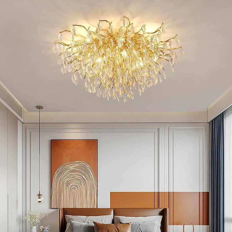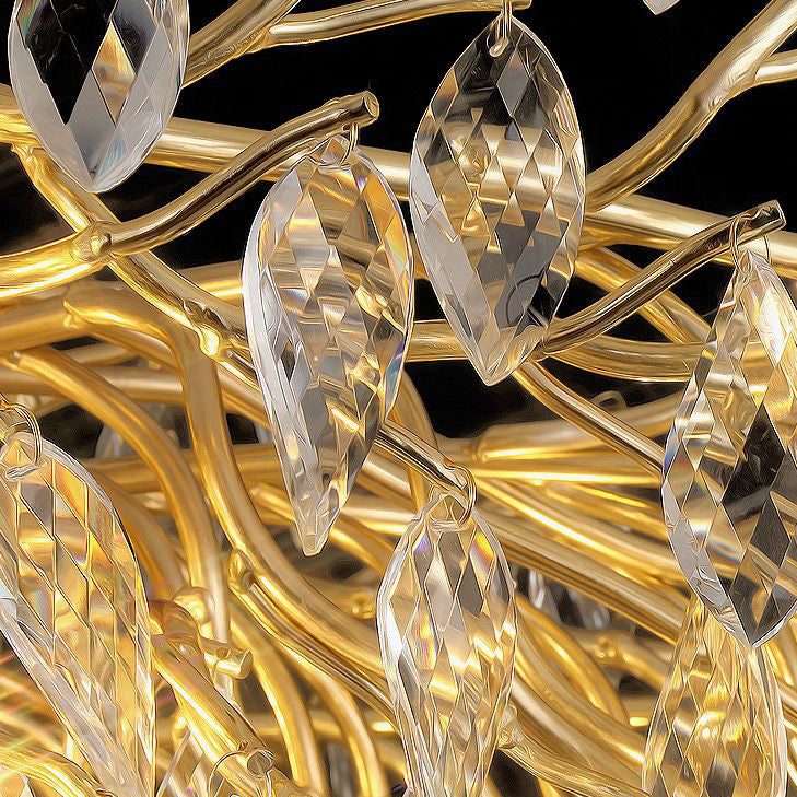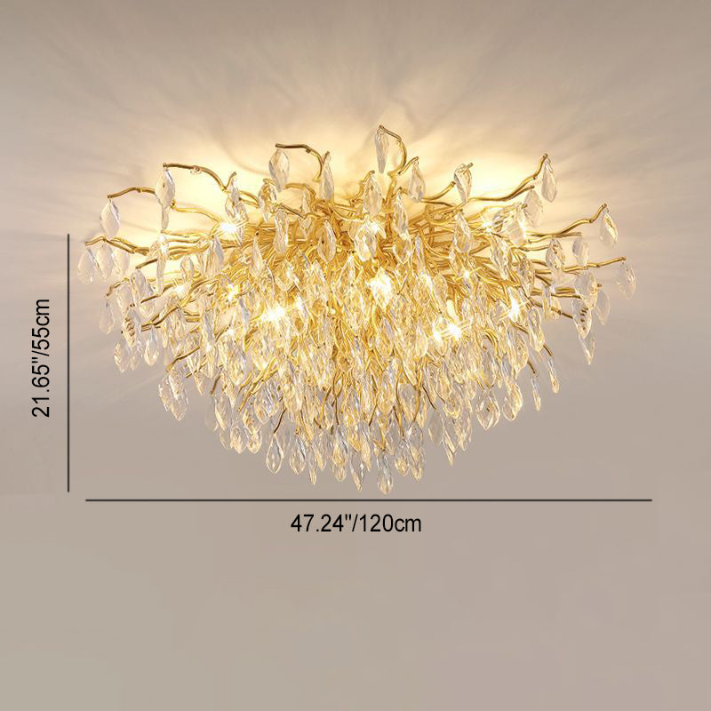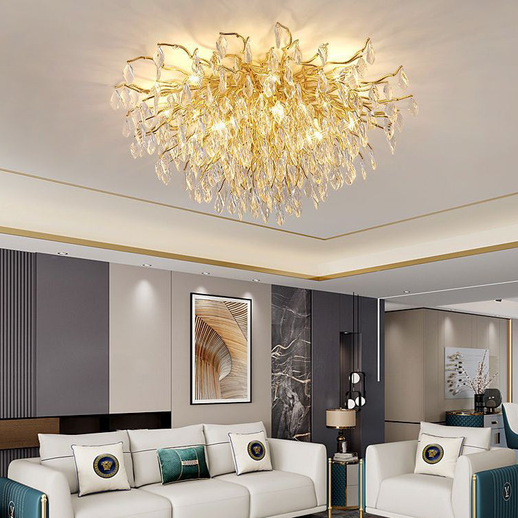 مصباح سقف فاخر عصري على شكل فرع على شكل دمعة من الألومنيوم الكريستالي 13/15 ضوءًا مثبتًا بشكل مسطح لغرفة المعيشة