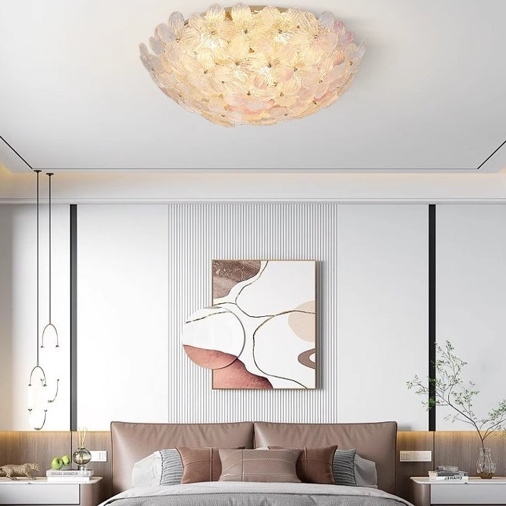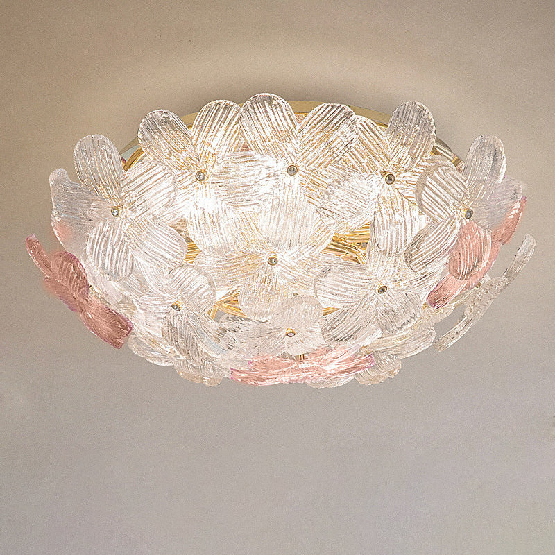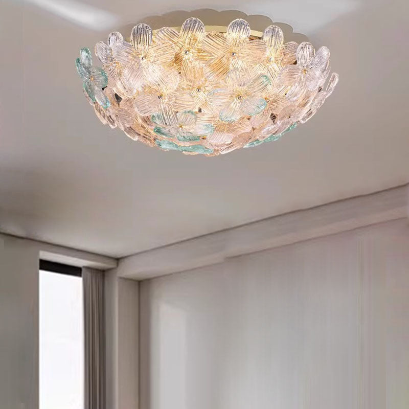 مصباح سقف عصري فاخر من الفولاذ الكربوني بقبة زجاجية مزهرية 10/16 ضوءًا شبه مسطح لغرفة المعيشة