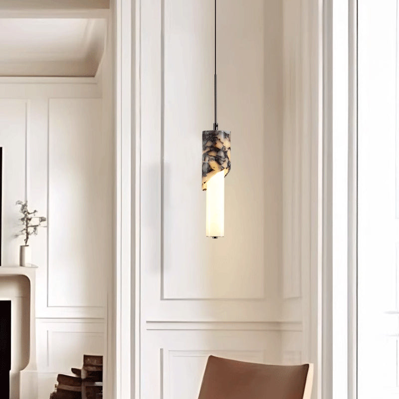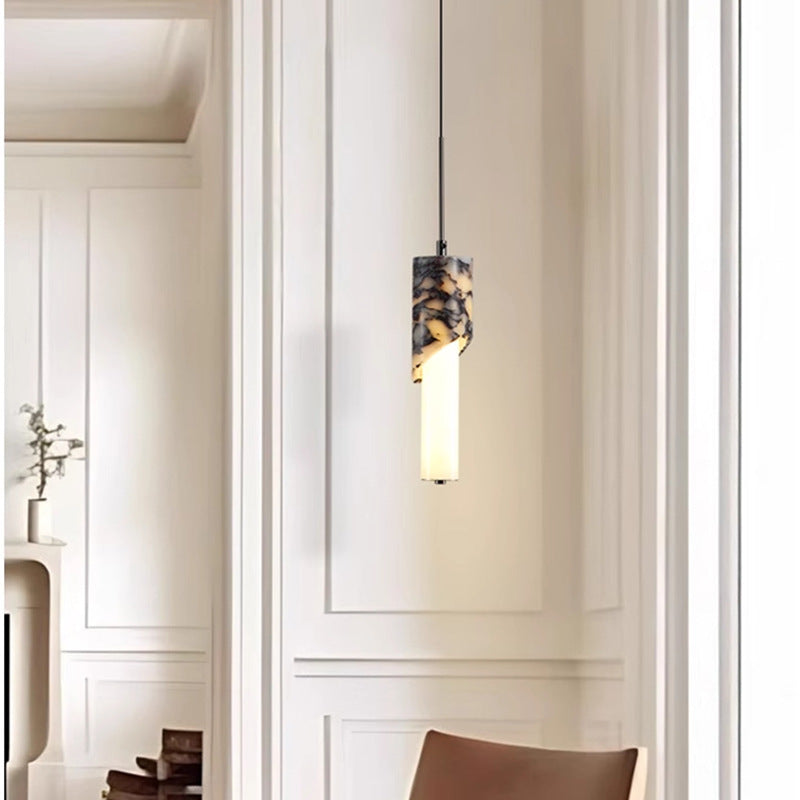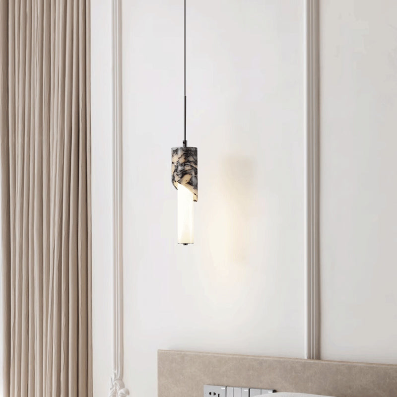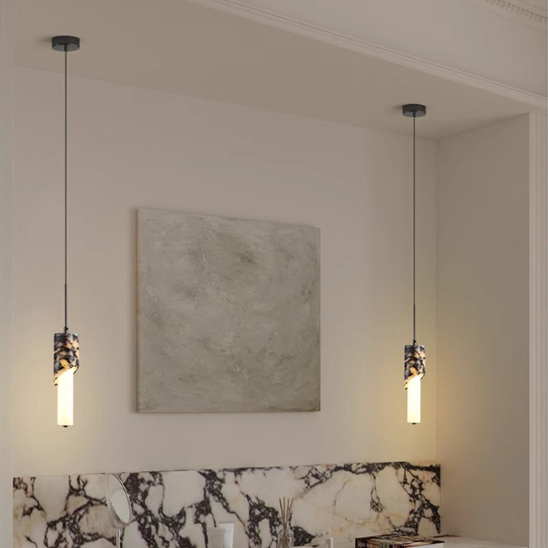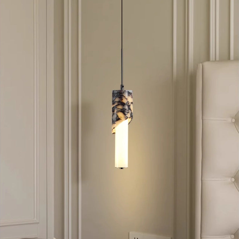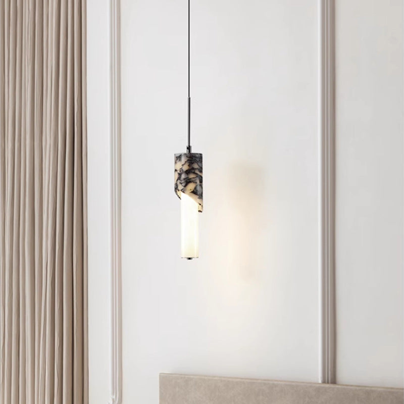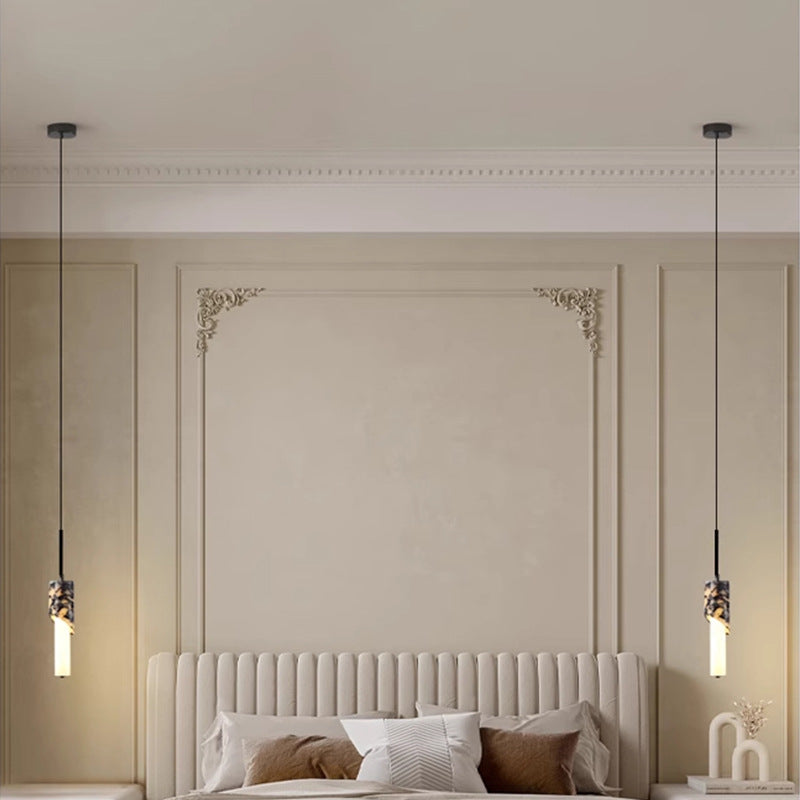 مصباح LED حديث فاخر على شكل عمود معدني من الرخام والزجاج لغرفة النوم