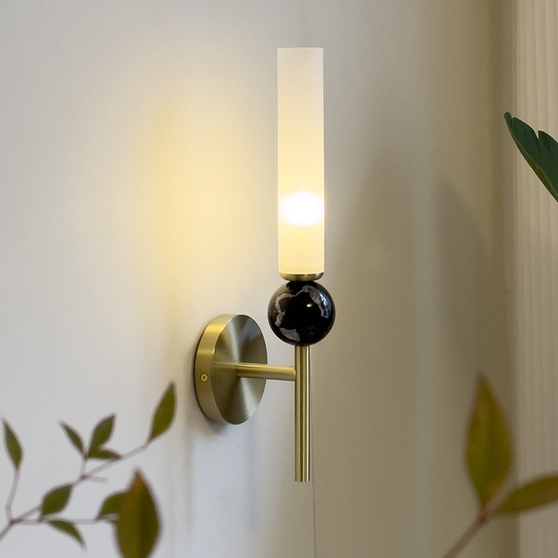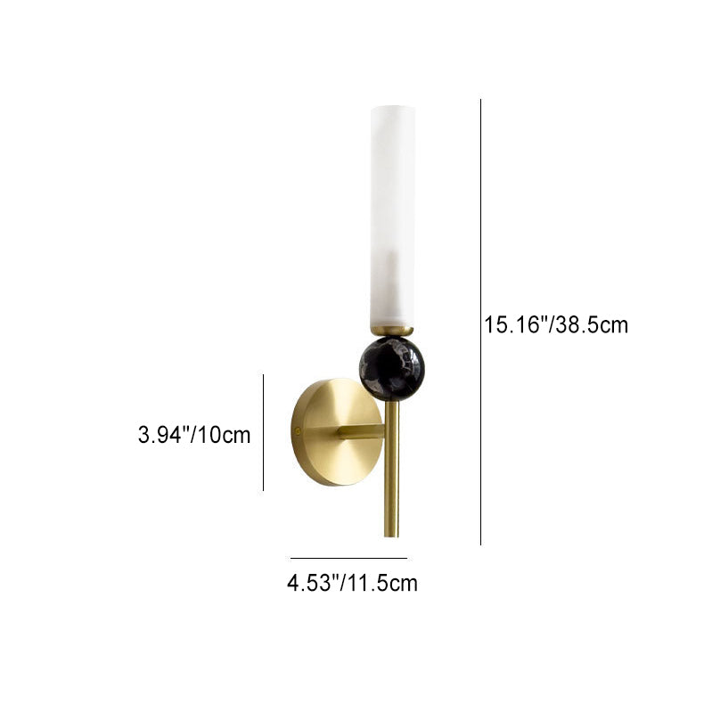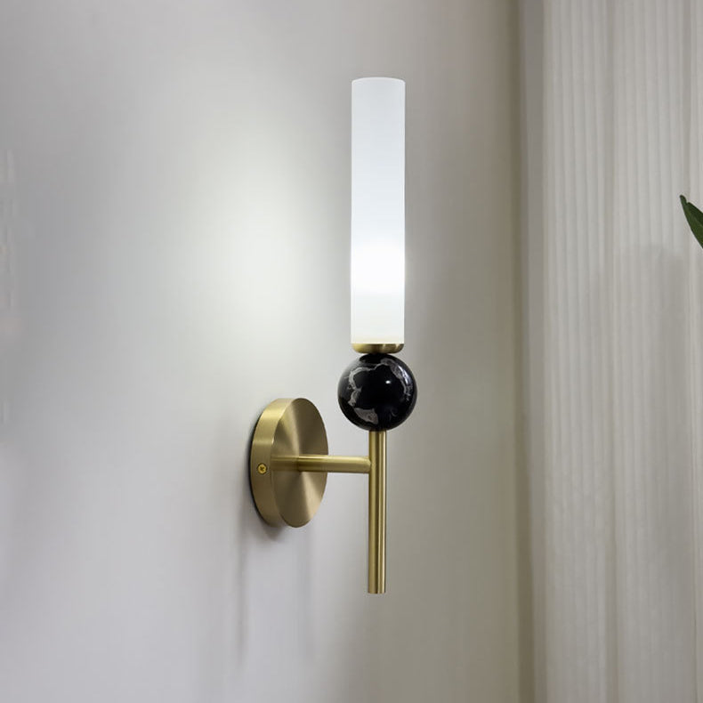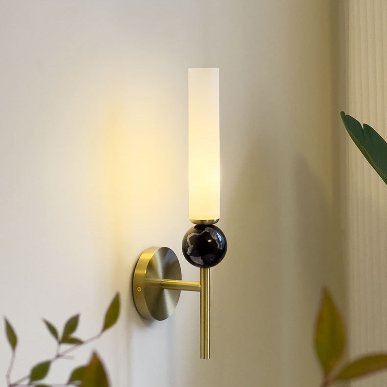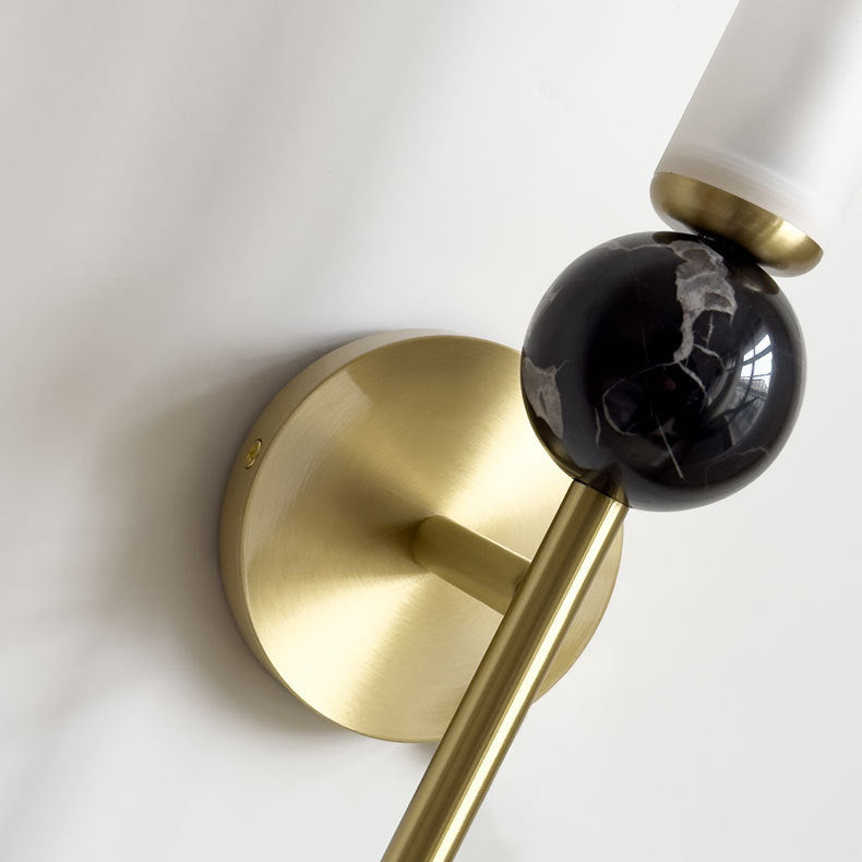 مصباح حائطي فاخر حديث من النحاس والرخام وشريط طويل من الأكريليك مزود بظلال ومصباح واحد بجانب السرير
