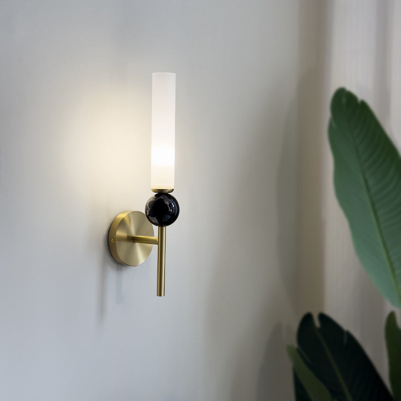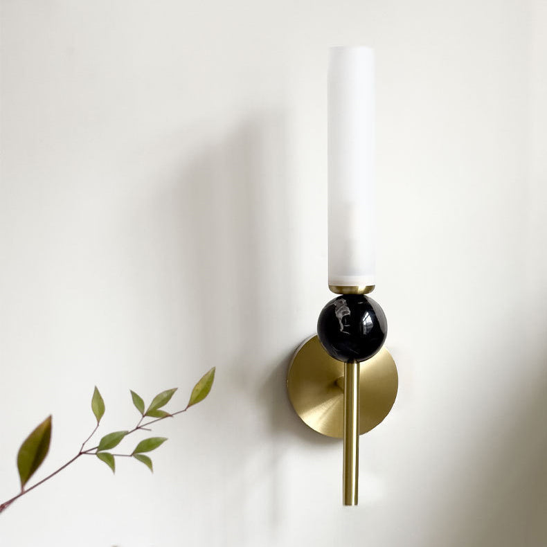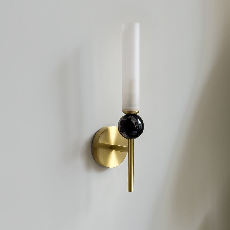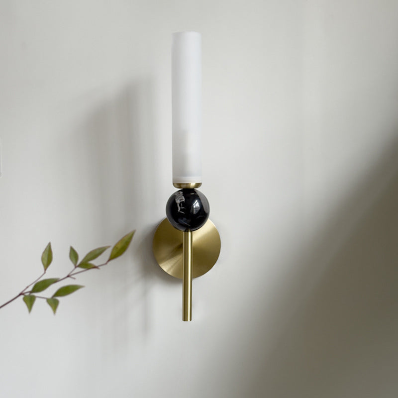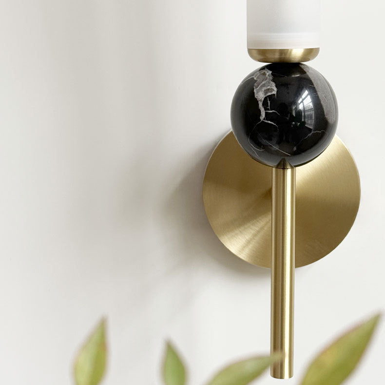 مصباح حائطي فاخر حديث من النحاس والرخام وشريط طويل من الأكريليك مزود بظلال ومصباح واحد بجانب السرير