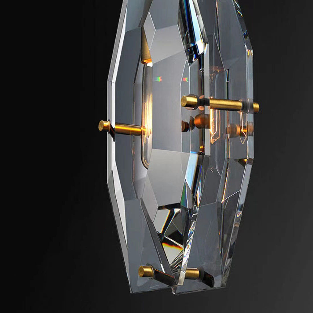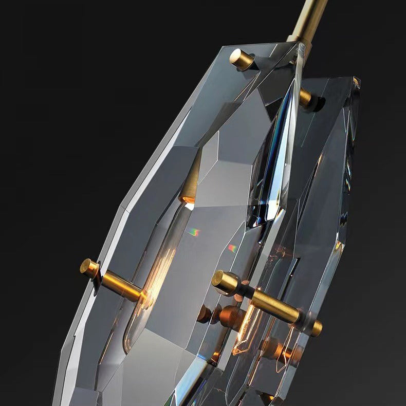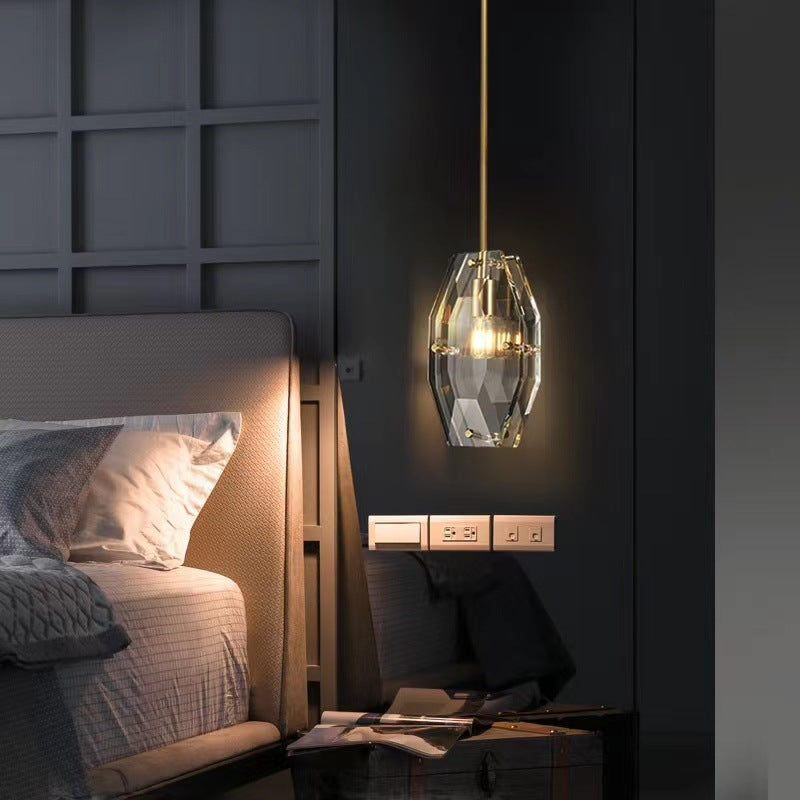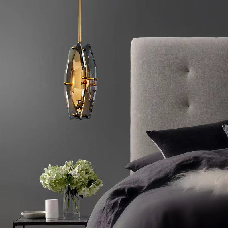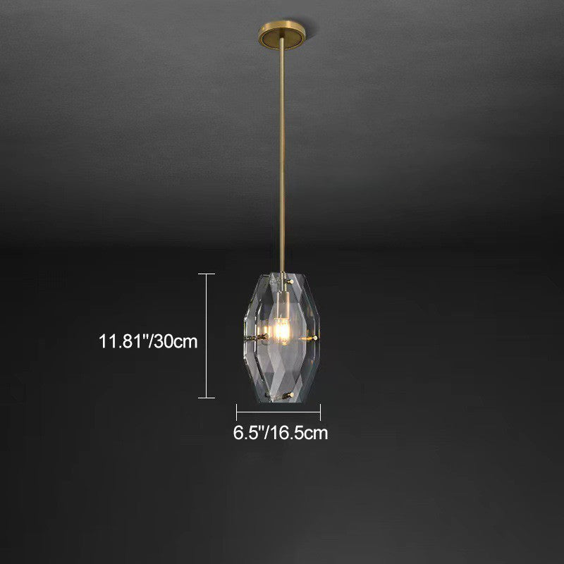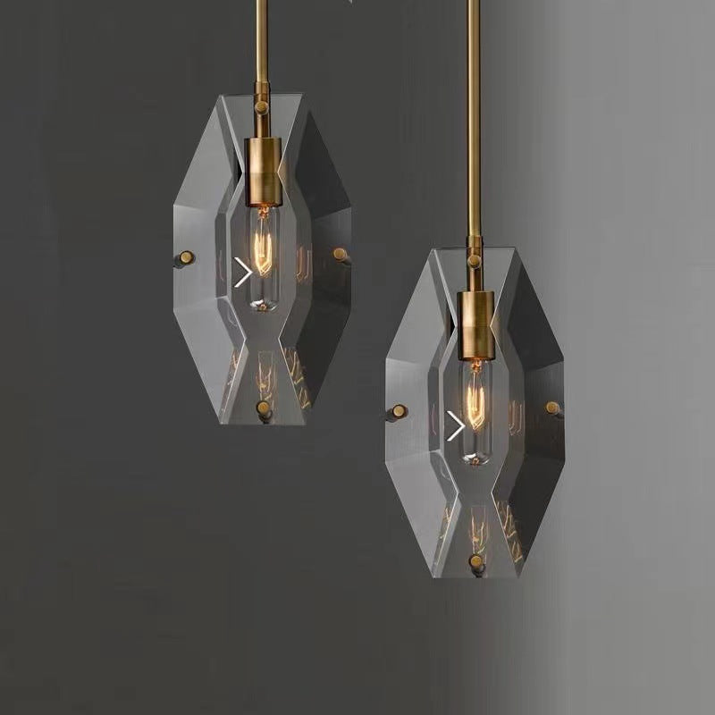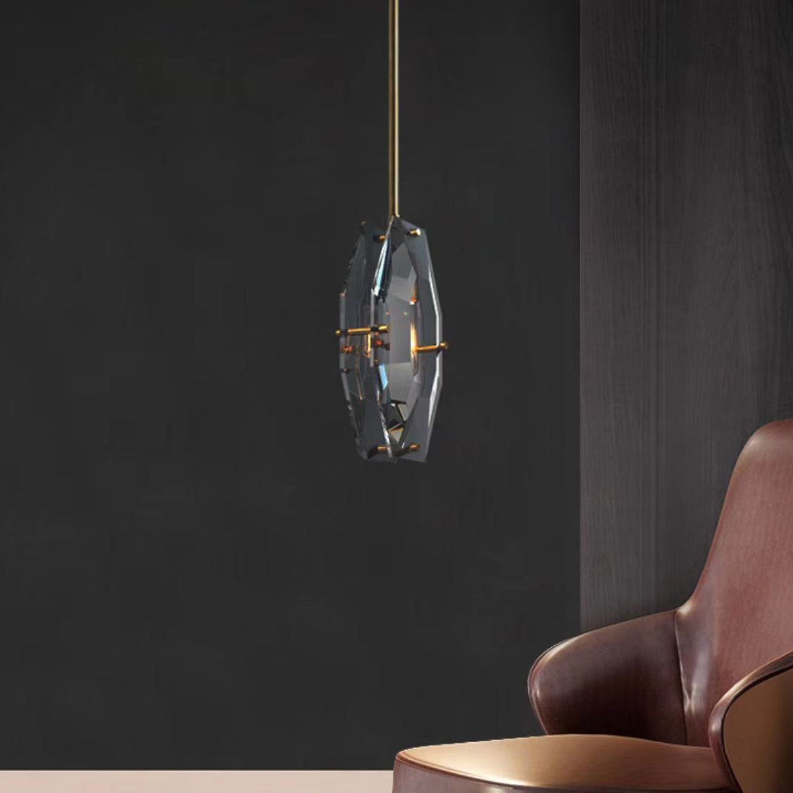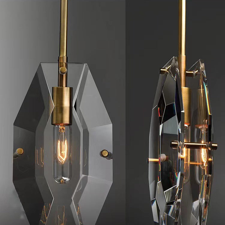 مصباح معلق هندسي حديث فاخر من الكريستال والنحاس، مزود بمصباح واحد، مناسب لغرفة النوم وغرفة المعيشة وغرفة الطعام