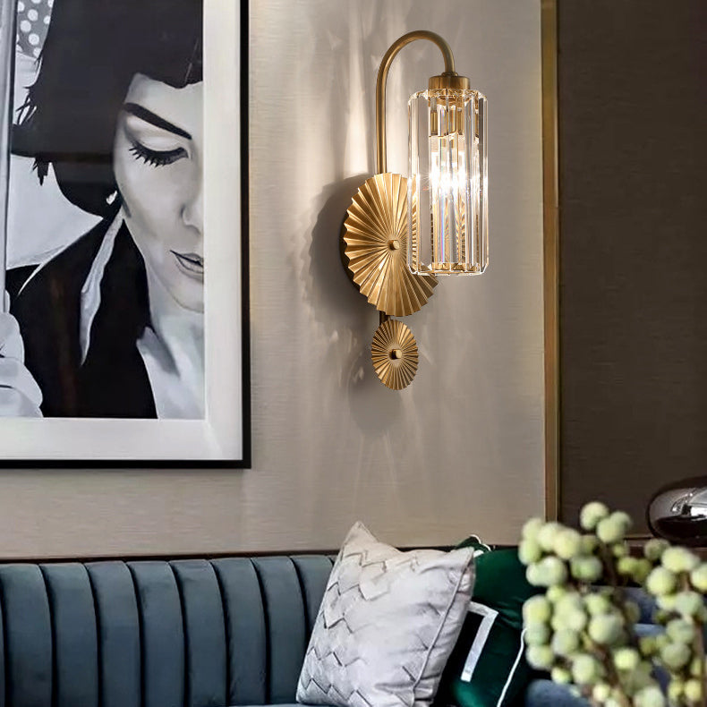 مصباح حائطي حديث فاخر بقاعدة دائرية من الكريستال وإضاءة واحدة