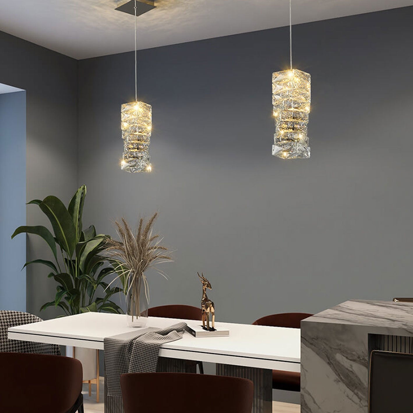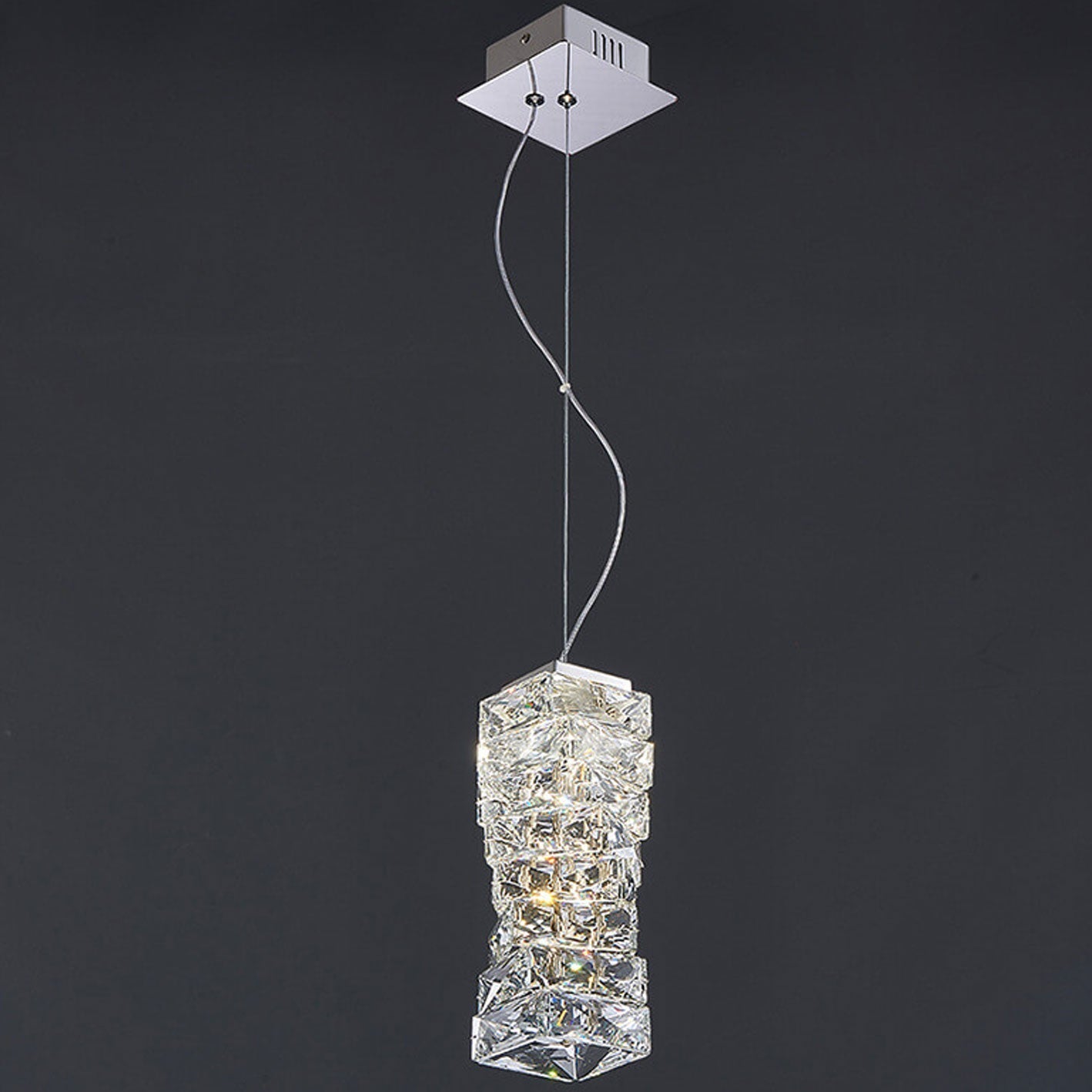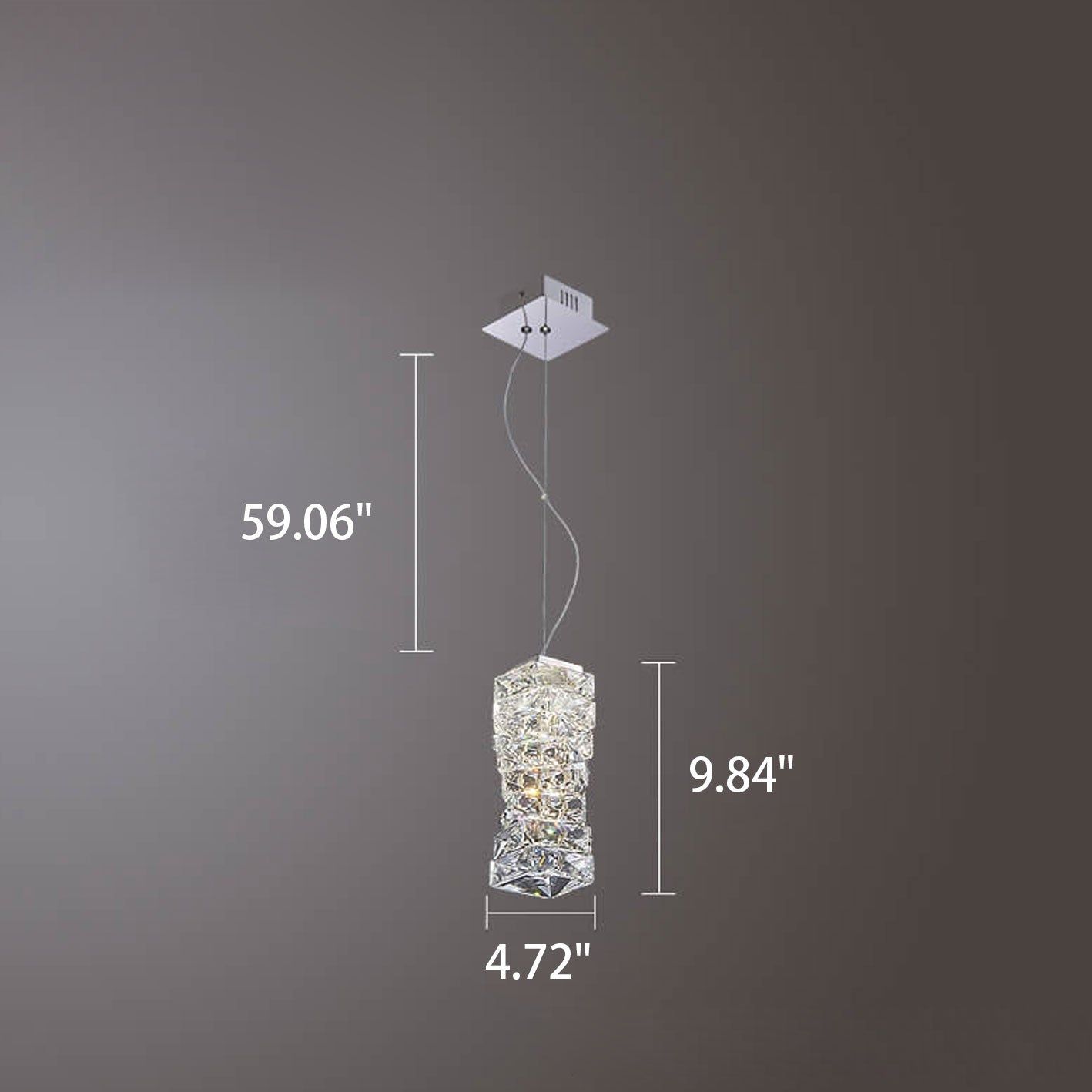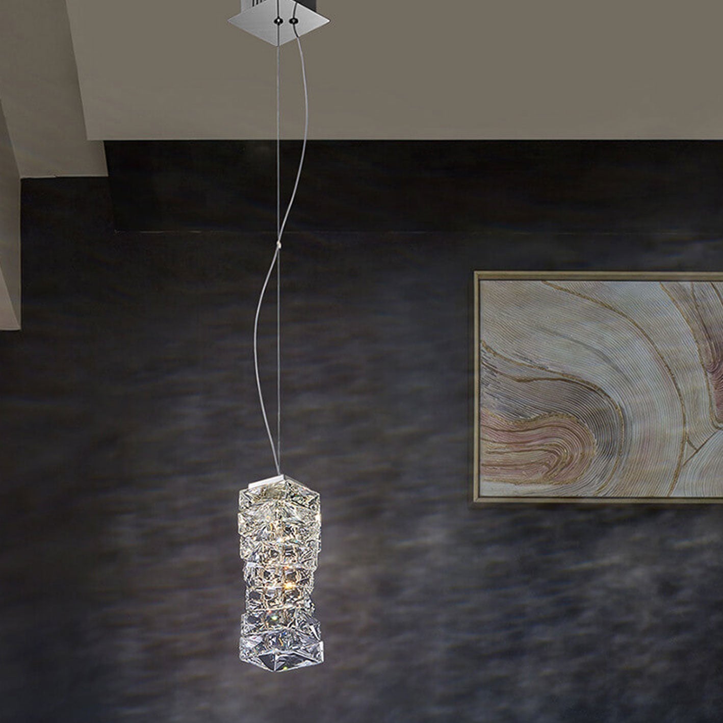 مصباح معلق LED من الفولاذ المقاوم للصدأ على شكل عمود كريستالي فاخر وحديث
