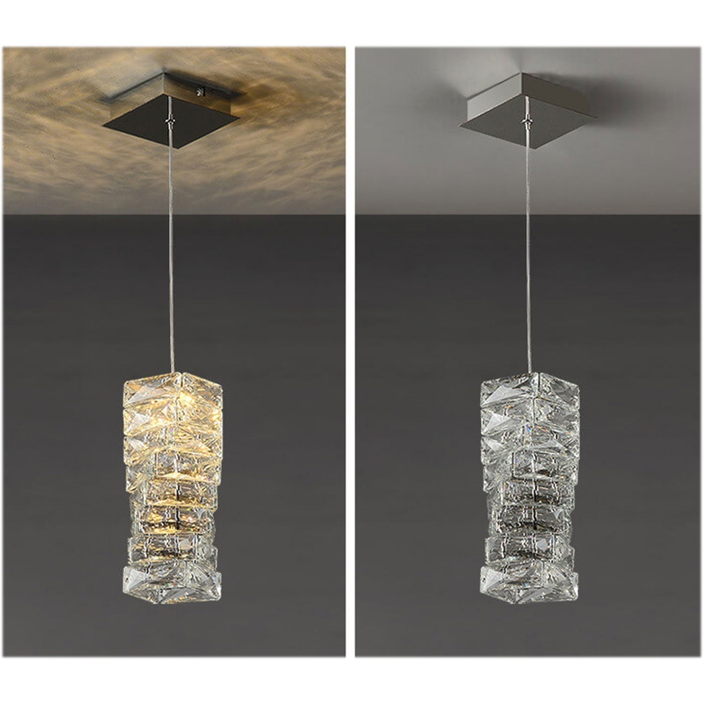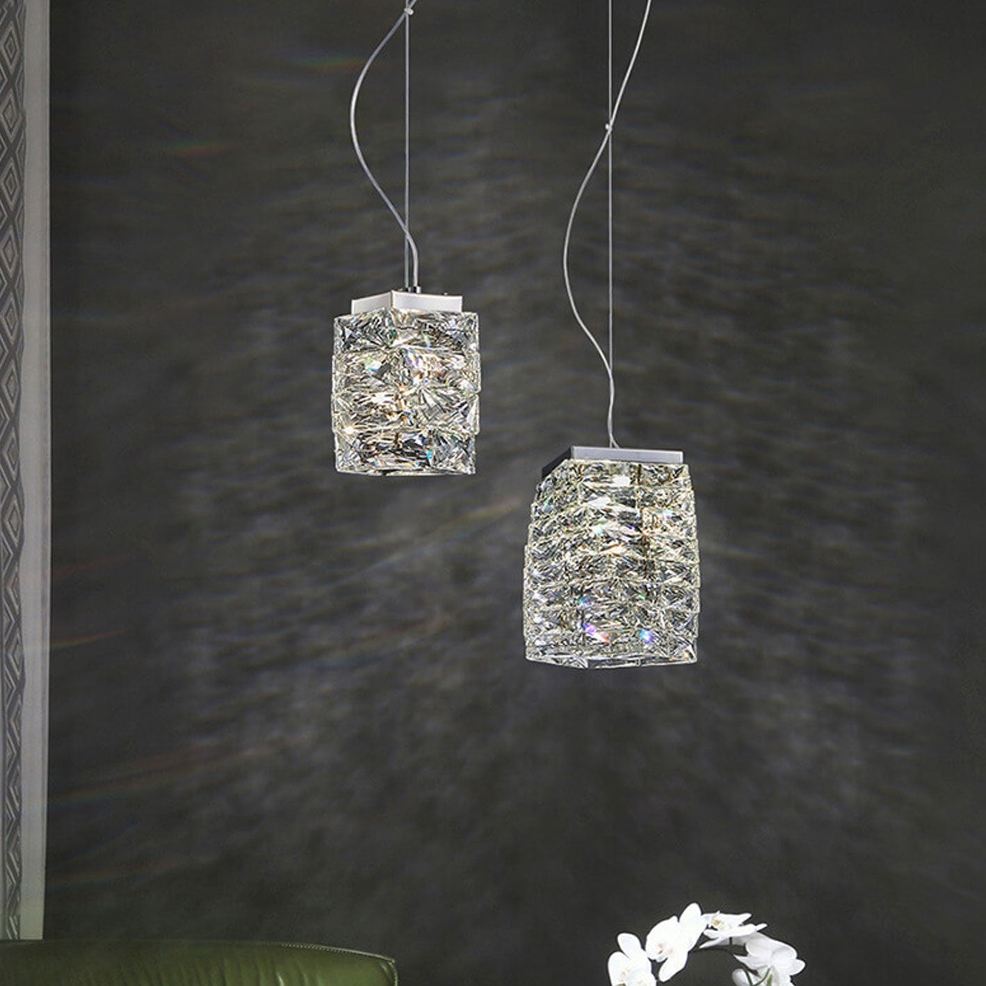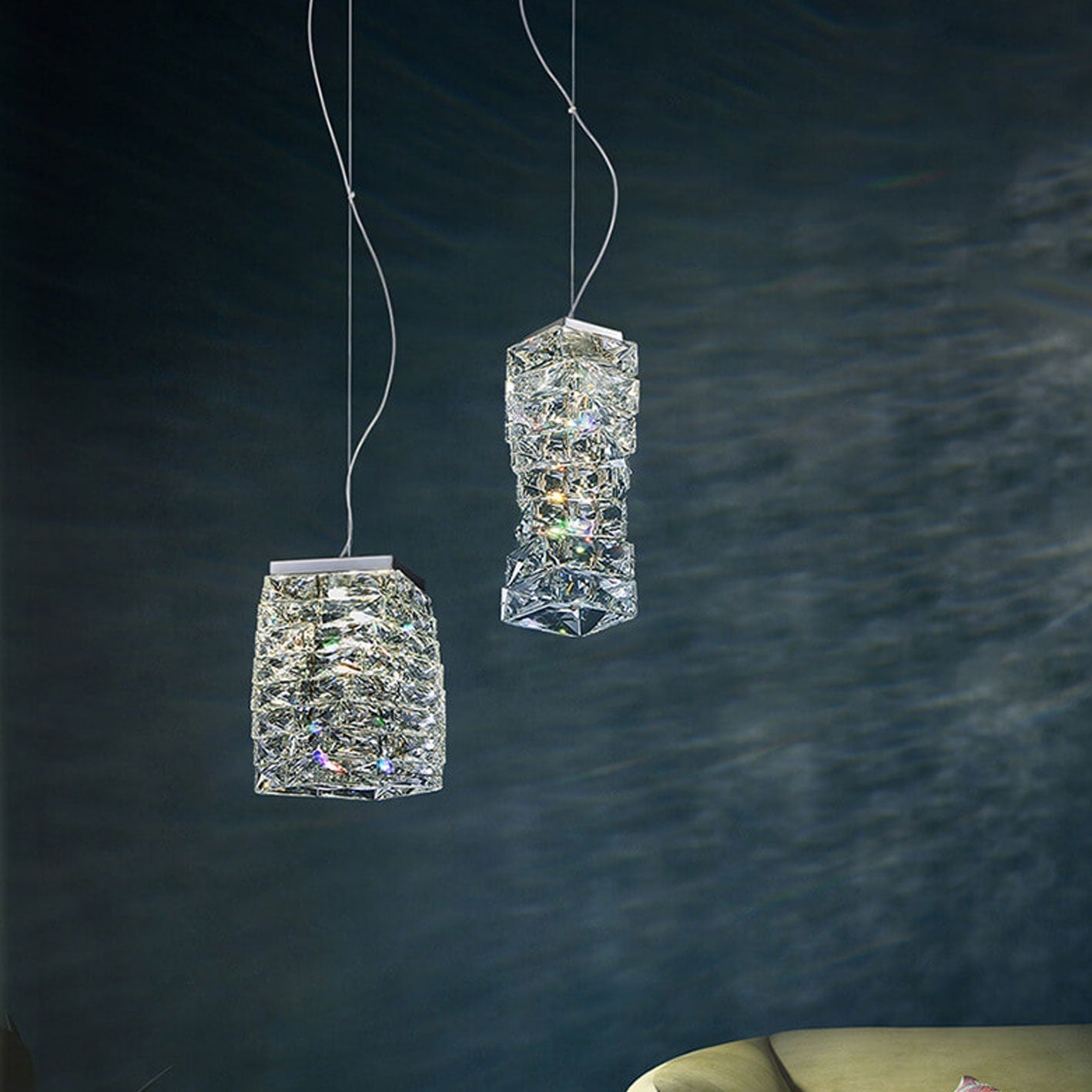 مصباح معلق LED من الفولاذ المقاوم للصدأ على شكل عمود كريستالي فاخر وحديث