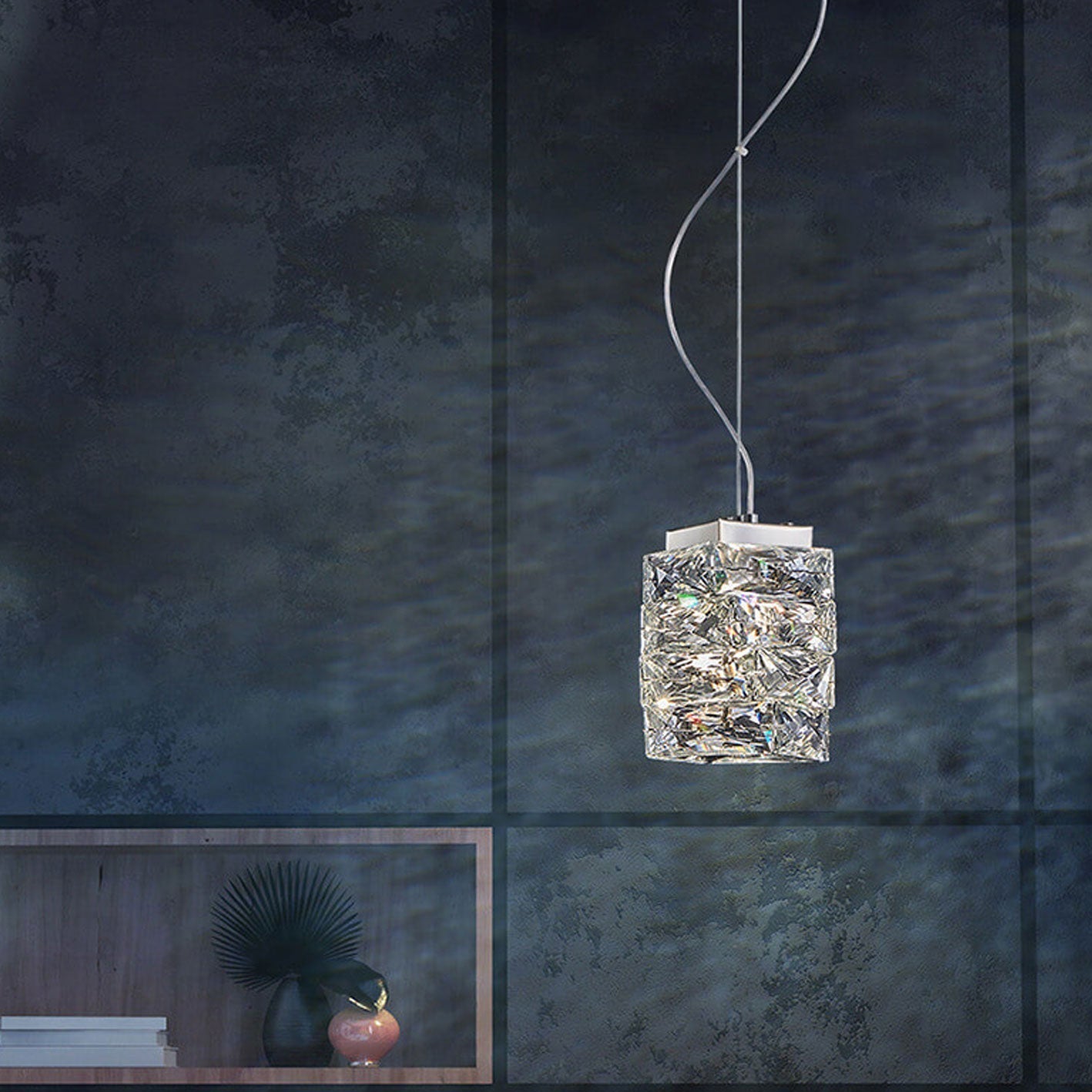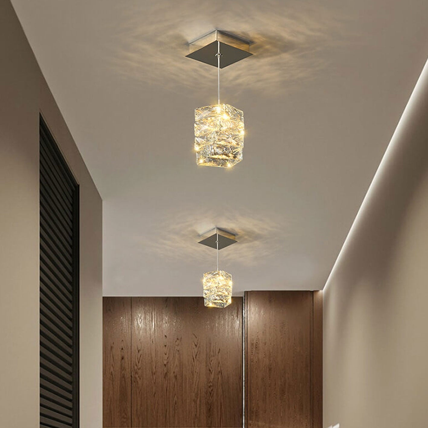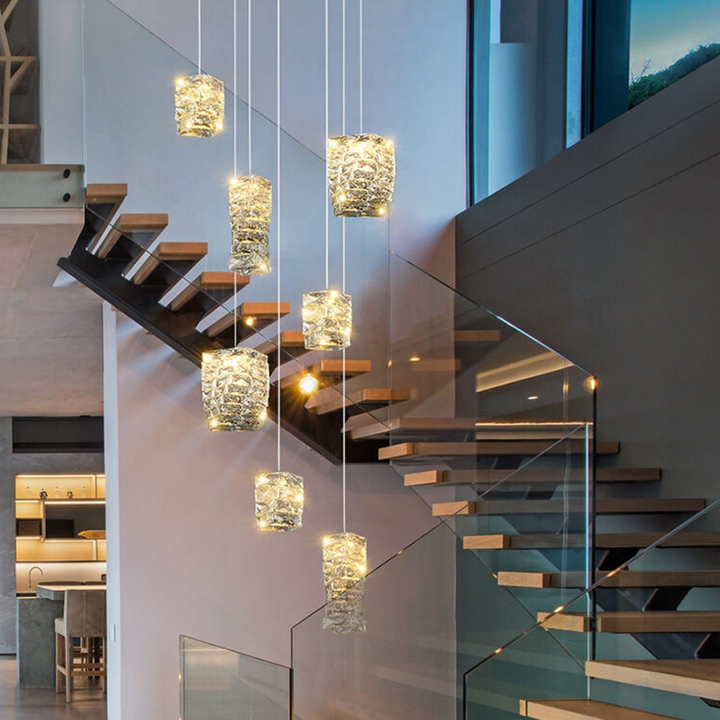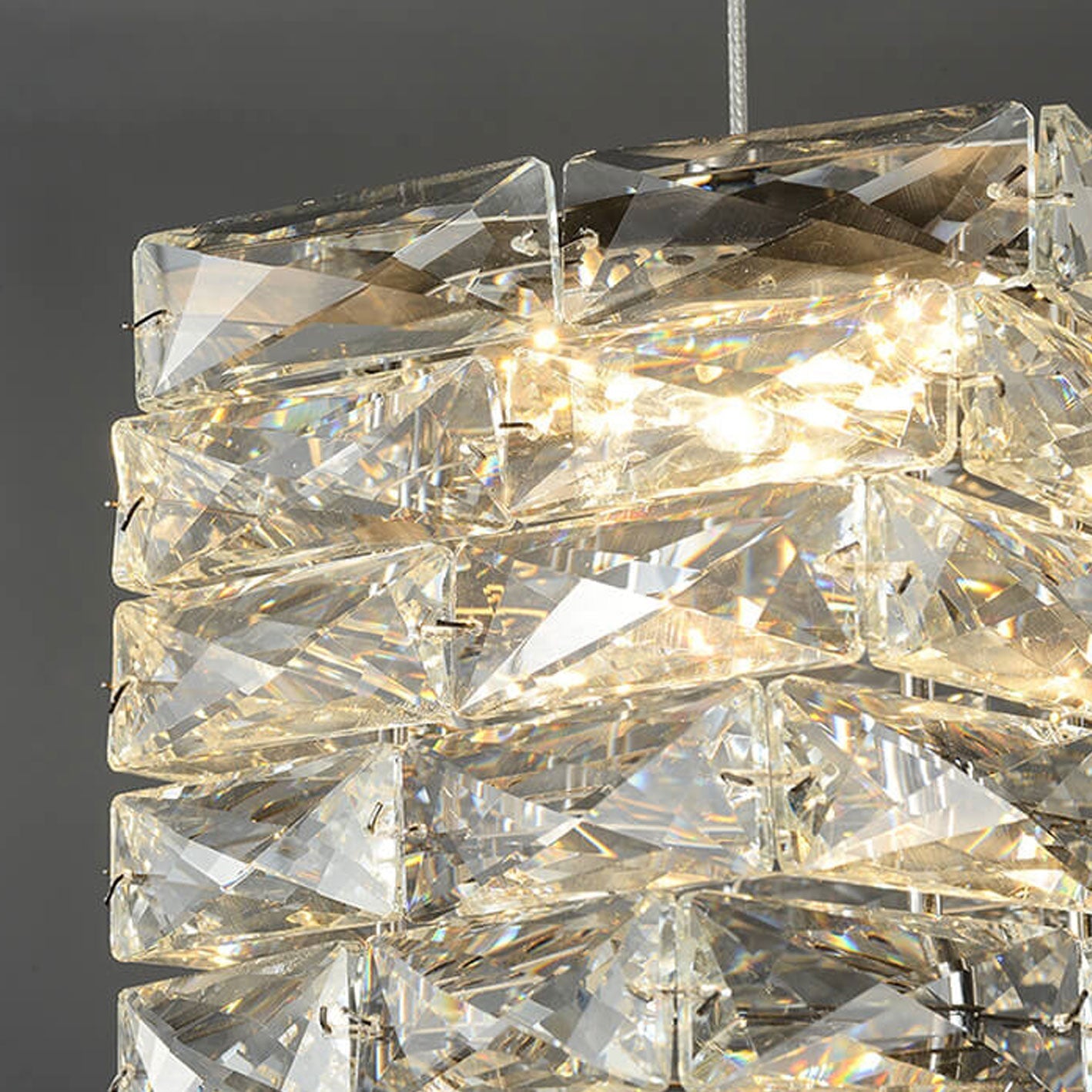 مصباح معلق LED من الفولاذ المقاوم للصدأ على شكل عمود كريستالي فاخر وحديث