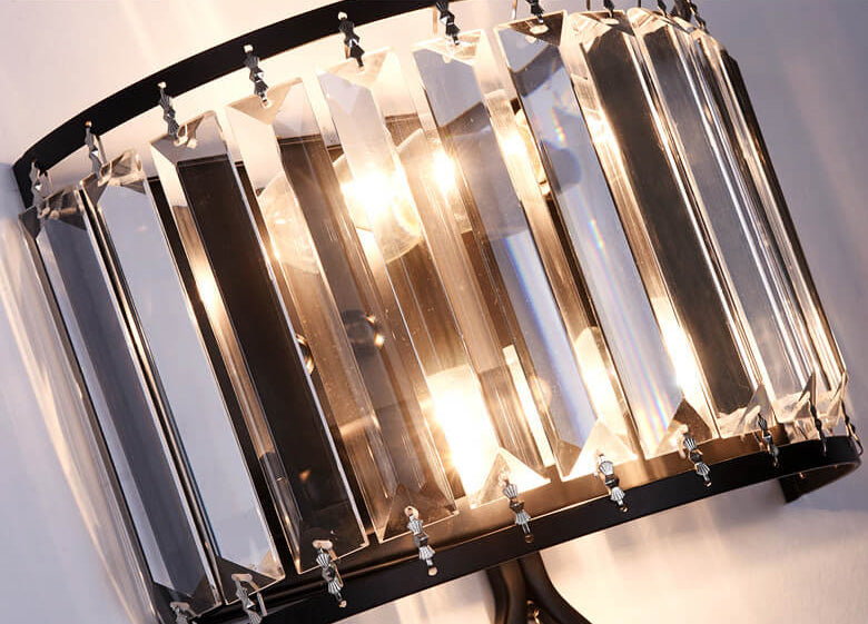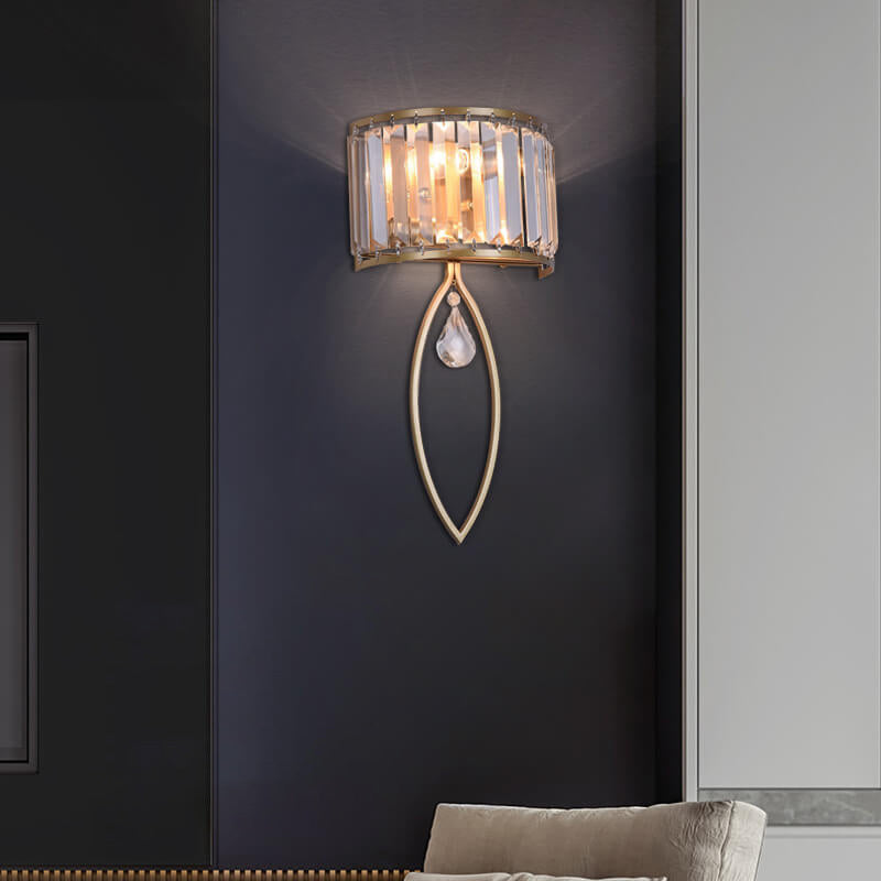 مصباح حائطي حديث فاخر من الكريستال على شكل نصف عمود بيضاوي الشكل مزود بمصباحين