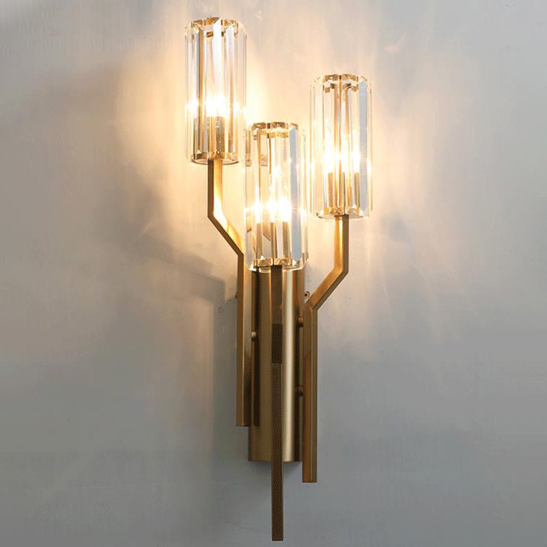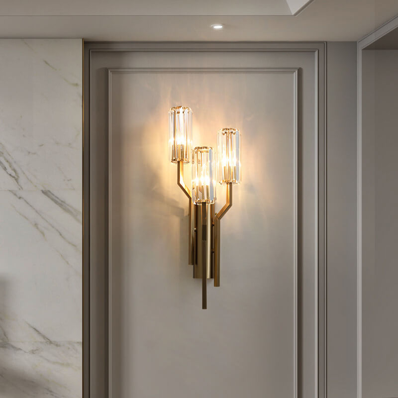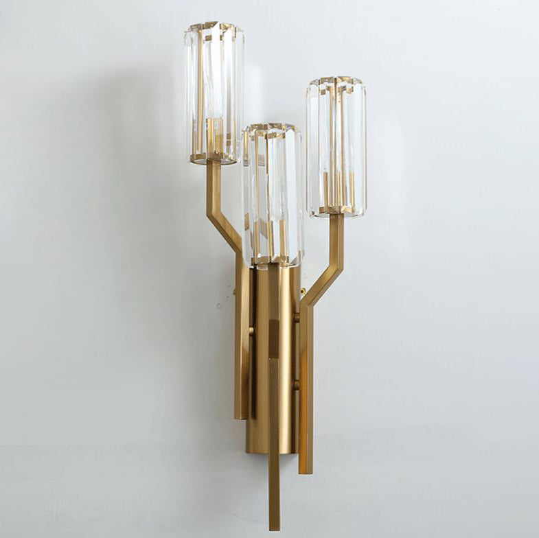 مصباح حائطي أسطواني فاخر حديث من الكريستال بثلاثة مصابيح لغرفة المعيشة