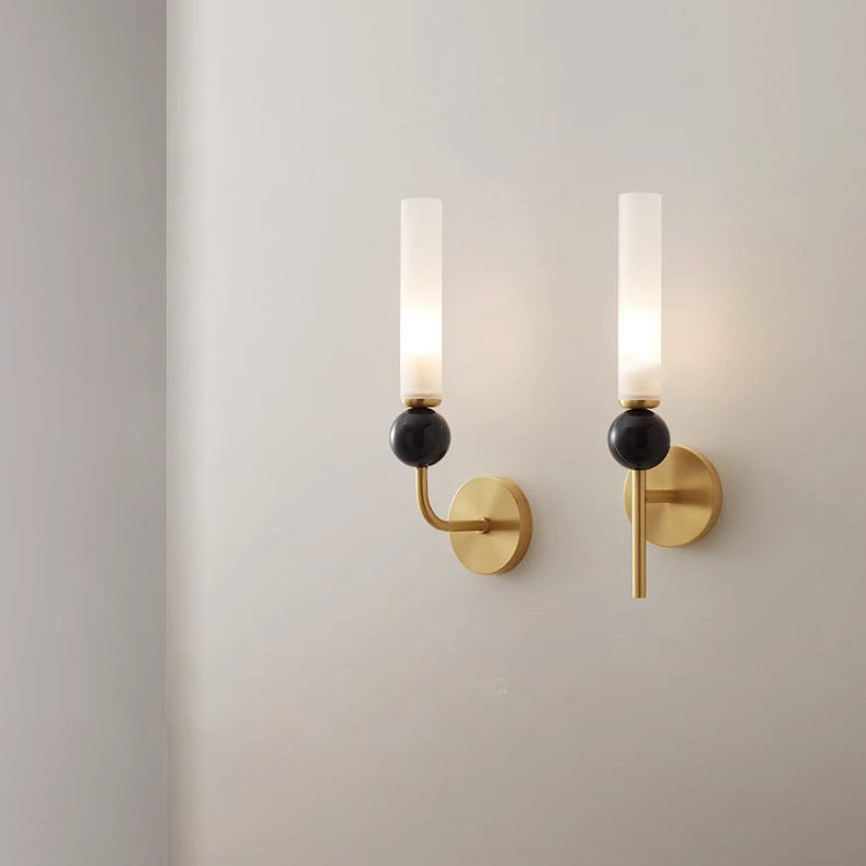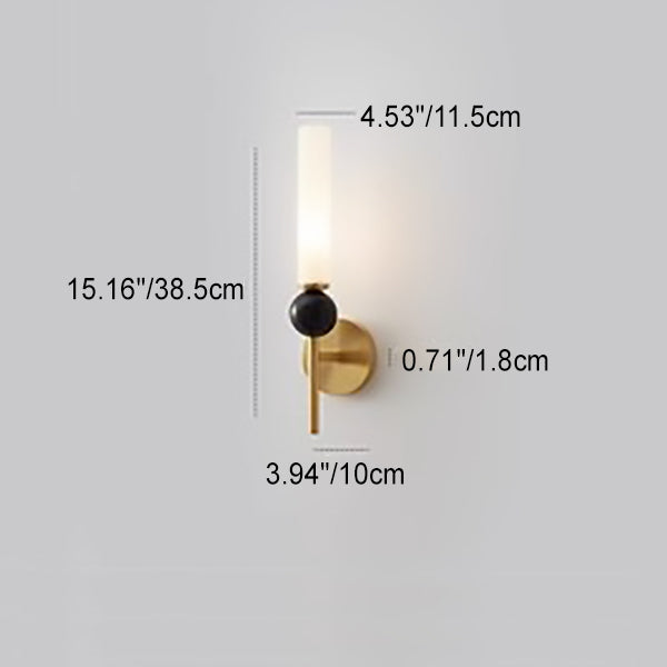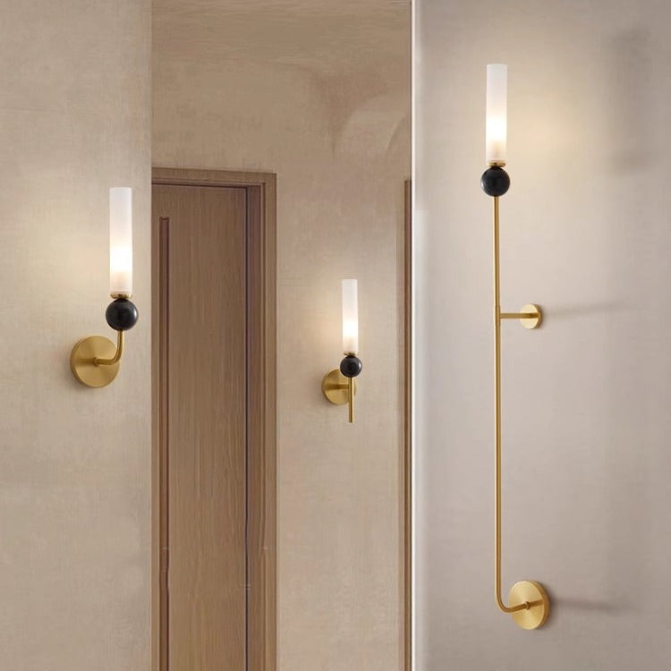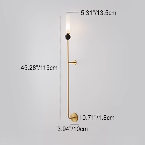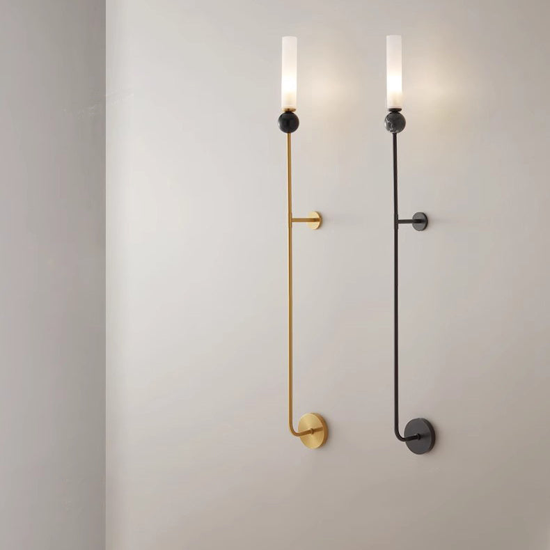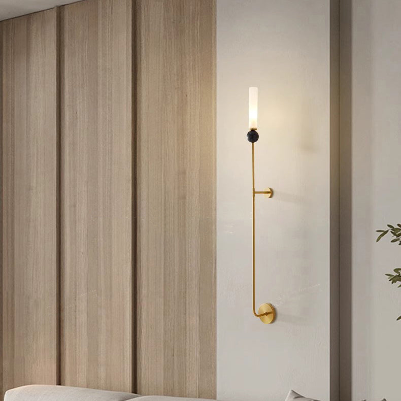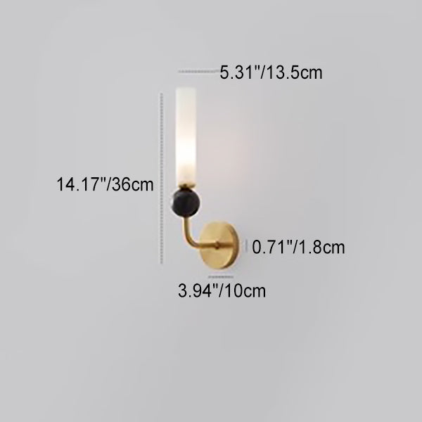 مصباح حائط أسطواني فاخر حديث طويل من النحاس والرخام بإضاءة واحدة لغرفة المعيشة