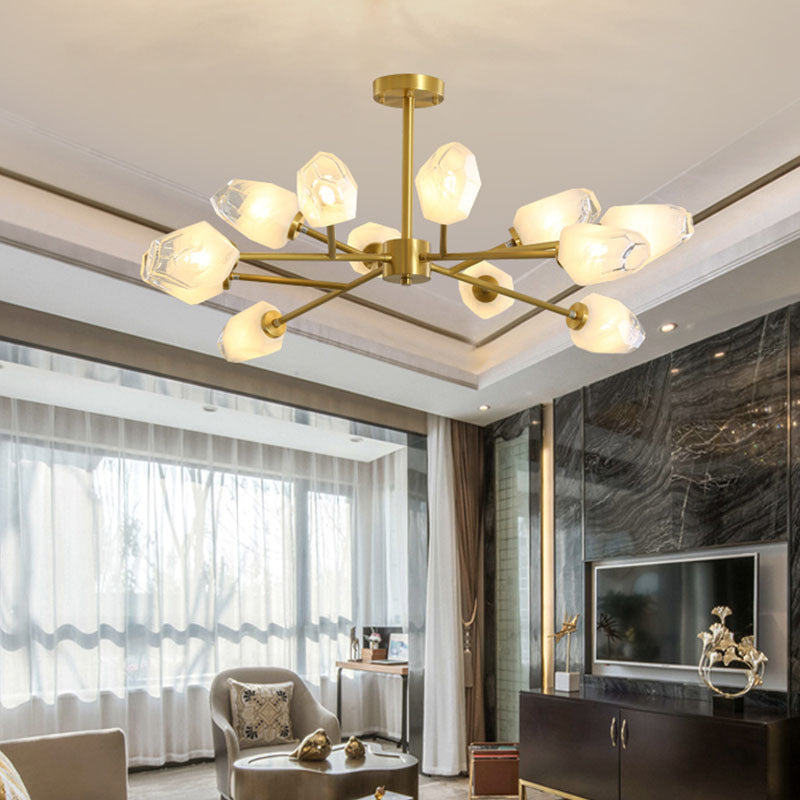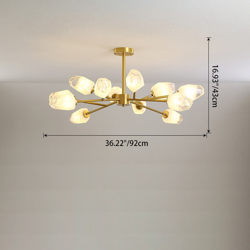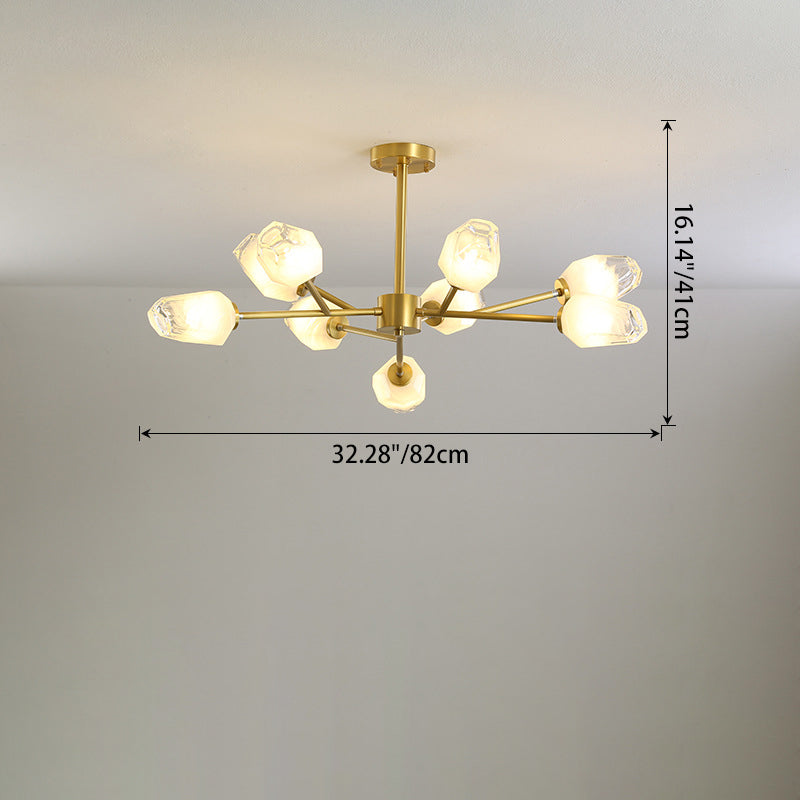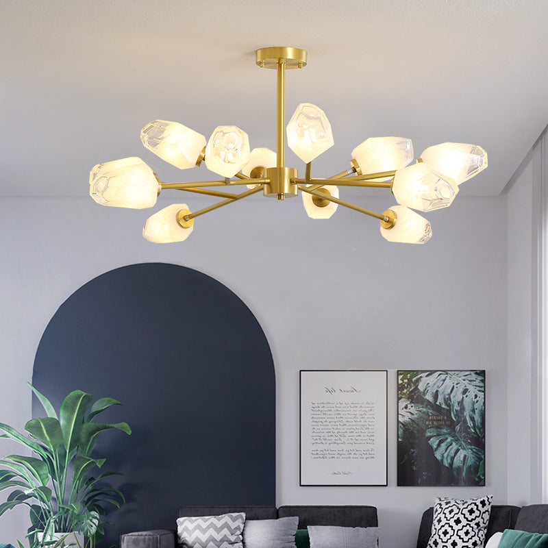 ثريا عصرية فاخرة على شكل ماسي من النحاس والزجاج 6/9/12/15/18 ضوء لغرفة المعيشة