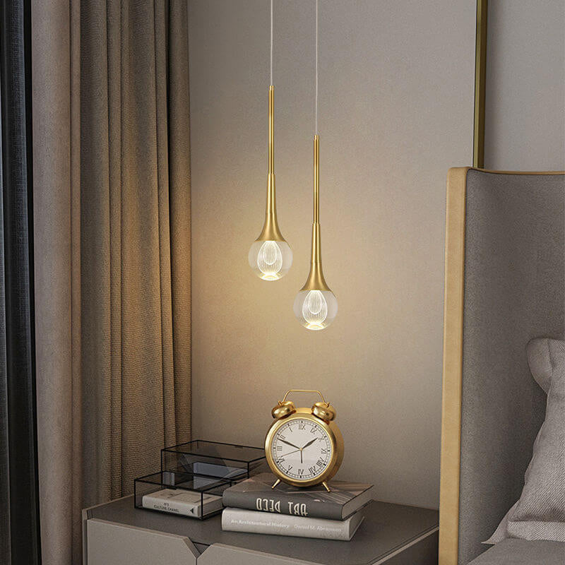 مصباح LED عصري فاخر على شكل دمعة من الزجاج والنحاس