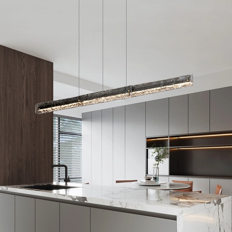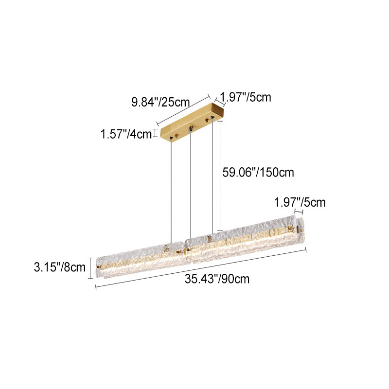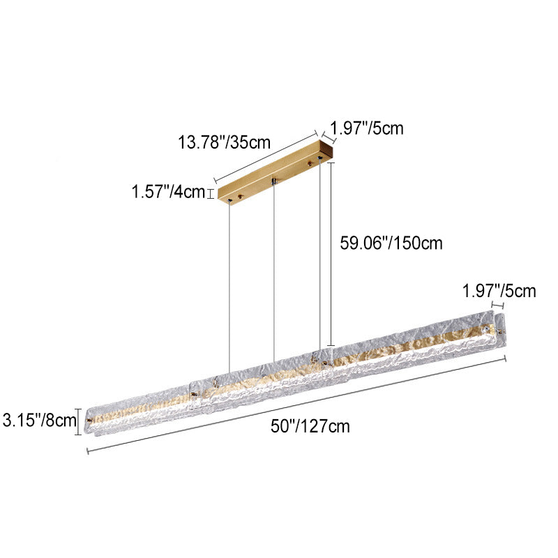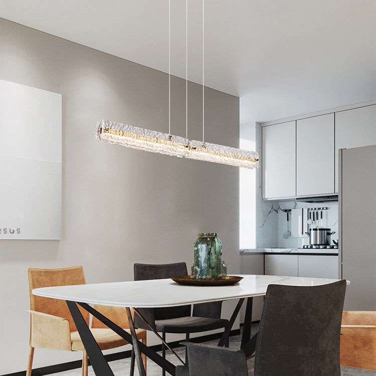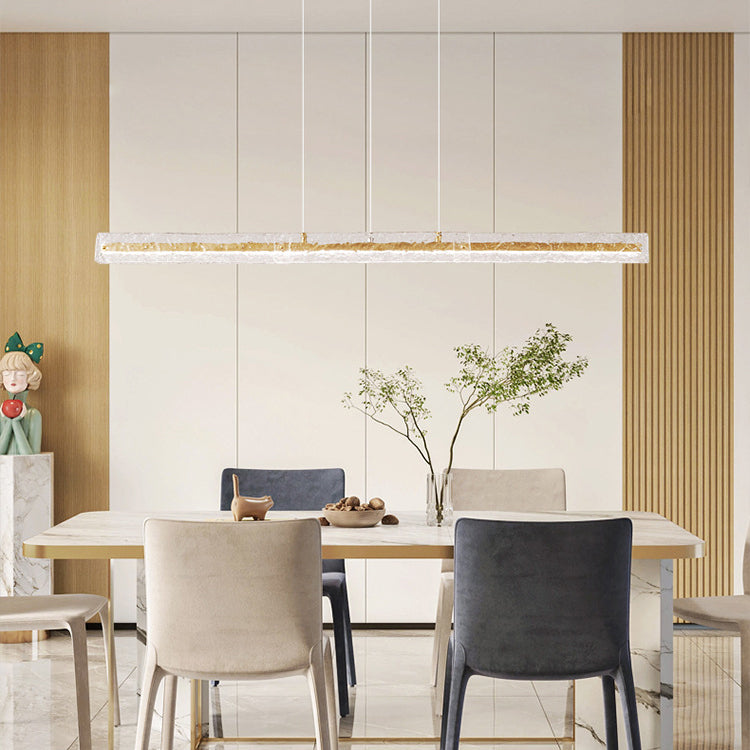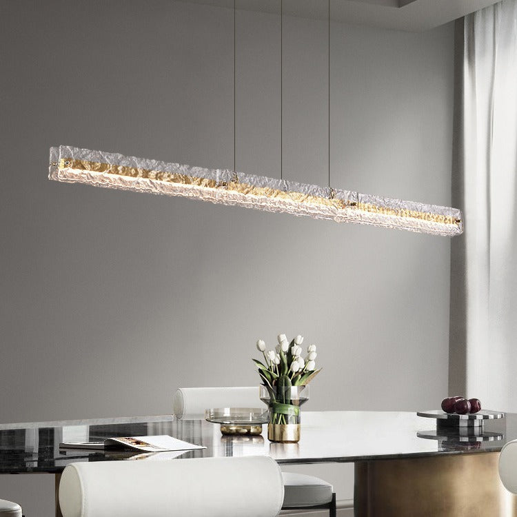 مصباح معلق LED زجاجي نحاسي مستطيل طويل فاخر عصري لغرفة الطعام