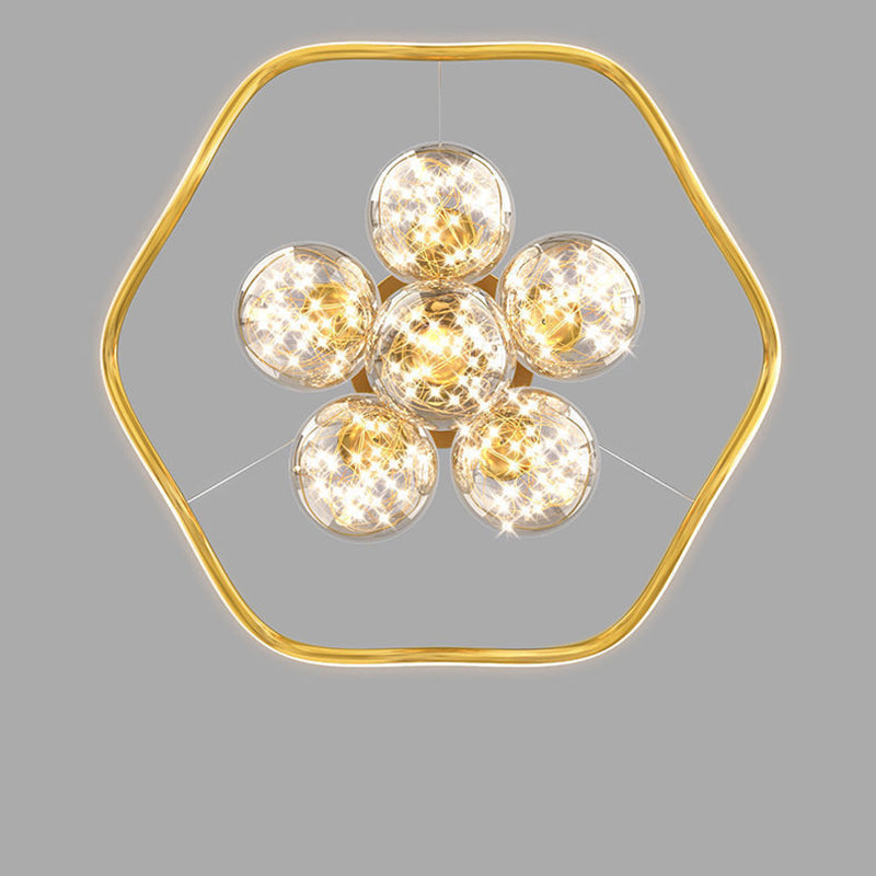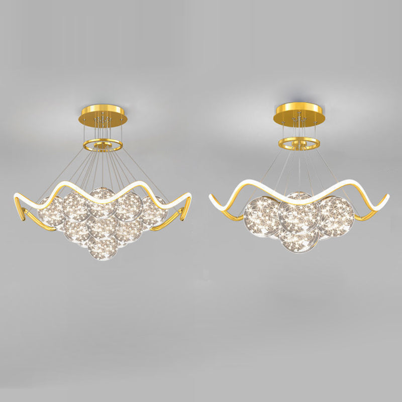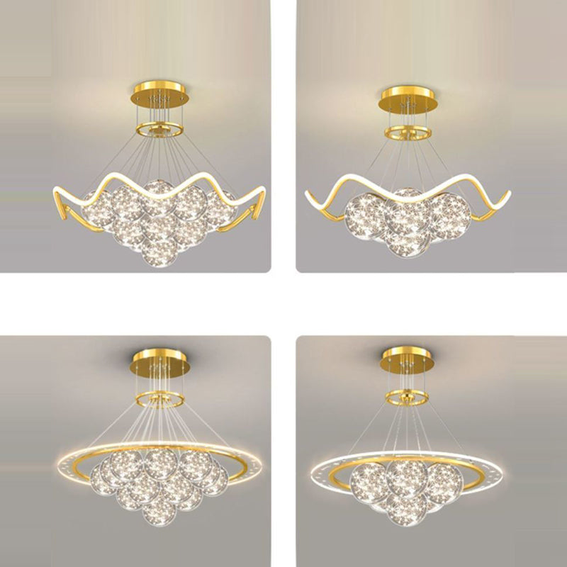 ثريات LED حديثة فاخرة من المعدن الأكريليك الزجاجي على شكل نجمة كاملة وموجة دائرية لغرفة المعيشة