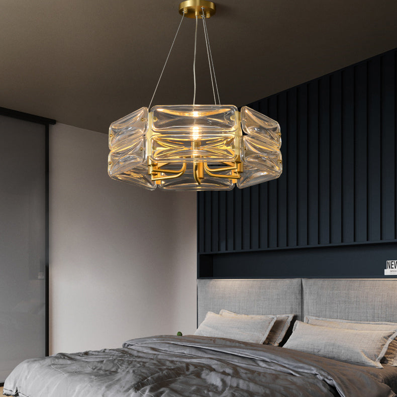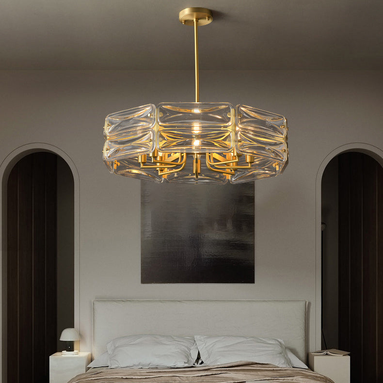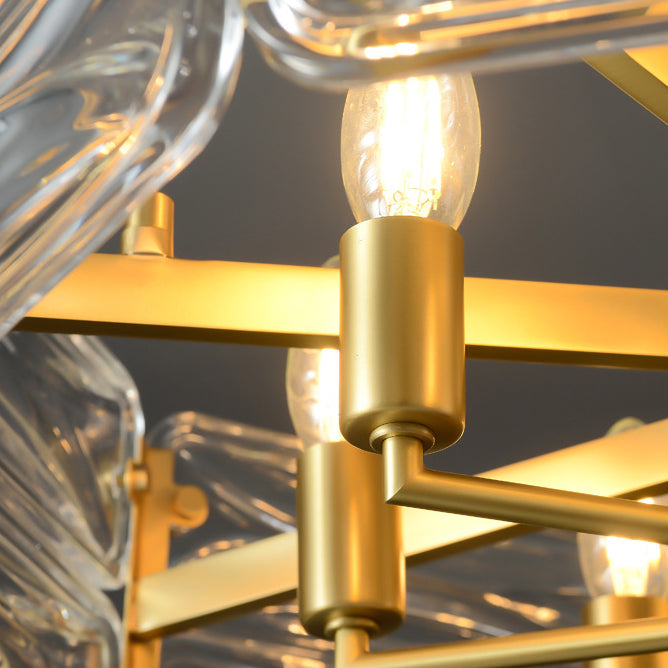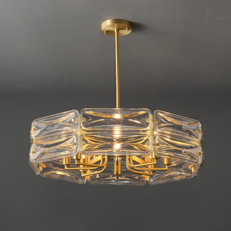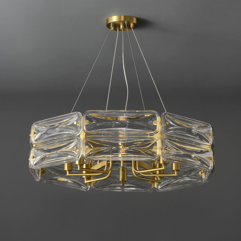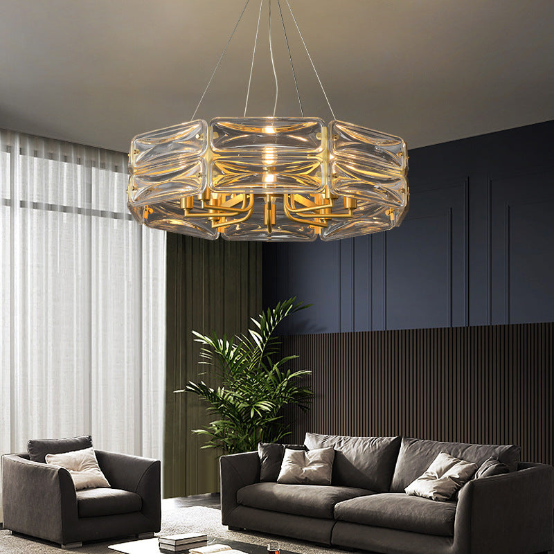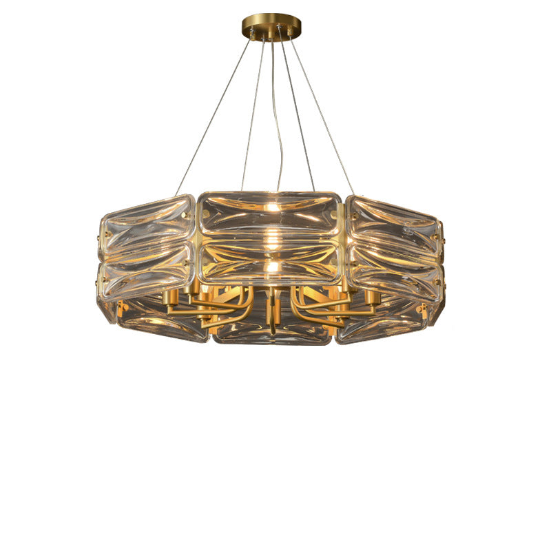 ثريا زجاجية نحاسية متعددة الأضلاع فاخرة حديثة مكونة من 6/8/10 مصابيح لغرفة المعيشة