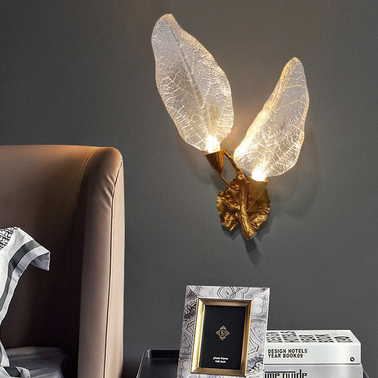 مصباح حائط LED على شكل فرع نحاسي عتيق على شكل ورقة شجر راتنجية فاخرة حديثة لغرفة المعيشة