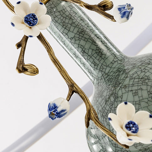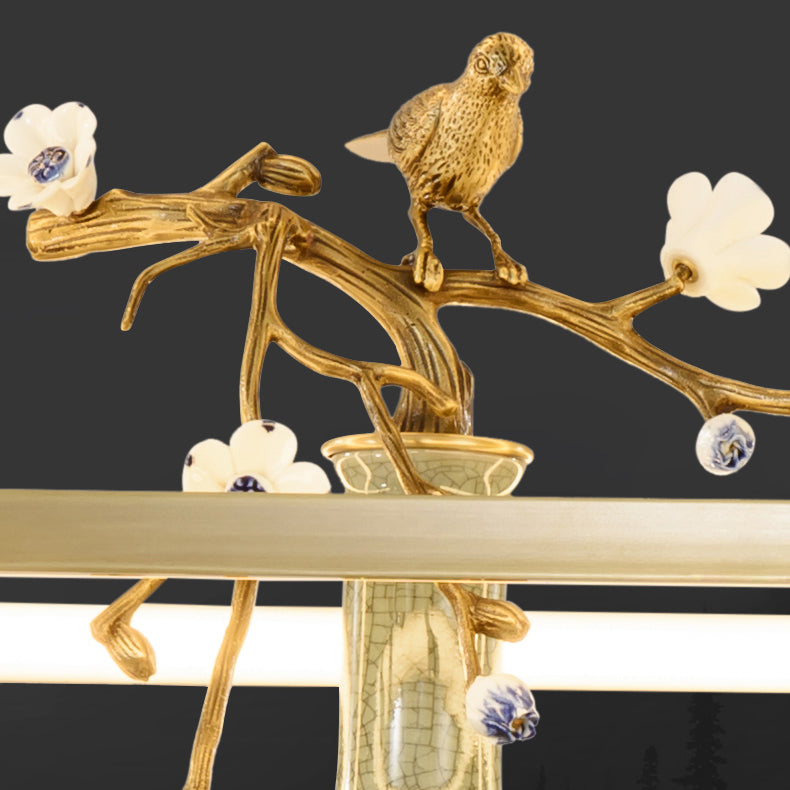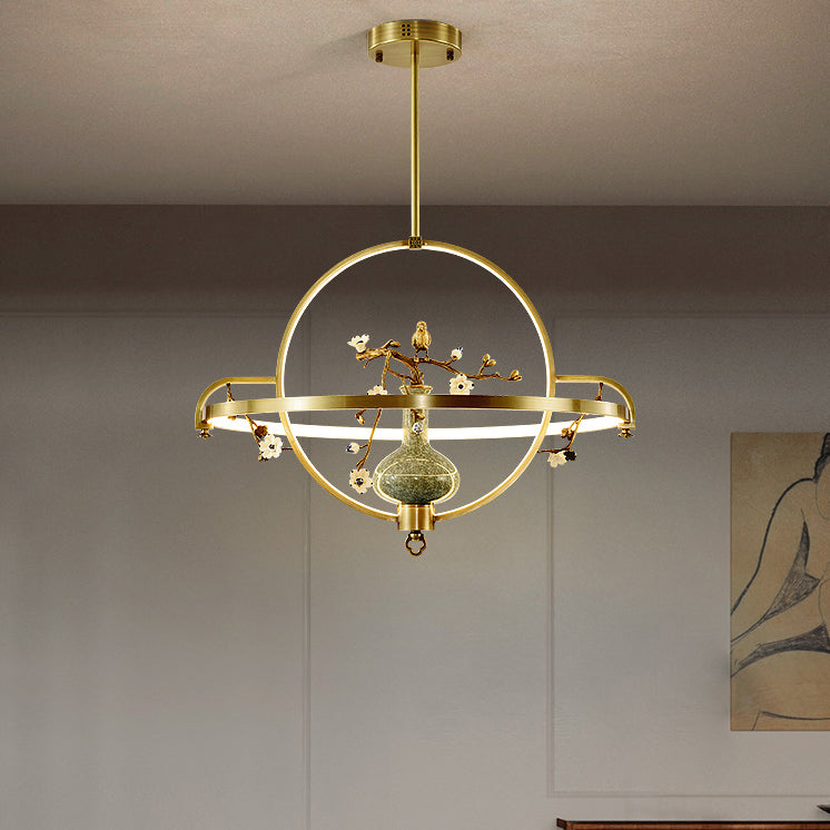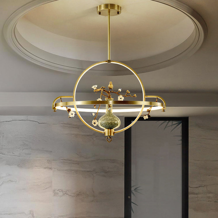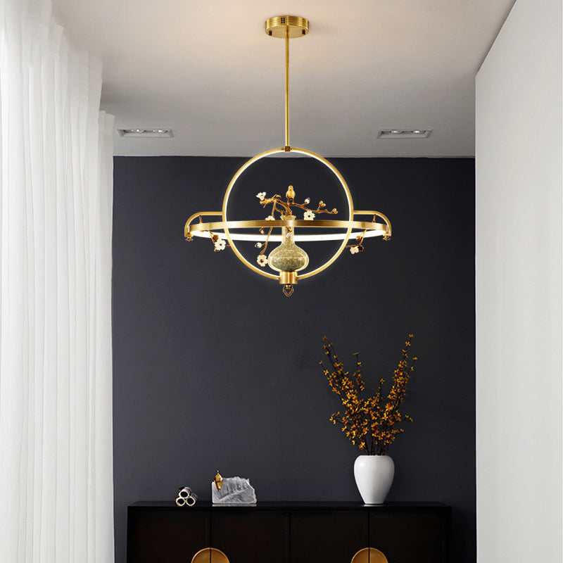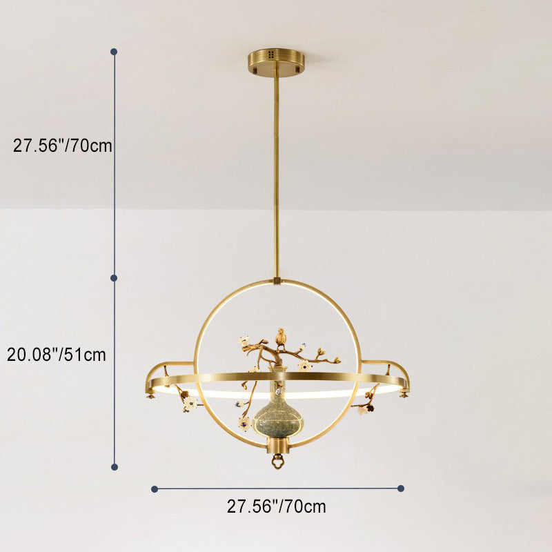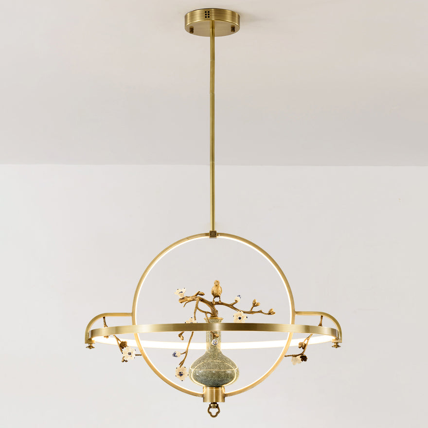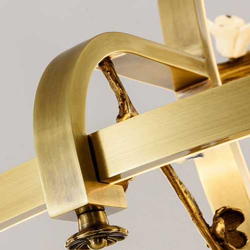 ثريا LED دائرية فاخرة حديثة من النحاس والسيراميك بتصميم زهرة البرقوق لغرفة الطعام