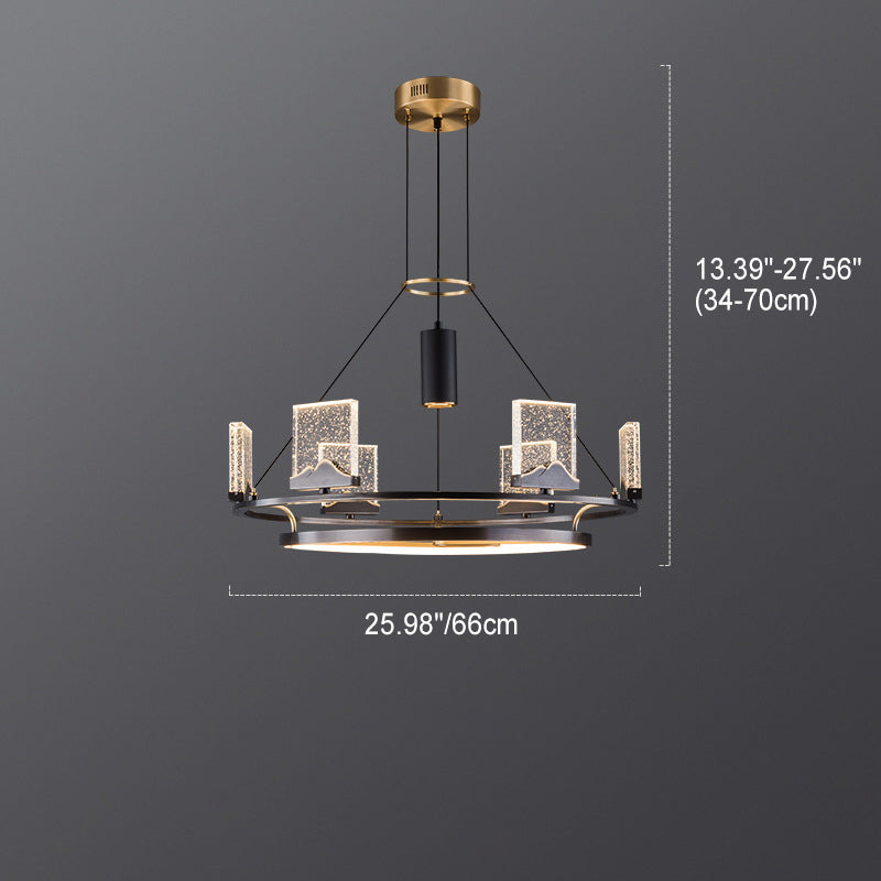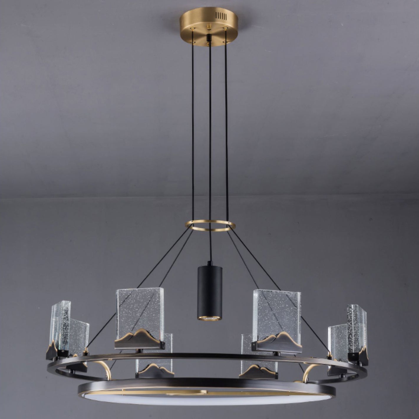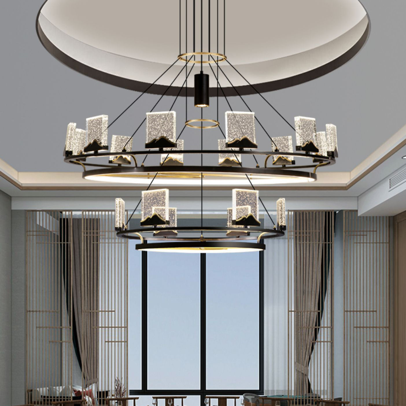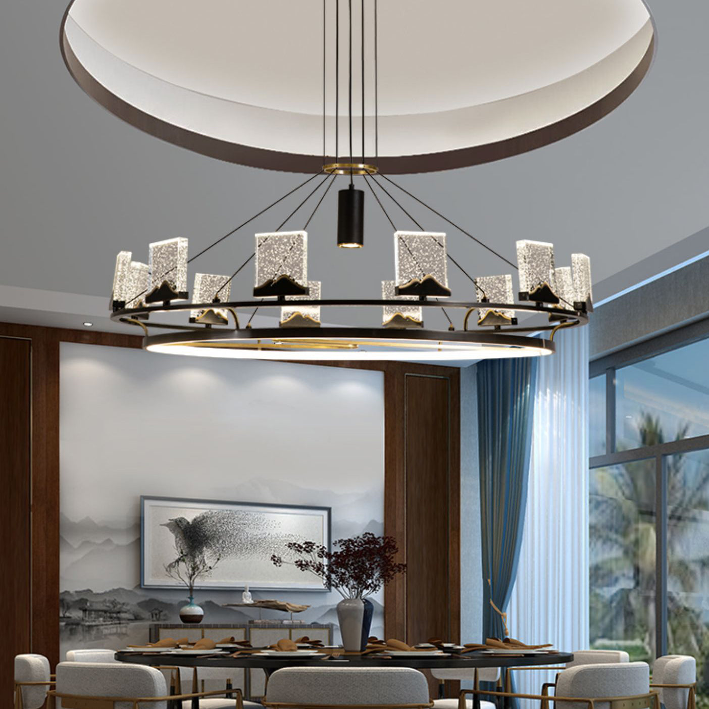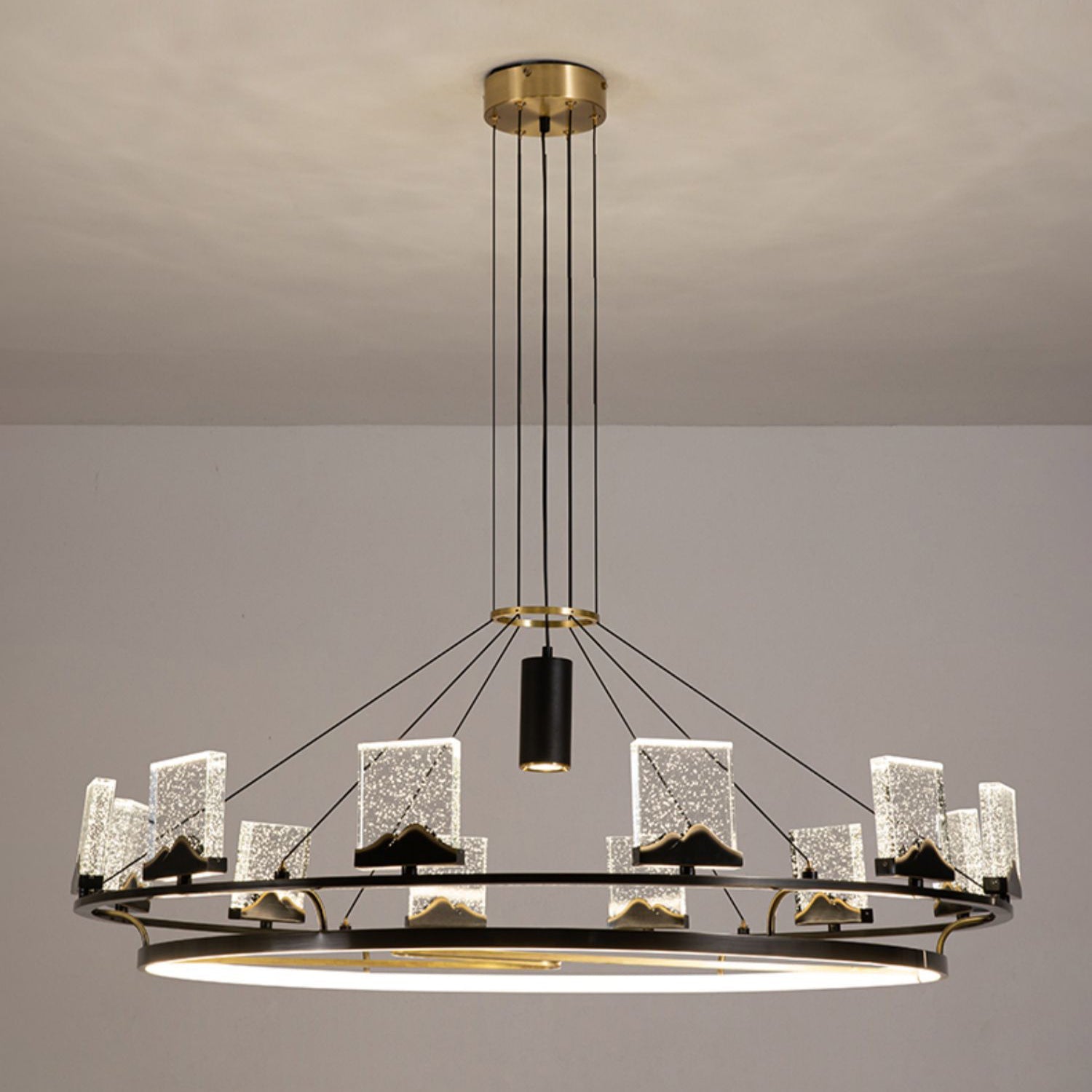 ثريا كريستال LED دائرية نحاسية فاخرة حديثة لغرفة المعيشة